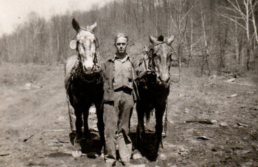 Civilian Conservation Corps (CCC) enrollee Walter Lawson stands with his mule team. Typically located in rural and isolated regions, the CCC relied on animals at times for a reliable source of transportation and power. Perhaps Lawson and his mules were plowing up earth or smoothing a roadbed.