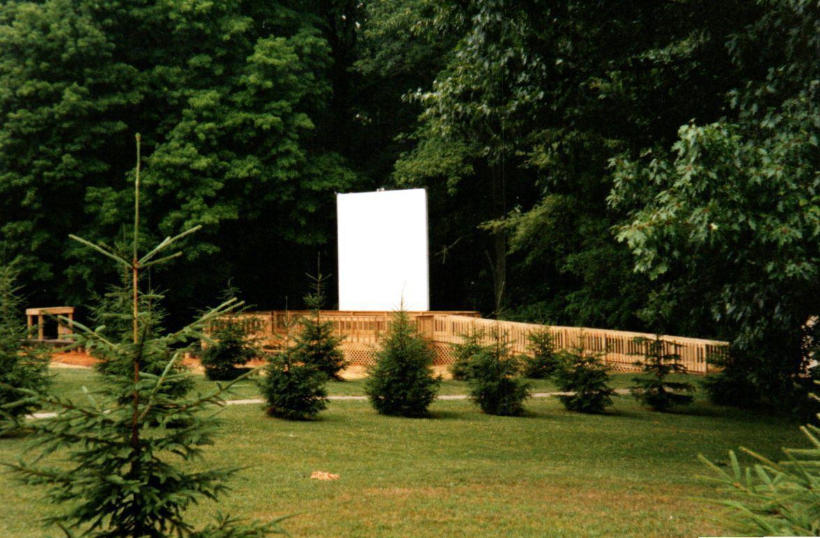 A photograph of Mt. Gilead State Park's new amphitheater. Note the fresh wood and newly planted pines.