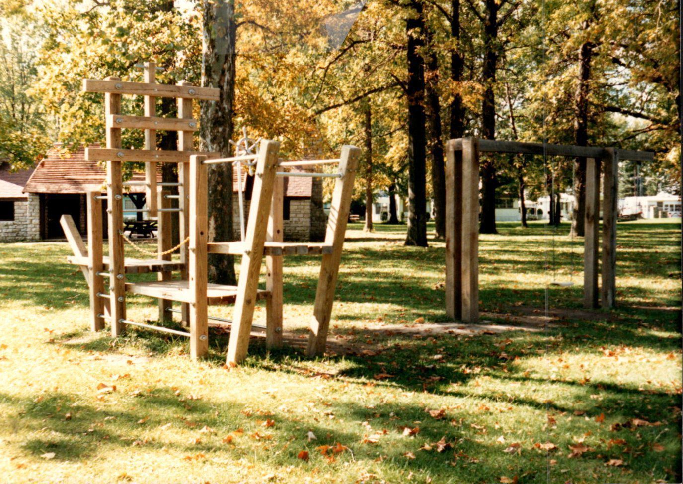 A photograph of new playground equipment at Indian Lake State Park. This project was part of the Indian Lake Community Improvement Playground Donation funded by the Blackhawk Chamber of Commerce.Cataloged By