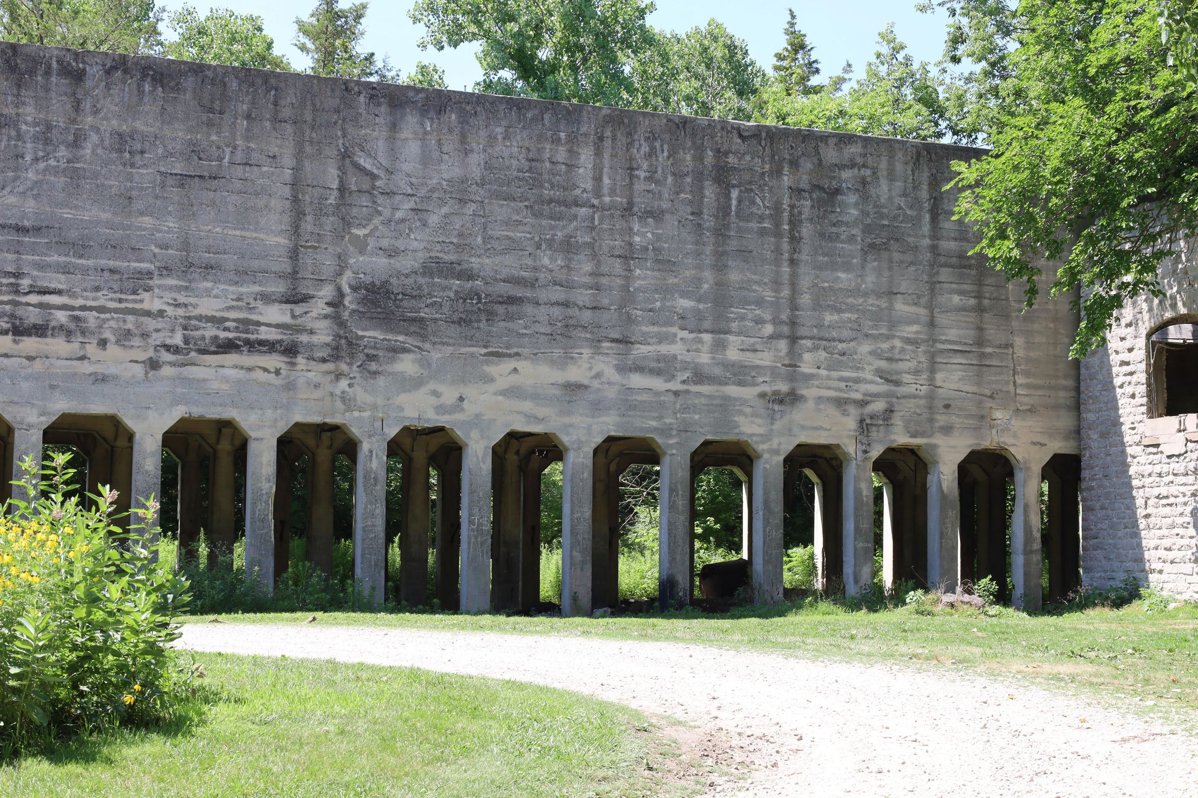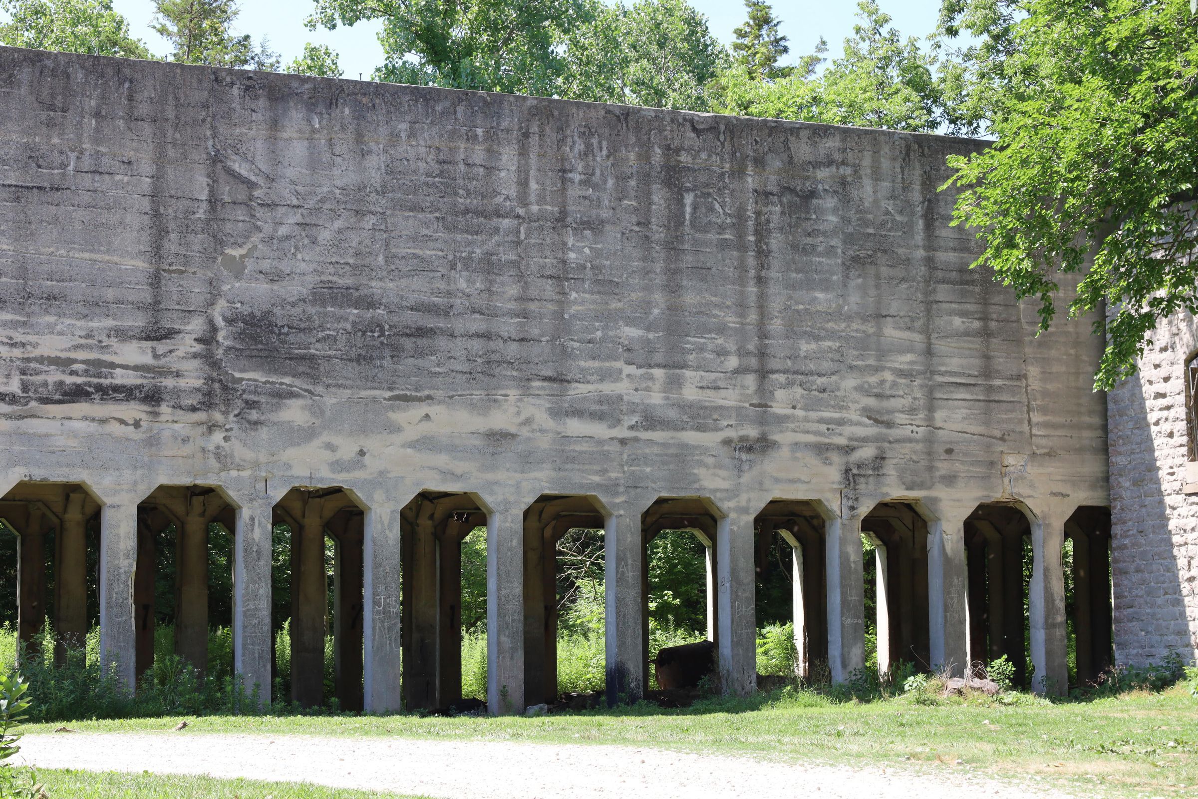 The remains of the Northside limestone crusher still stand on Kelleys Island State Park. Now abandoned and crumbling, Kelleys Island Park management would like to see this crusher restored for its historical value.