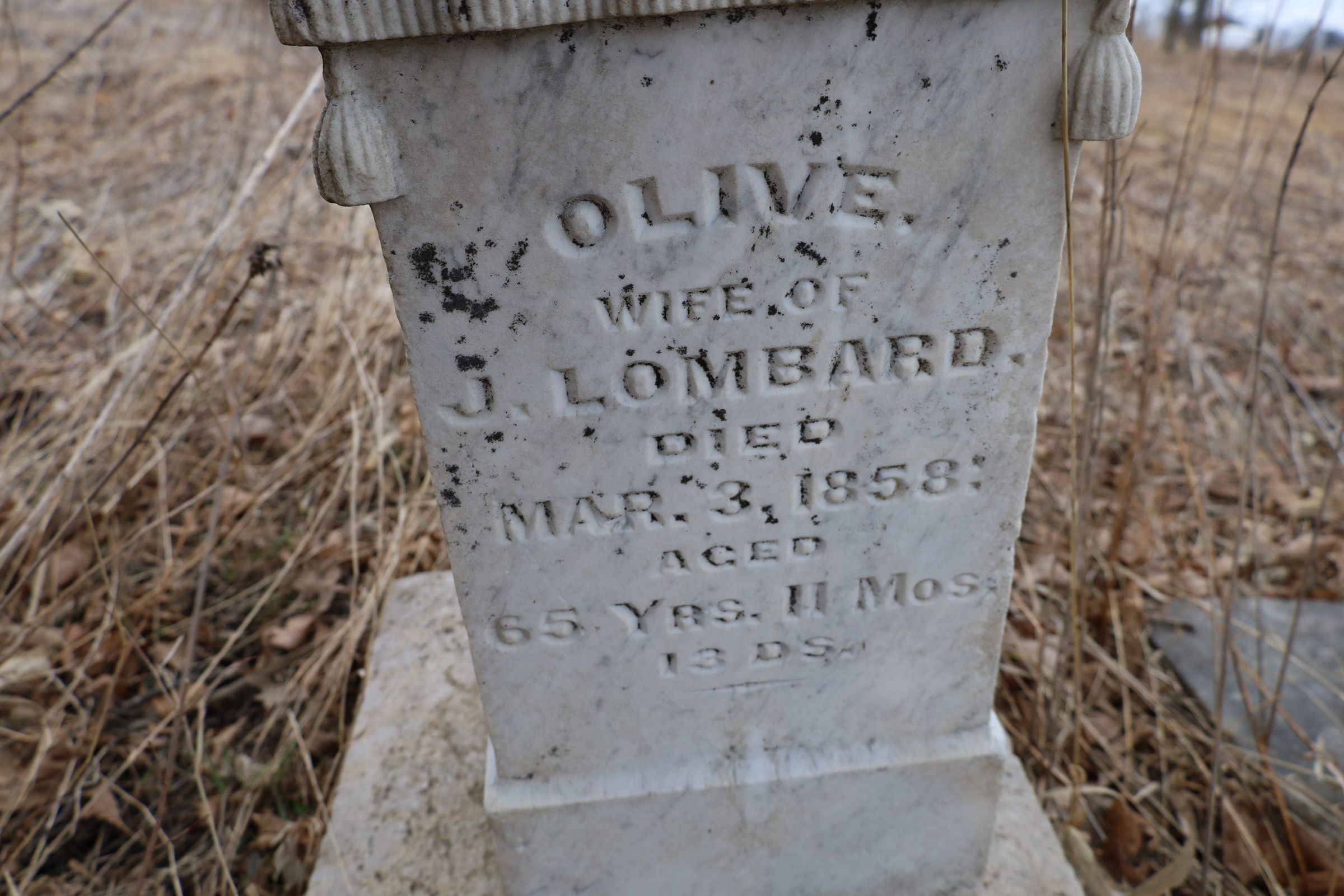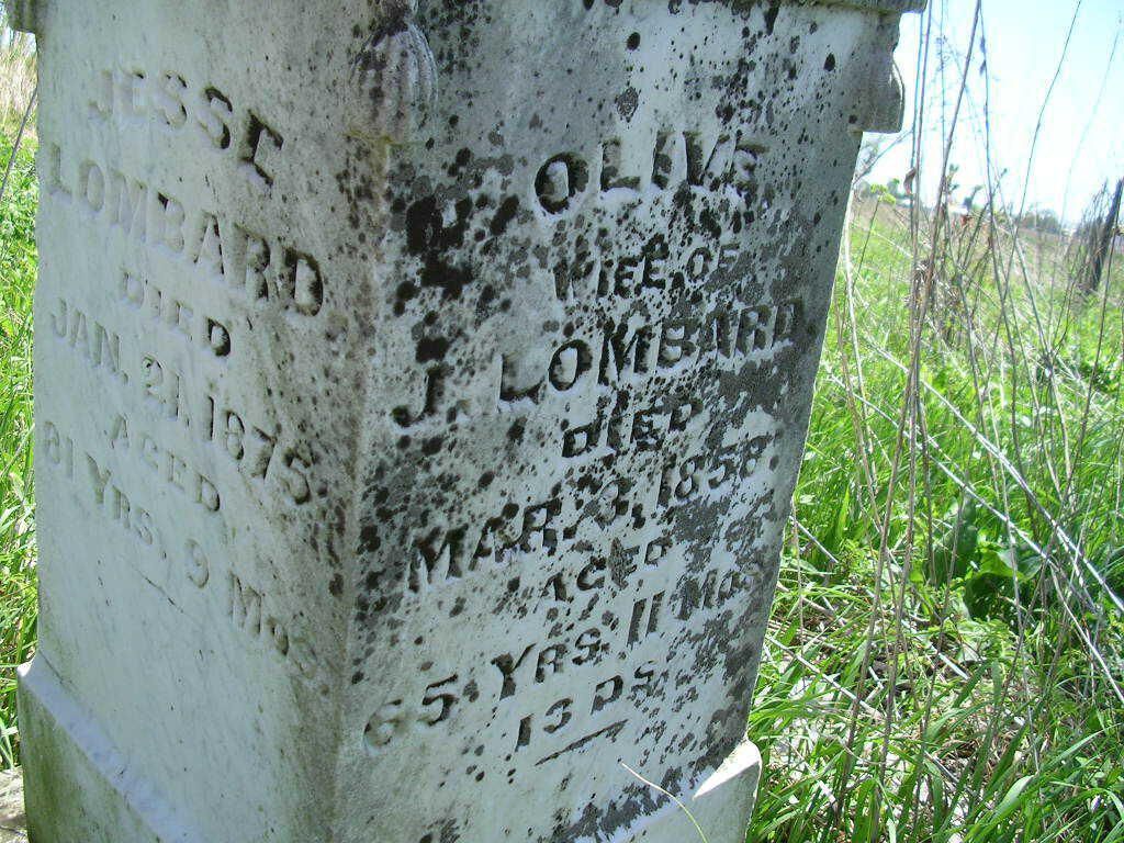 OLIVE Wife Of J. LOMBARD Died Mar. 3, 1858. Aged 65 Yrs. 11 Mos. 13 Ds.