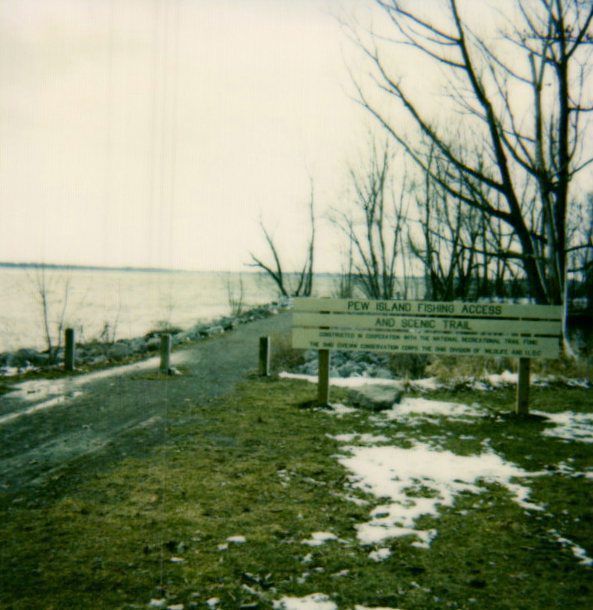 A large sign informs visitors that they are at the trailhead for the Pew Island Trail. This .82-mile-long trail takes hikers around the edge of Pew Island and provides remarkable views of both Indian Lake and local wildlife.Cataloged By