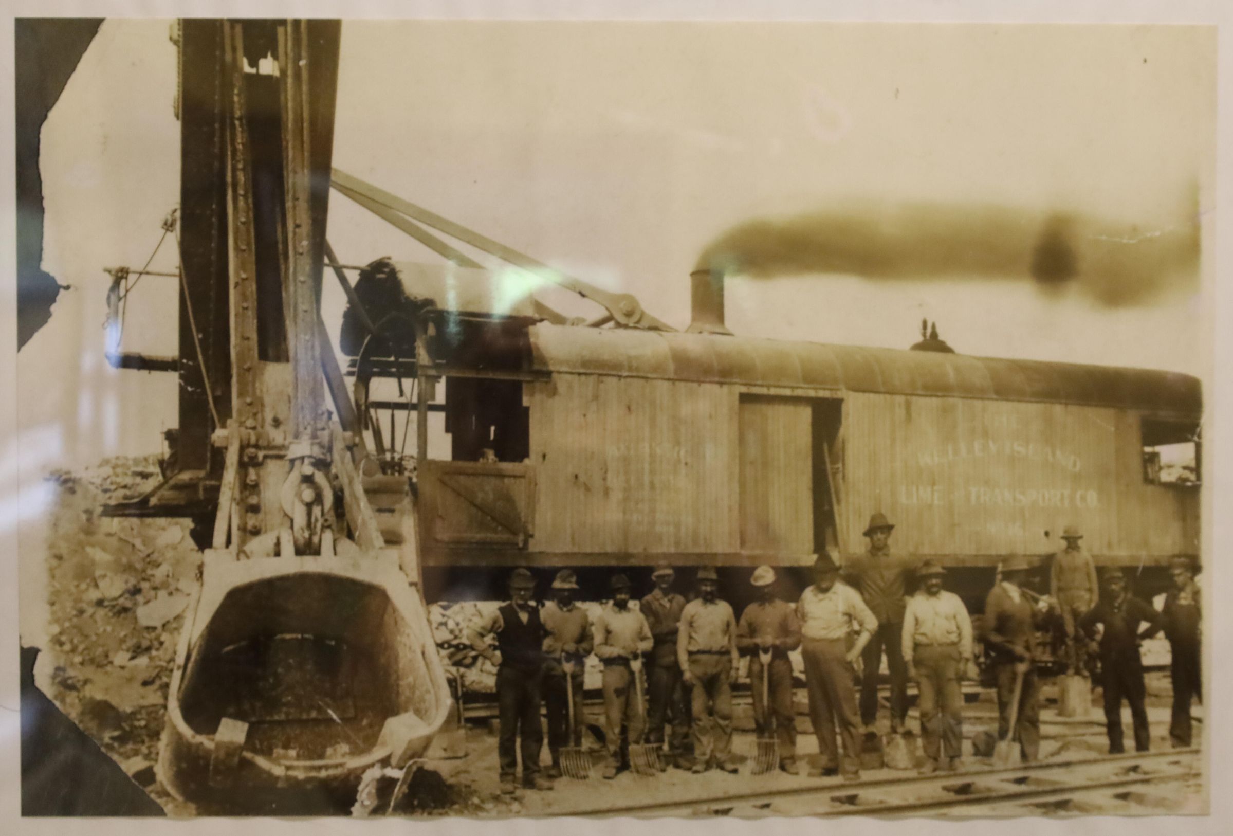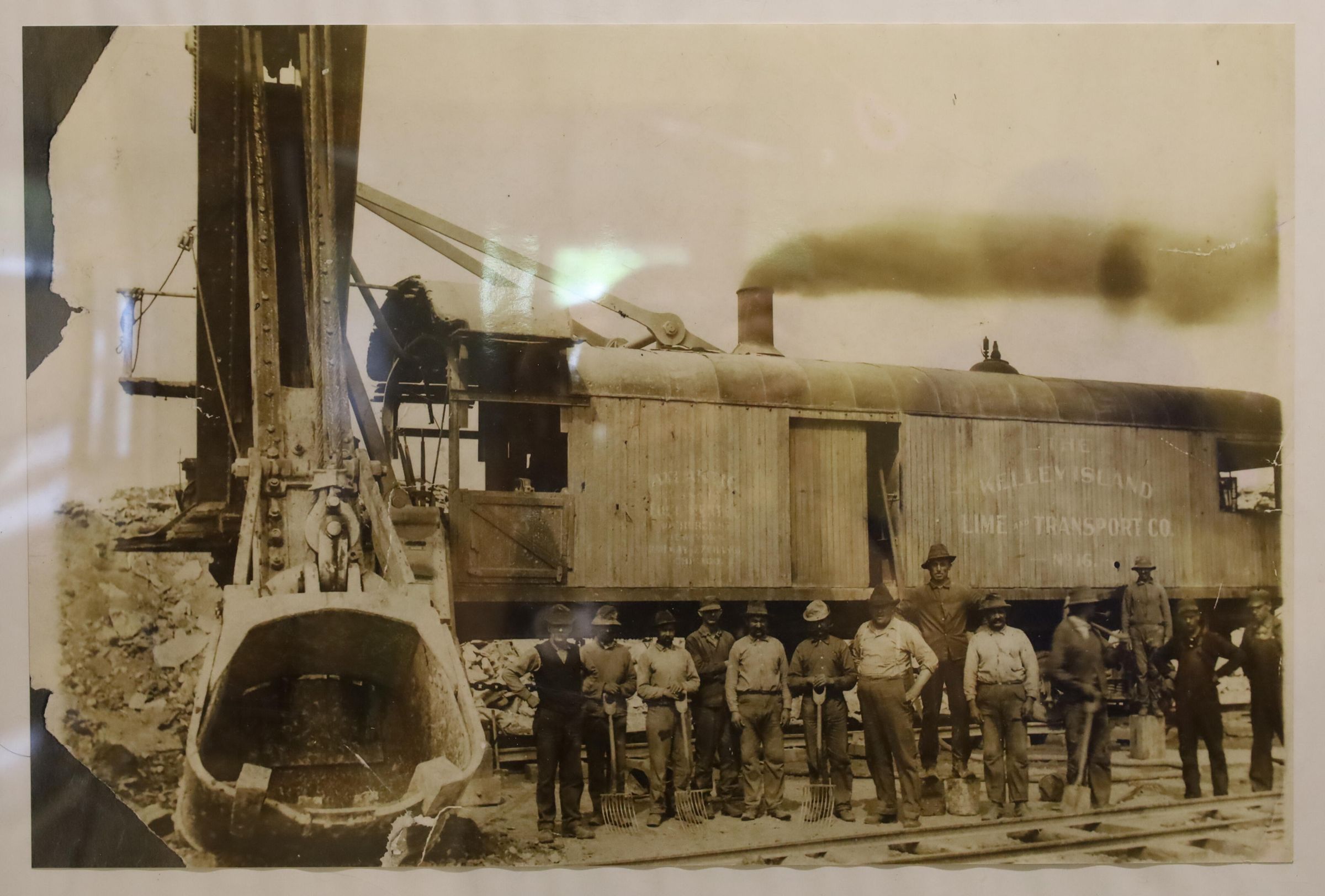 This photo features a giant Atlantic steam shovel, the type that was used in many of the Kelley Island Lime & Transport Company's quarries.