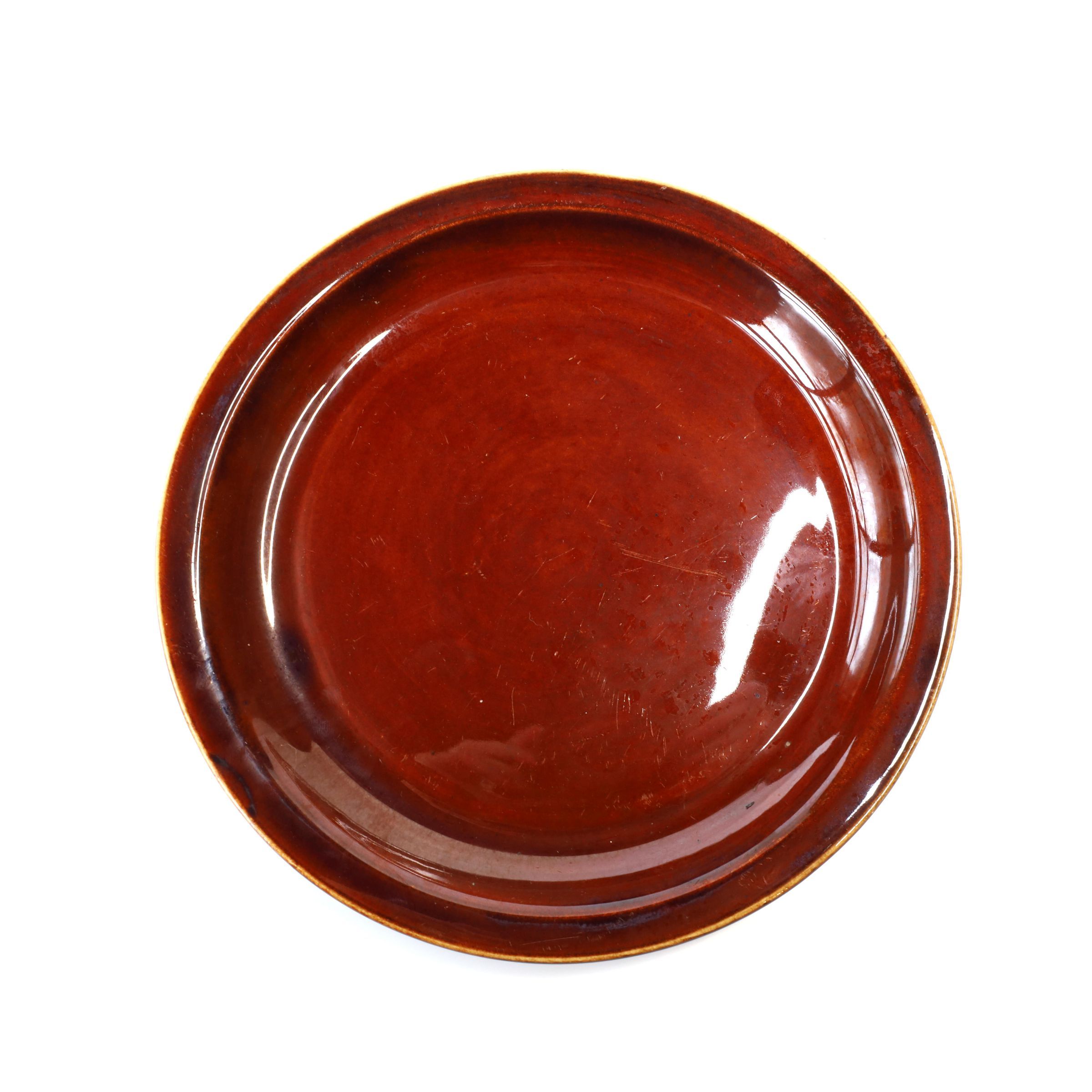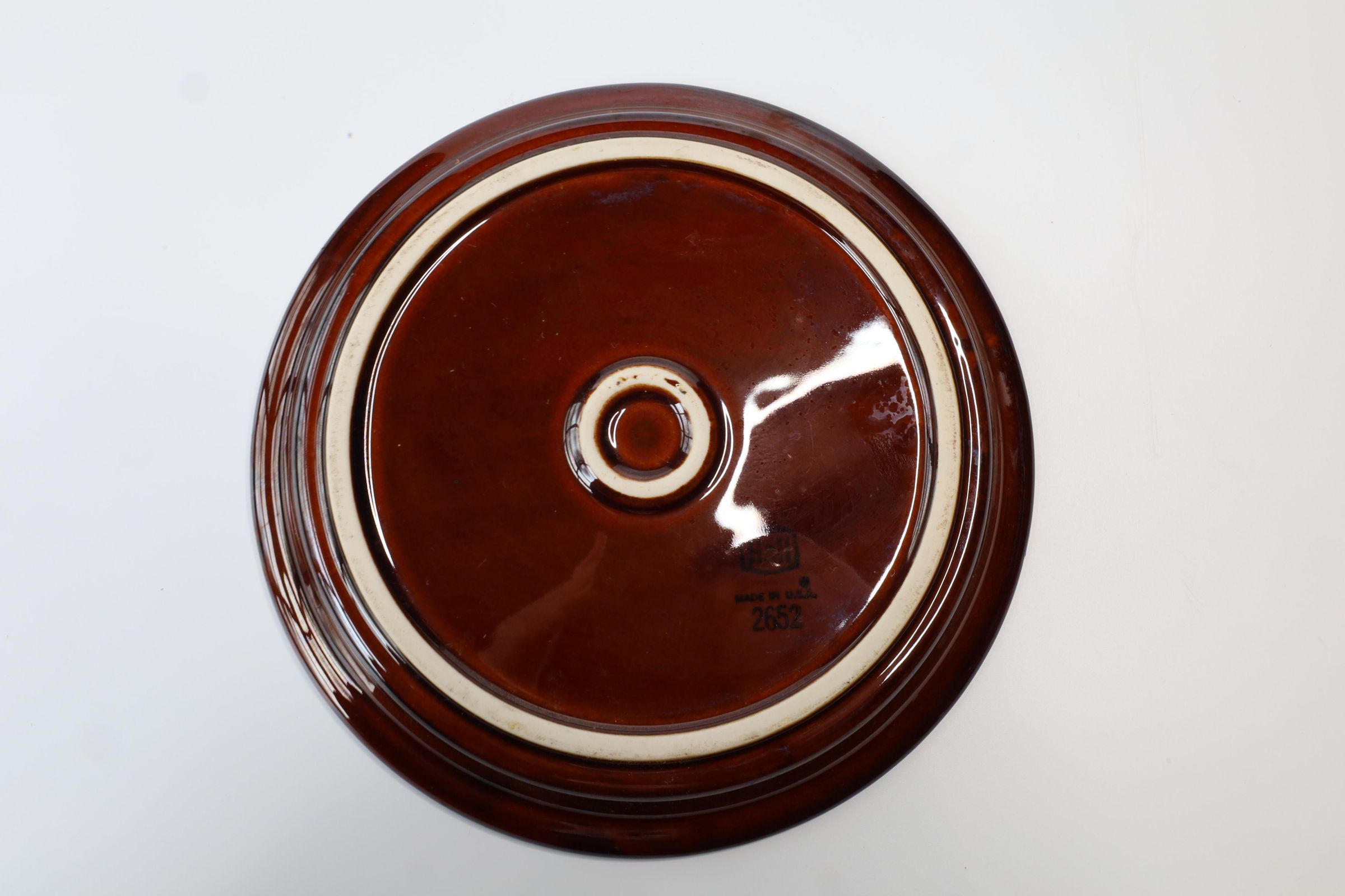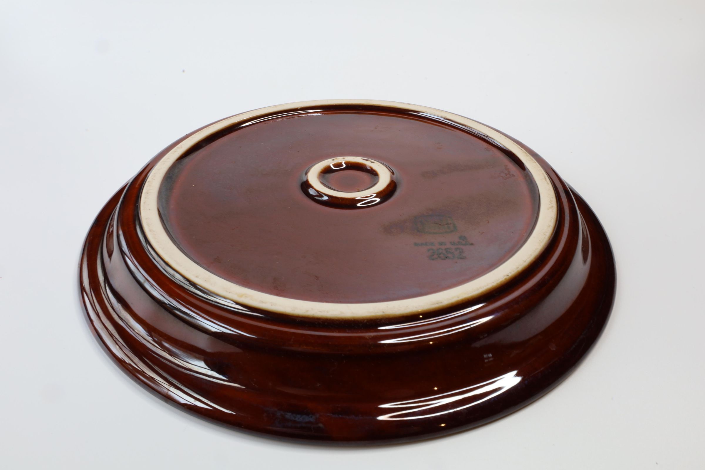 This vintage 8-inch solid matte brown pottery salad plate bears a stamp on the back that reads Hall 2652 Made in the USA.