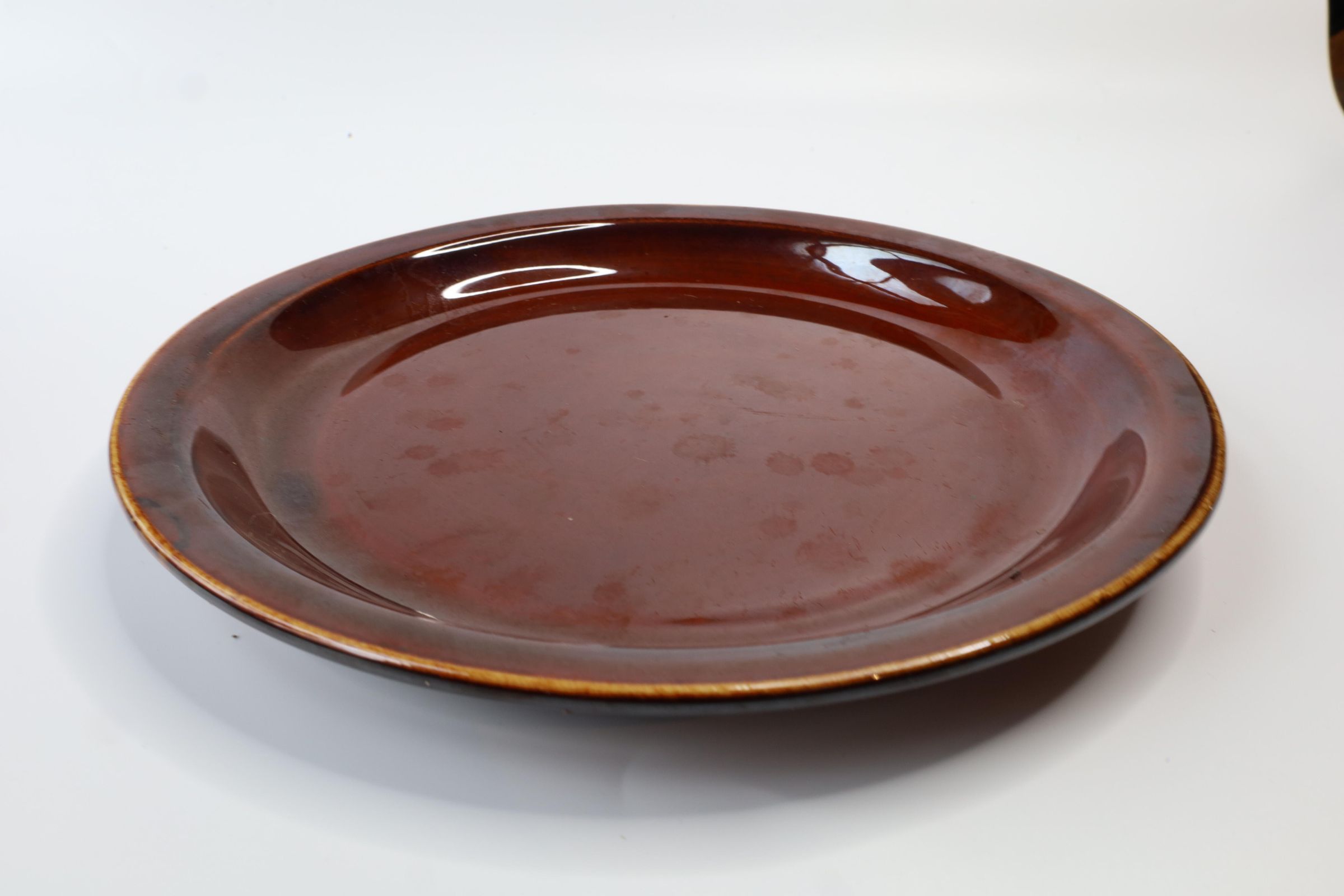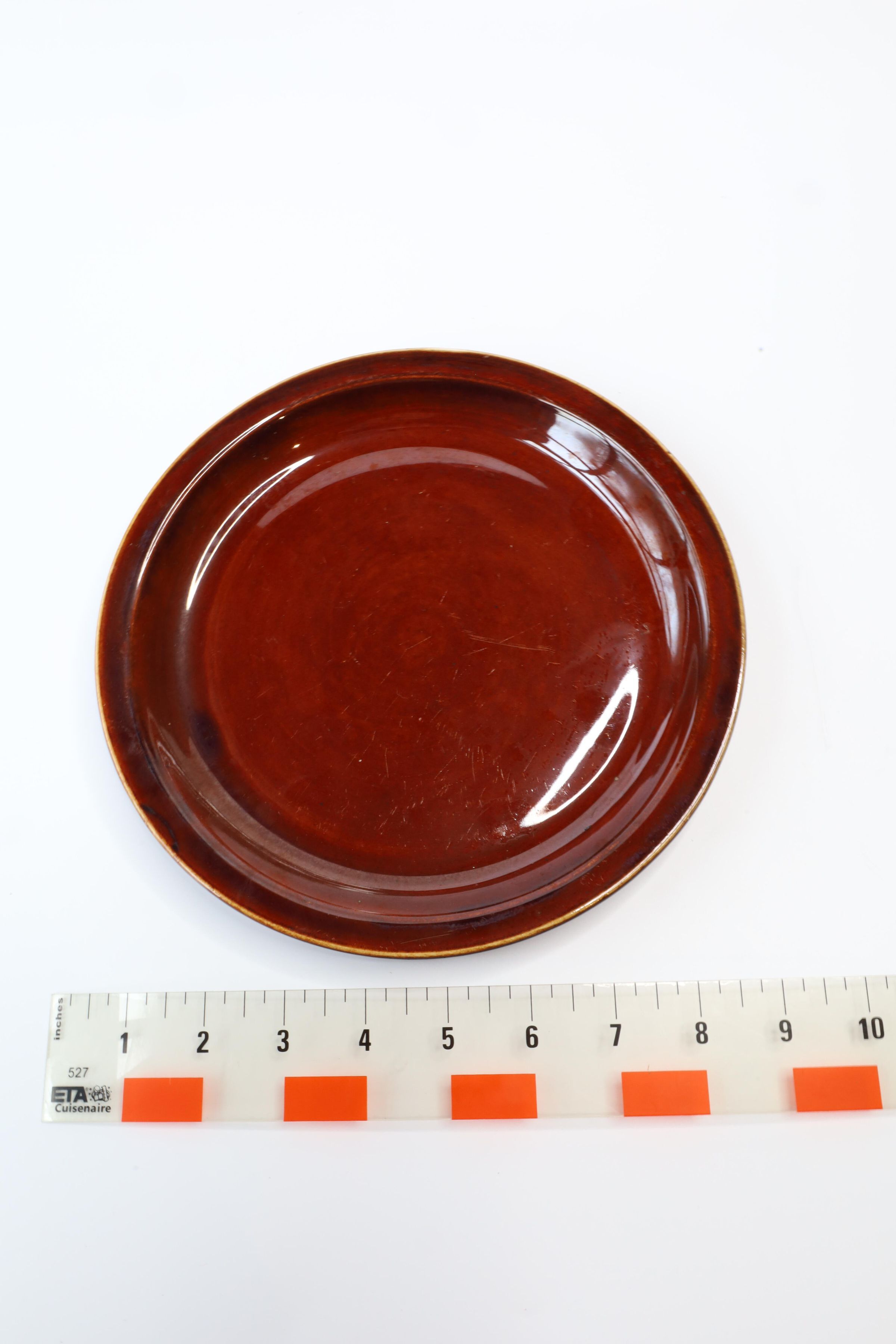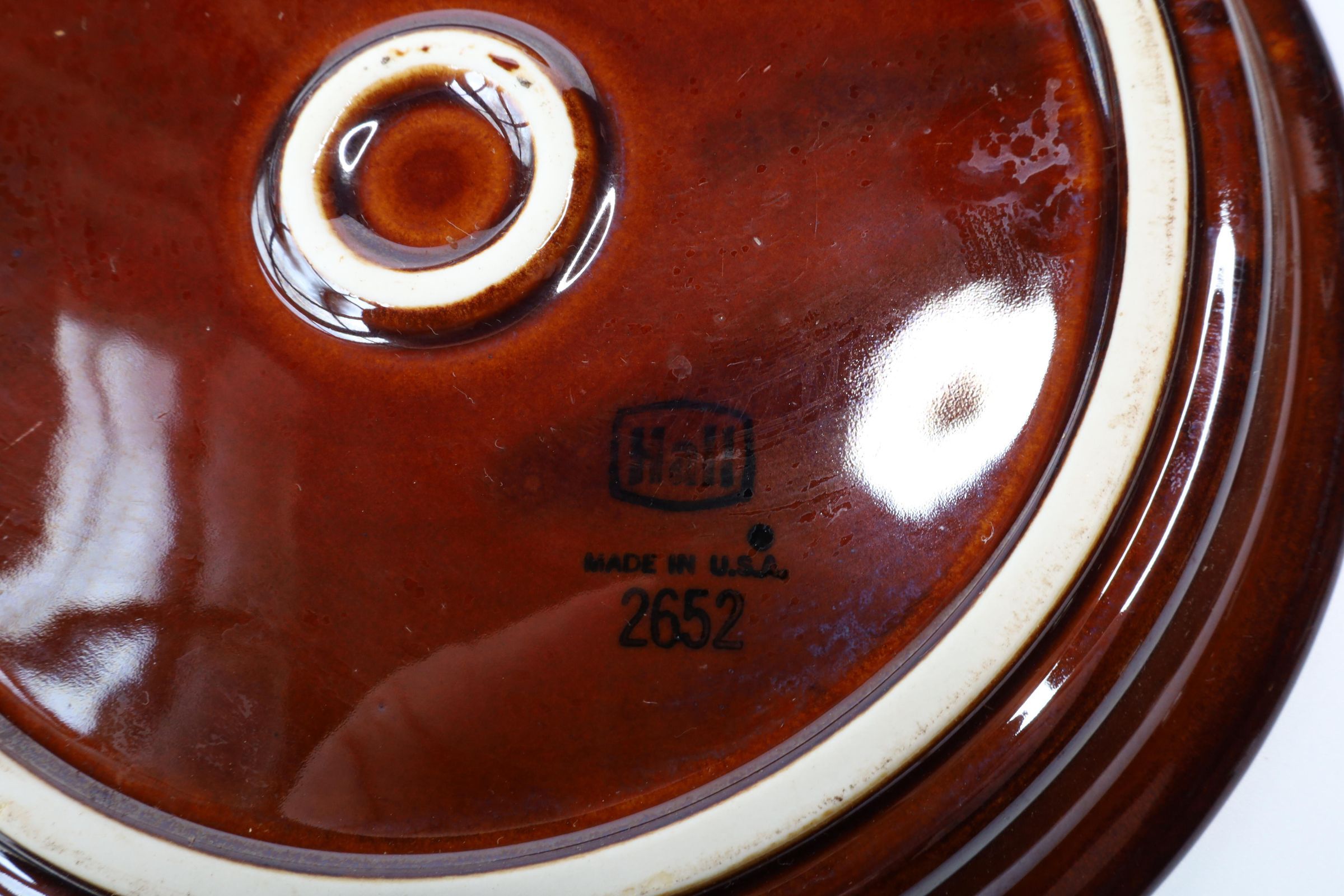 This vintage 8-inch solid matte brown pottery salad plate bears a stamp on the back that reads Hall 2652 Made in the USA.