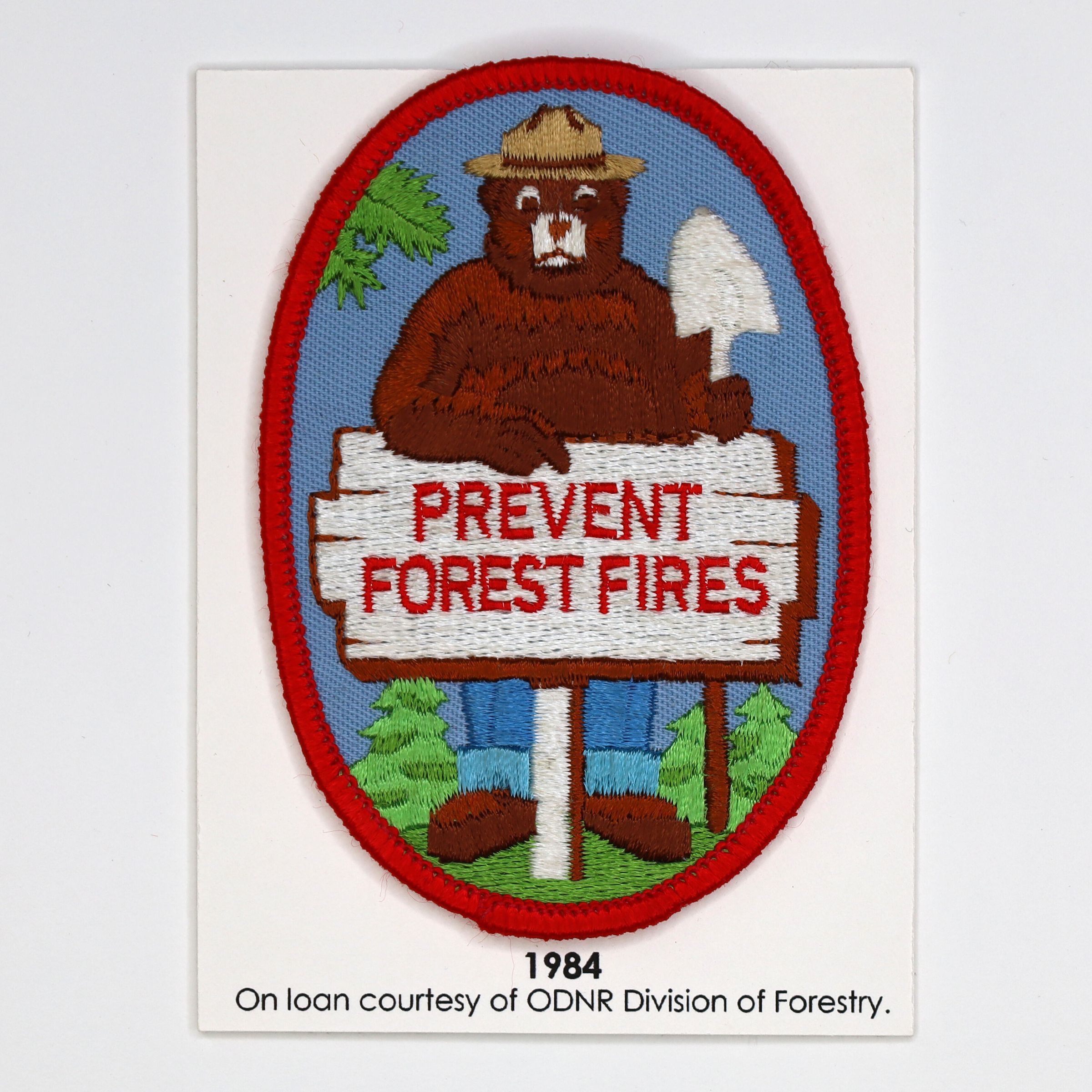 Created in 1944, the Smokey Bear Wildfire Prevention campaign is the longest-running public service advertising campaign in U.S. history, educating generations of Americans about their role in preventing wildfires. This patch was designed in 1984 and given away as a promotional item to aid in preventing forest fires.