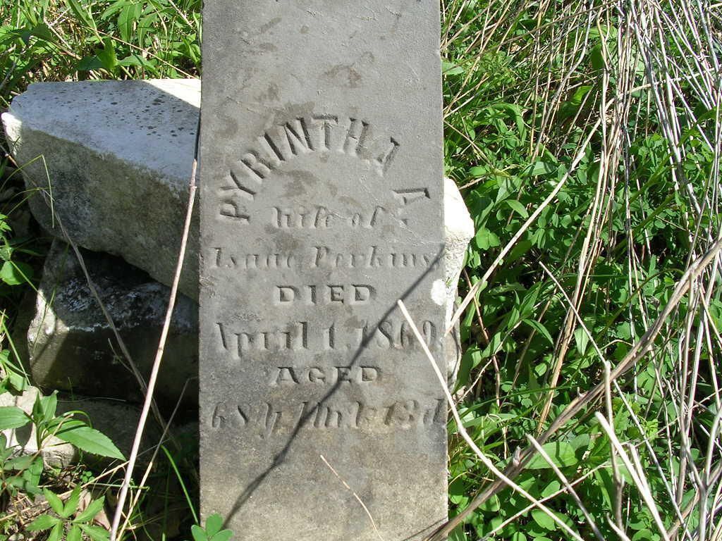 PYRINTHA A. Wife of Isaac Perkins Died April 1. 1869 Aged 68y. 4m. 13d.