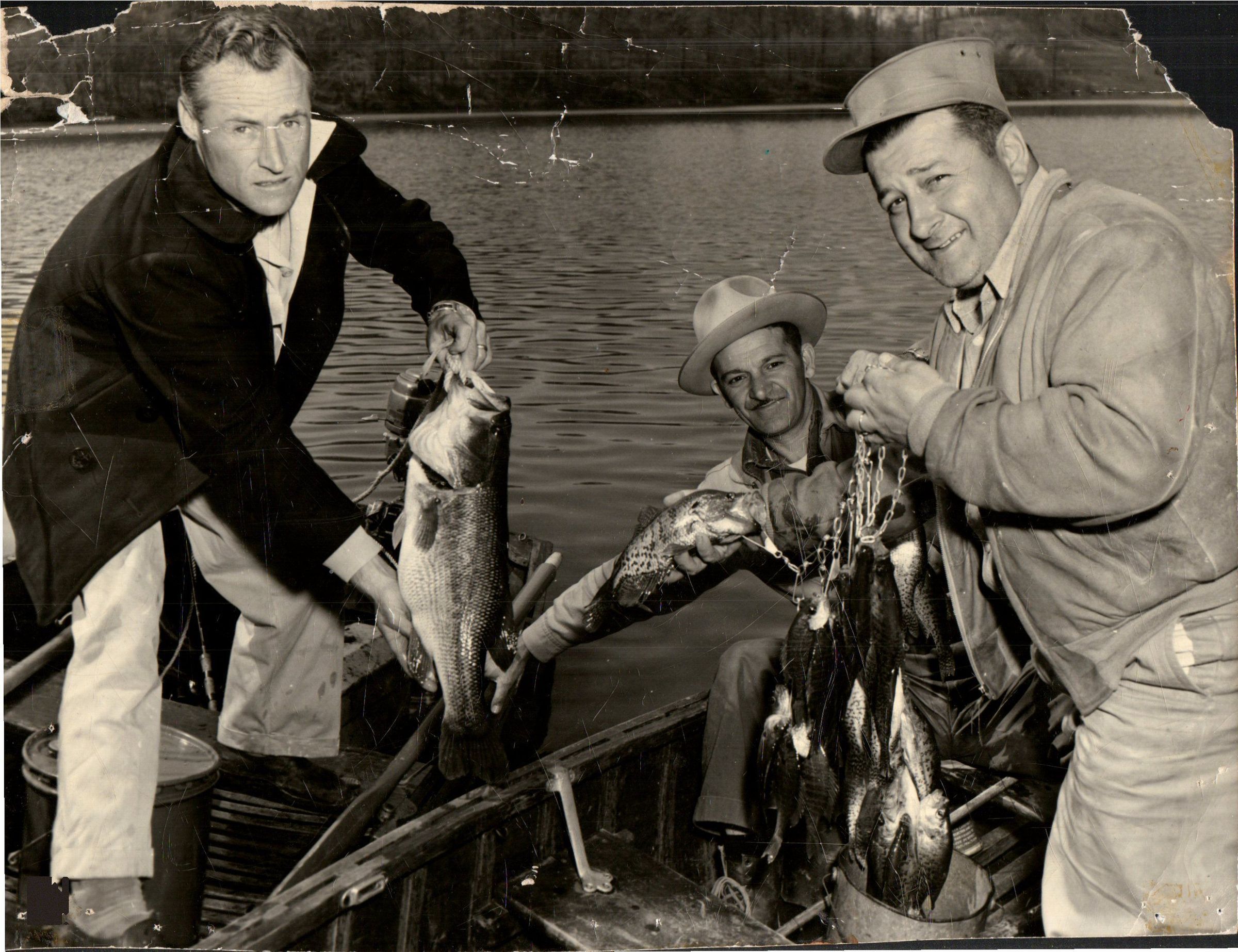 A group of anglers fishing in Burr Oak Lake proudly show off their catch.