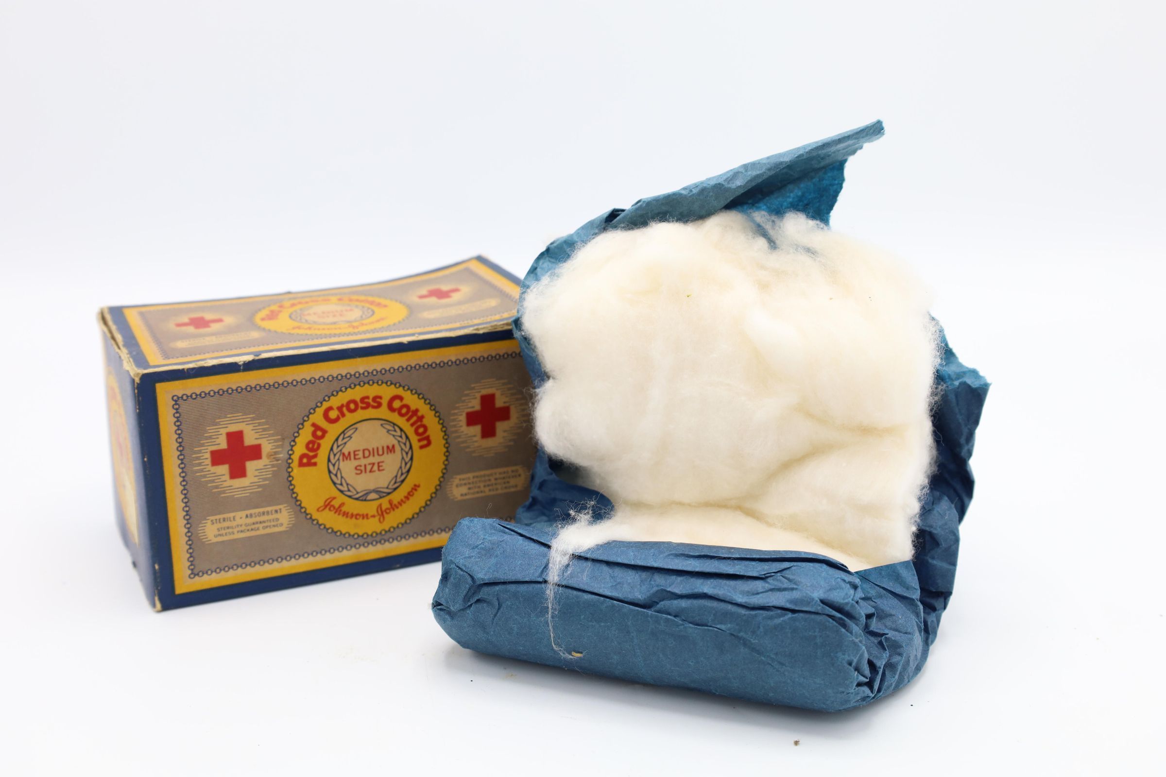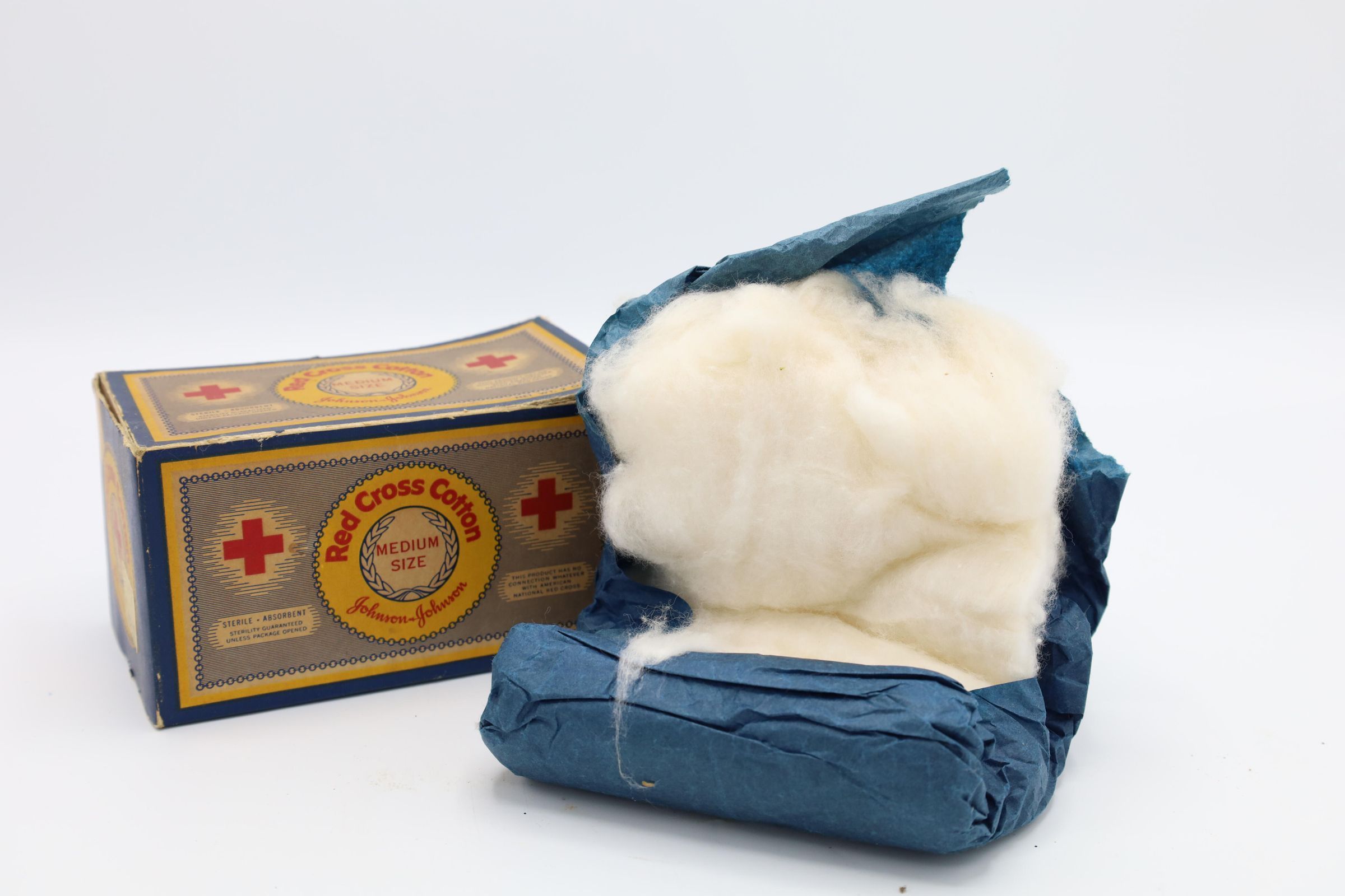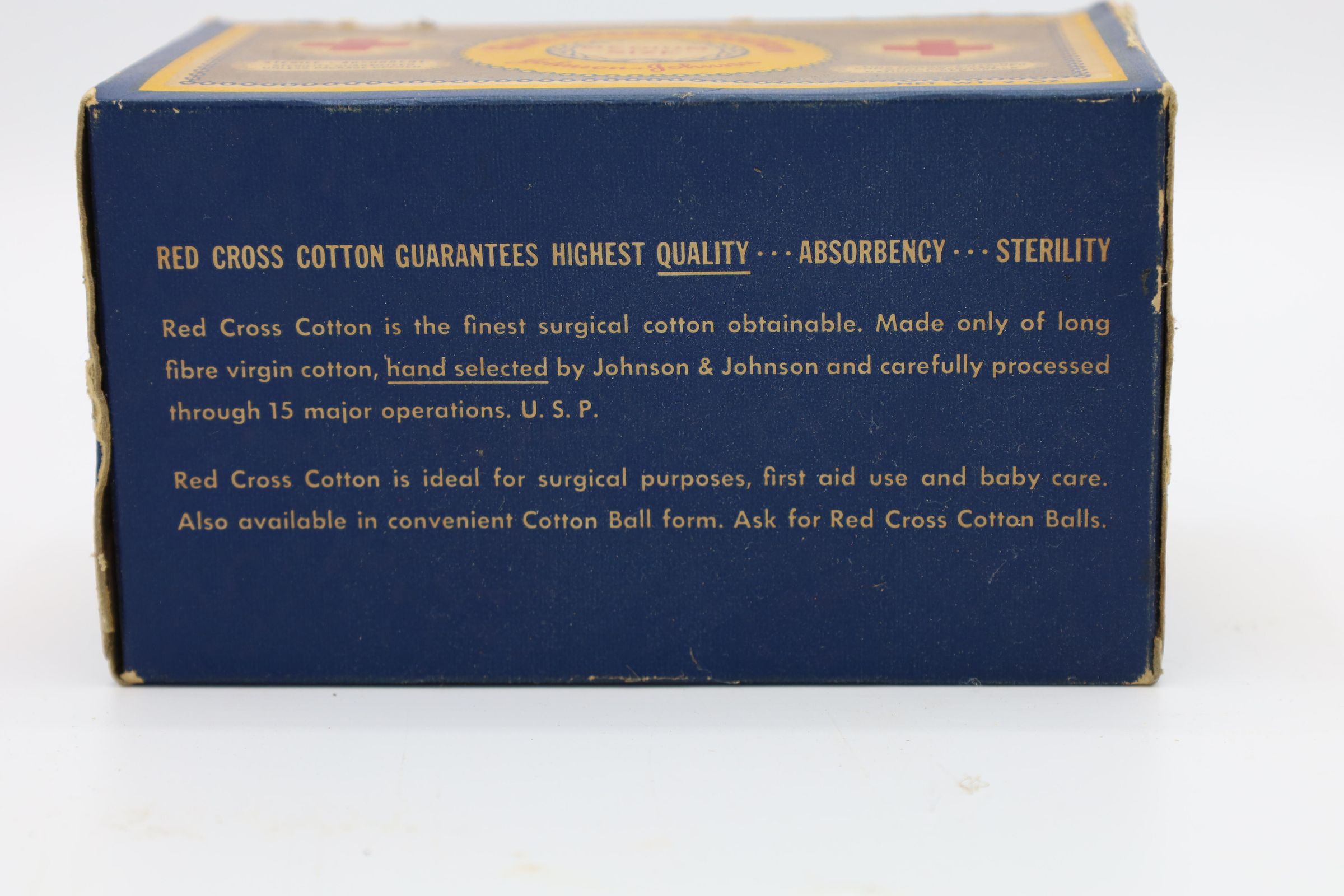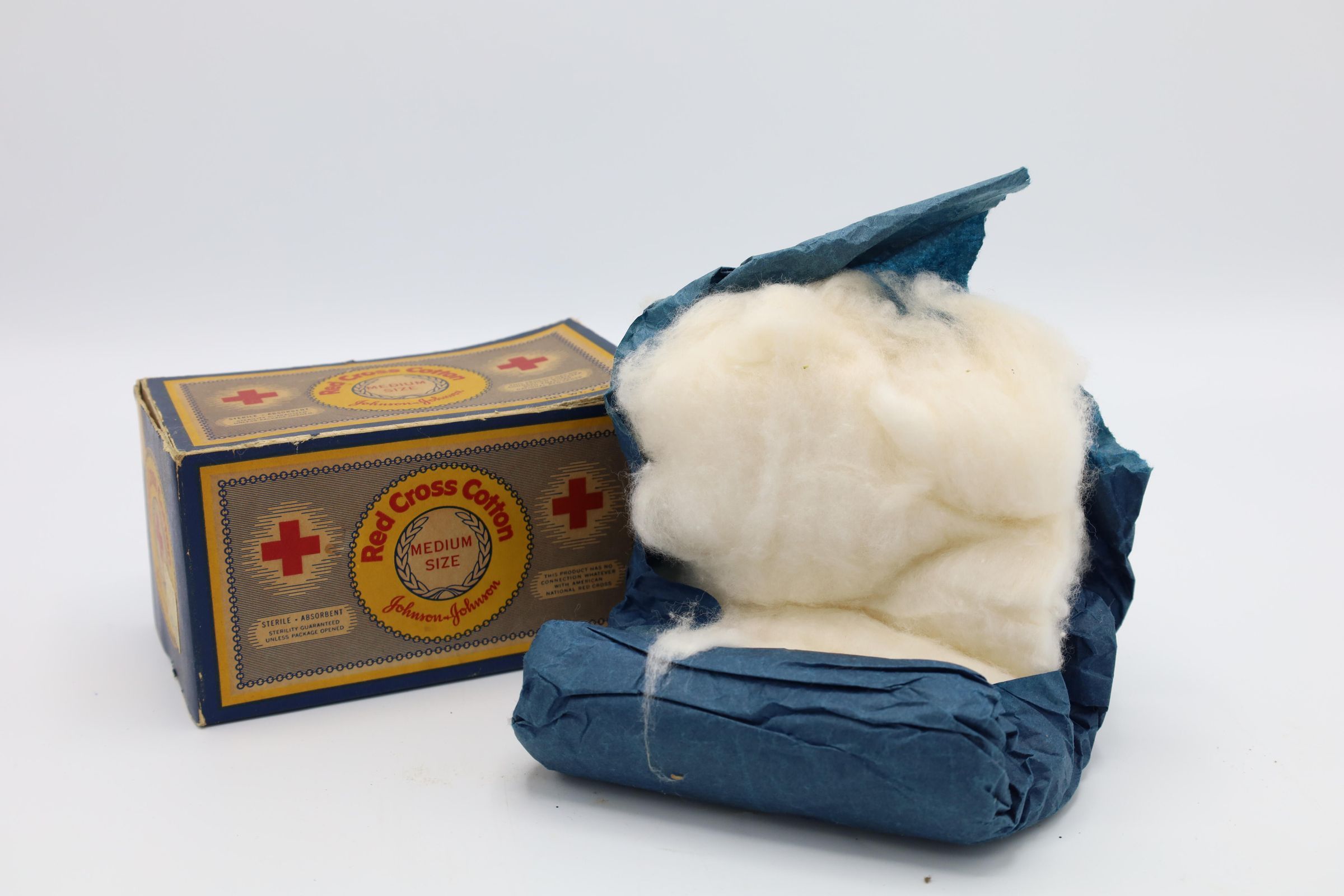 This Johnson & Johnson Red Cross Cotton was most likely used in the late 19th century and early 20th century.