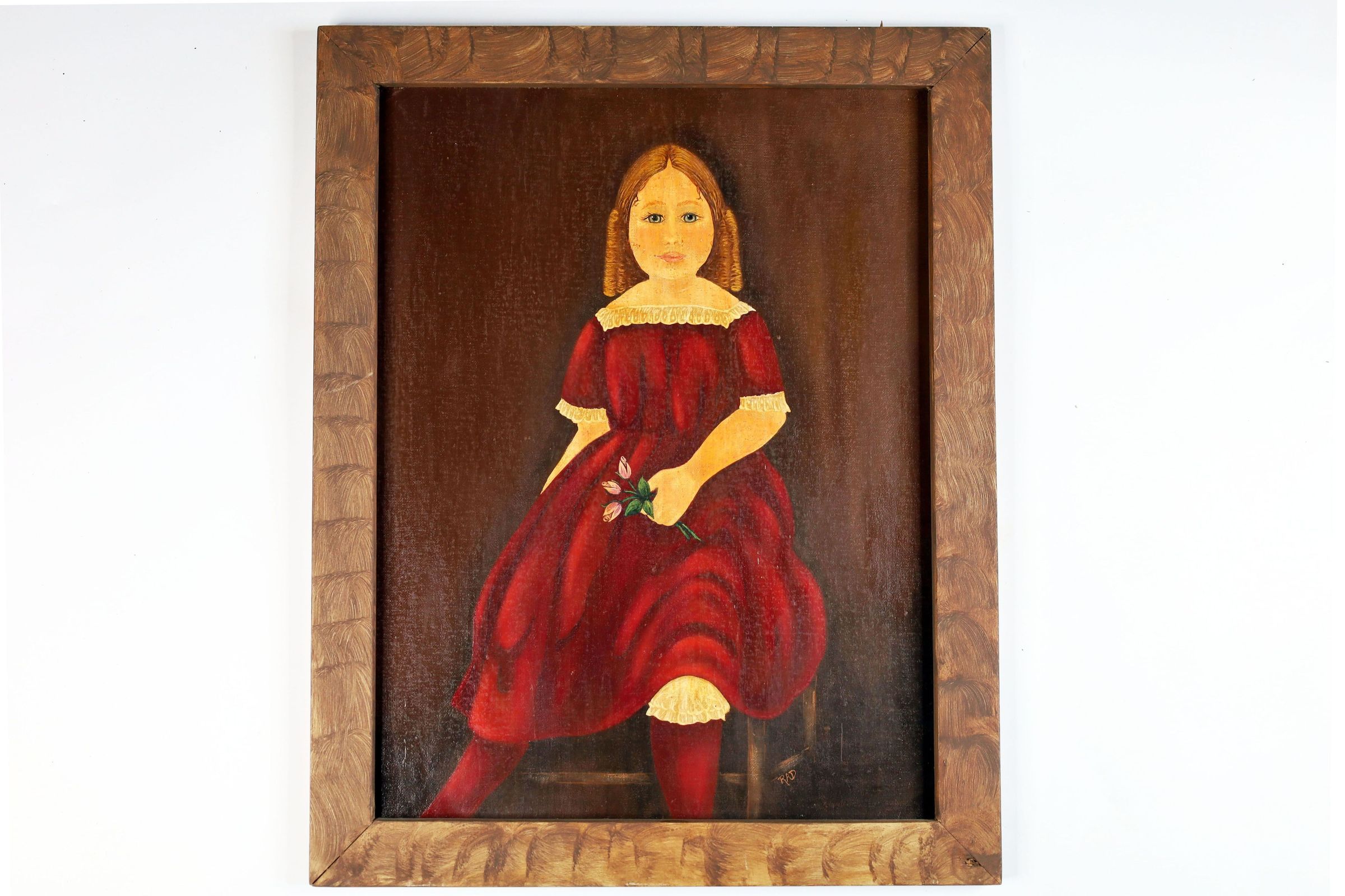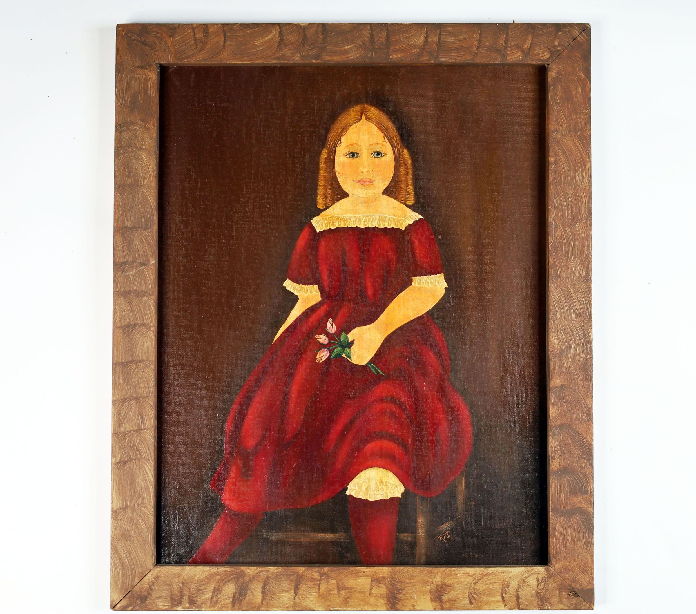 Painting of young girl, in the style of 19th century rustic art. Painted for Pauli Cornish for placement in the Kennedy Stone House, by Ruth Ann Dixon of Old Washington Ohio, 2005.
