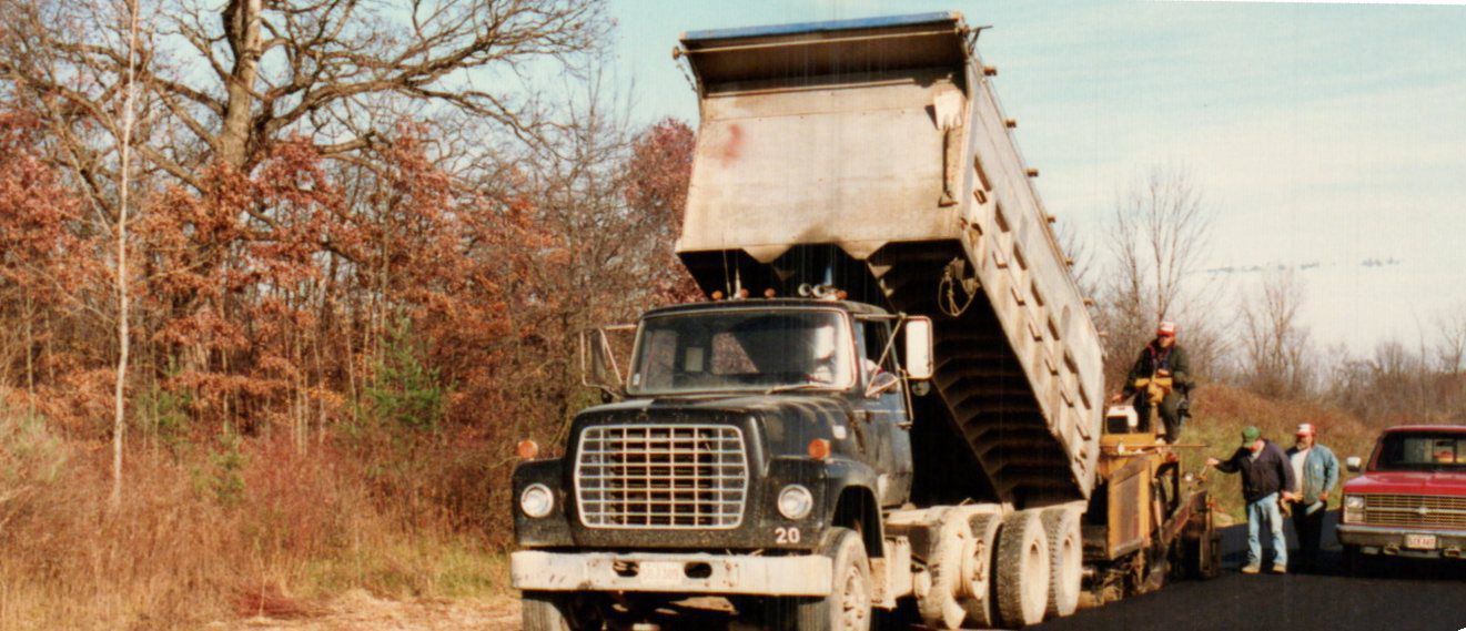 Staff at Delaware State Park resurface a park road with fresh asphalt.