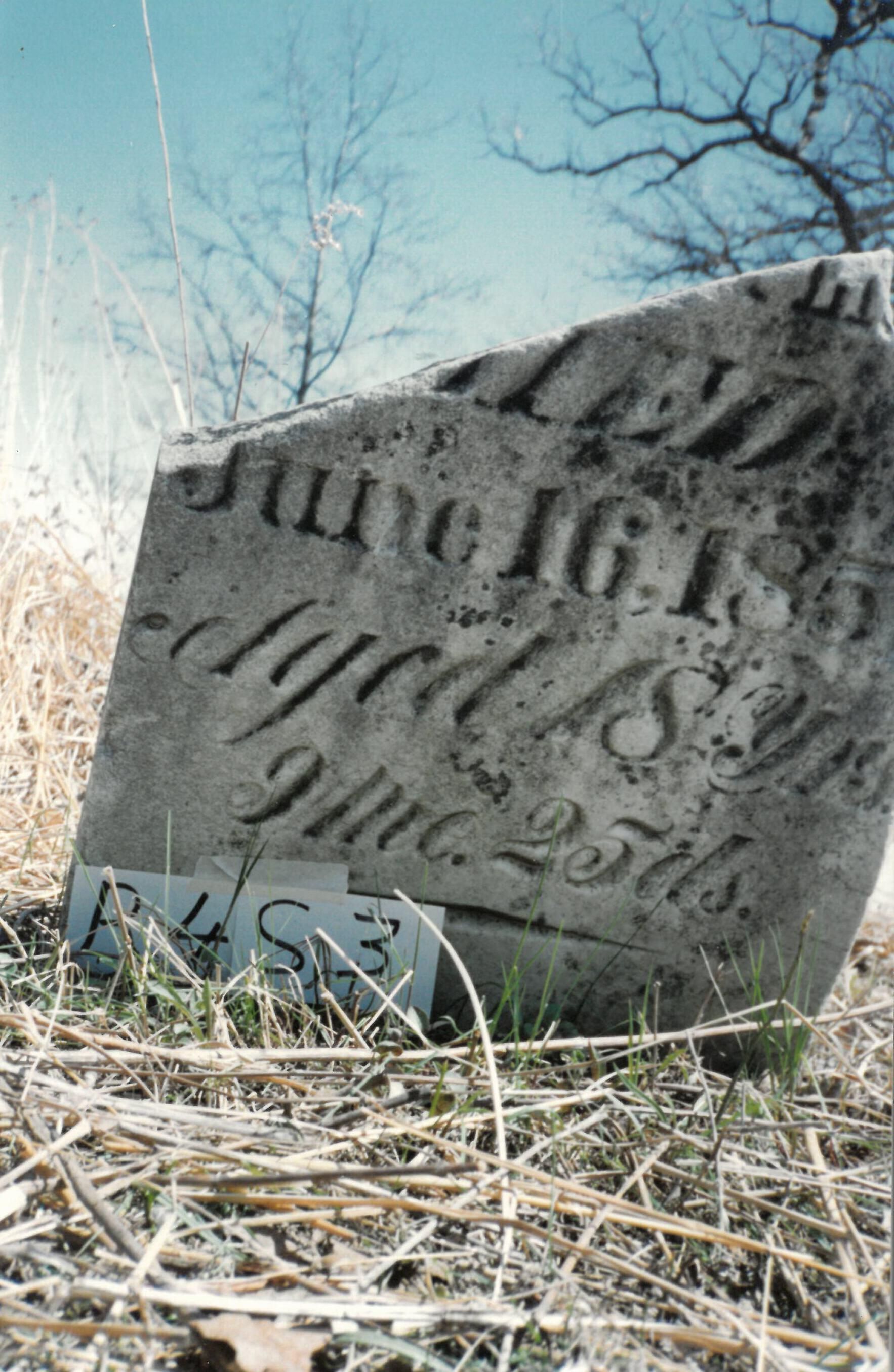 Words on Headstone - Died June 16, 1851 Aged 18 Yrs. 9 mo. 25 ds.