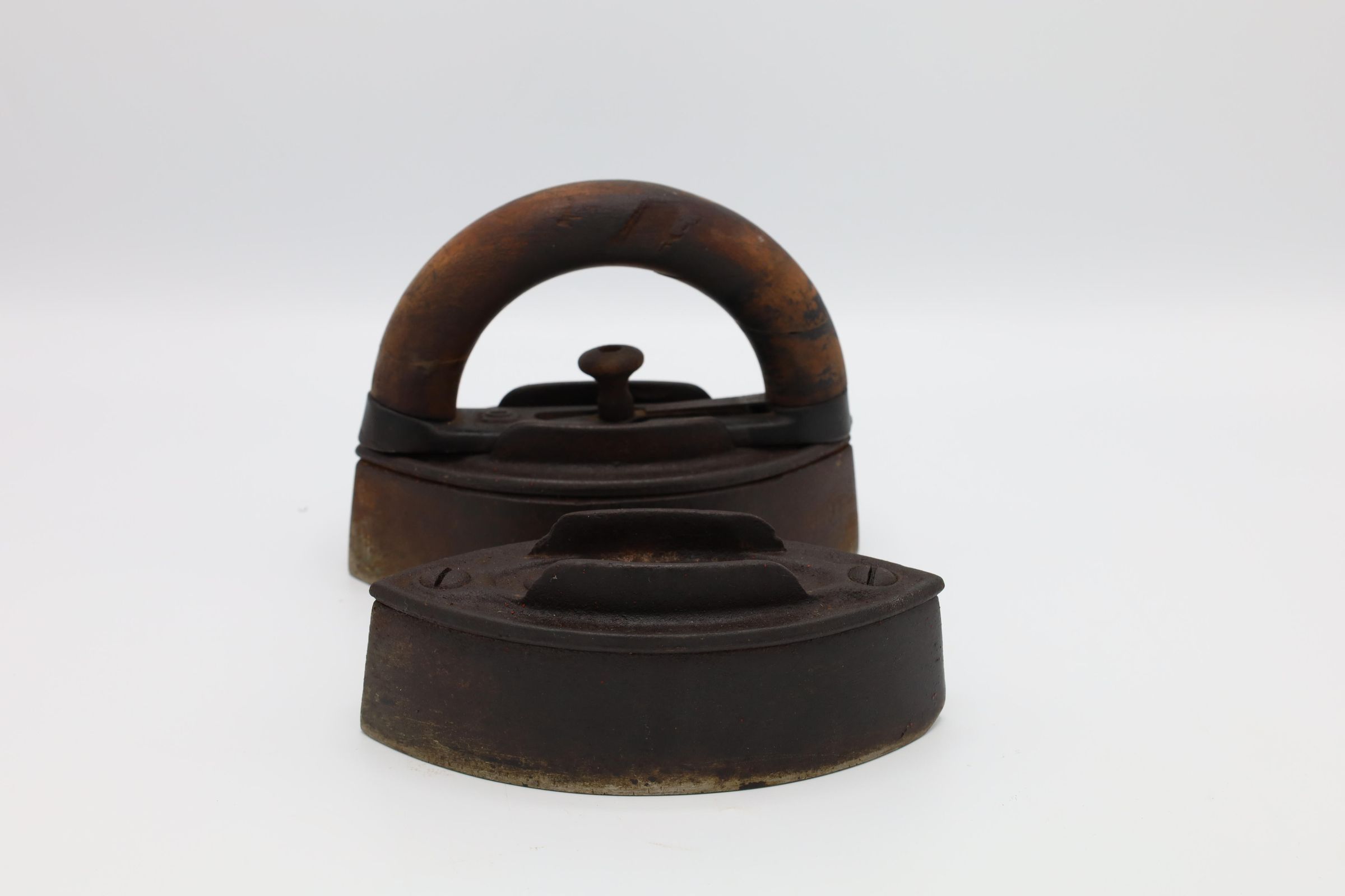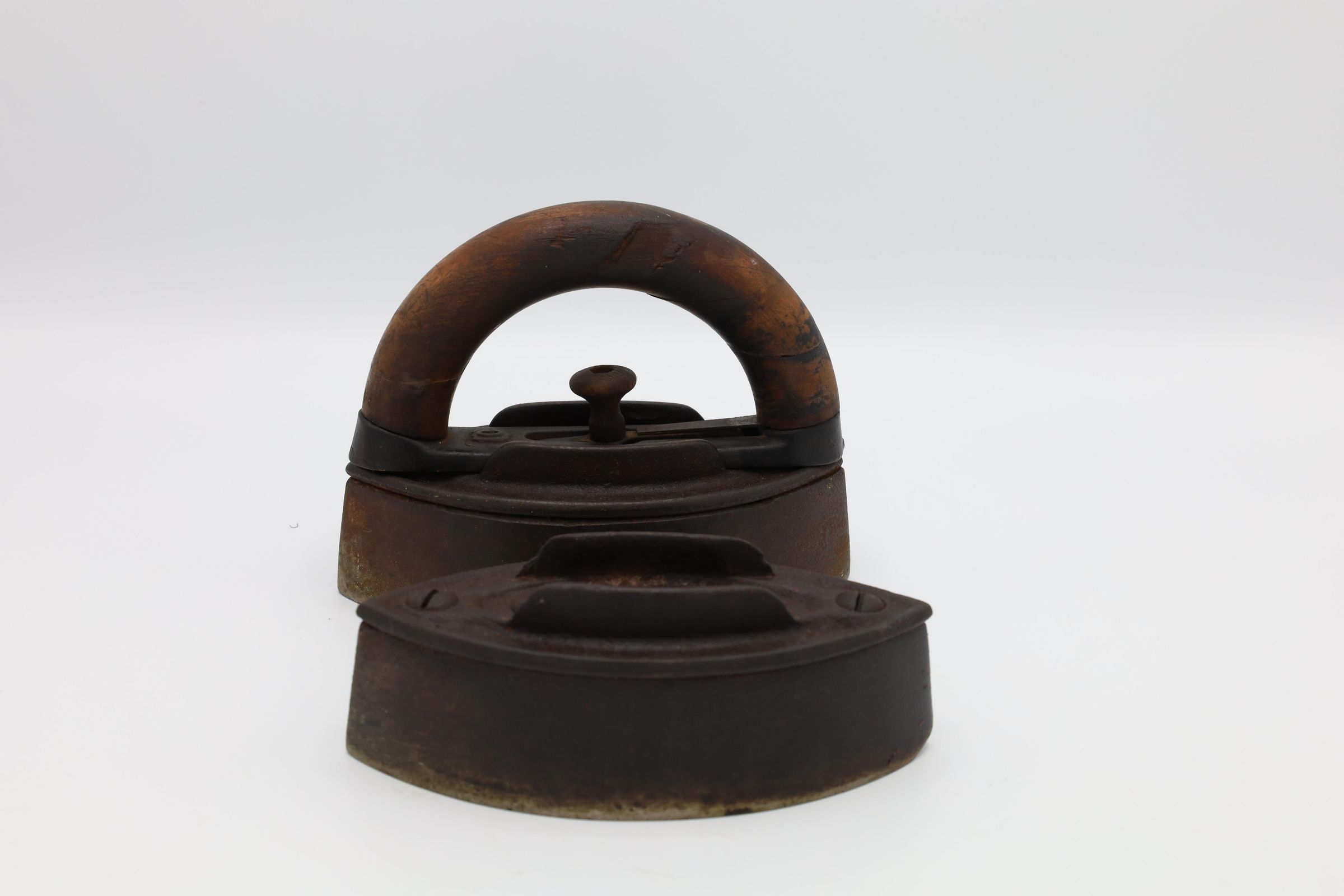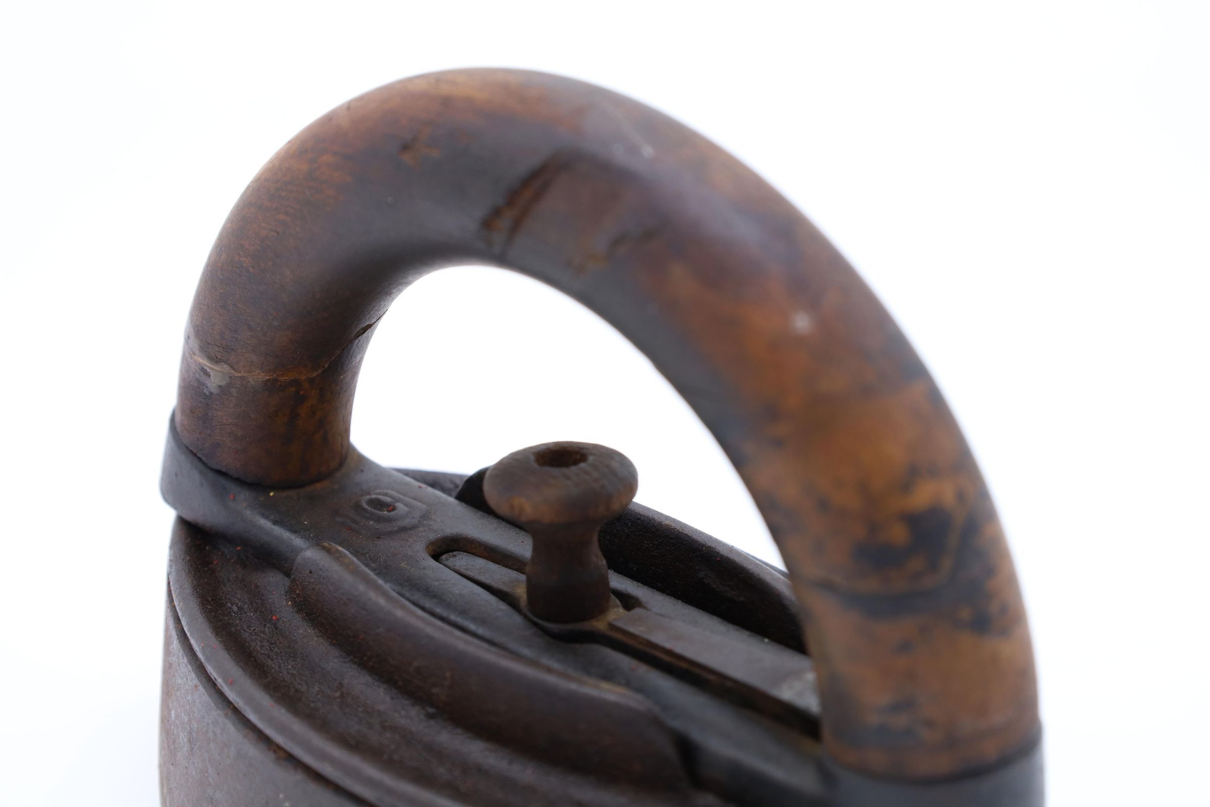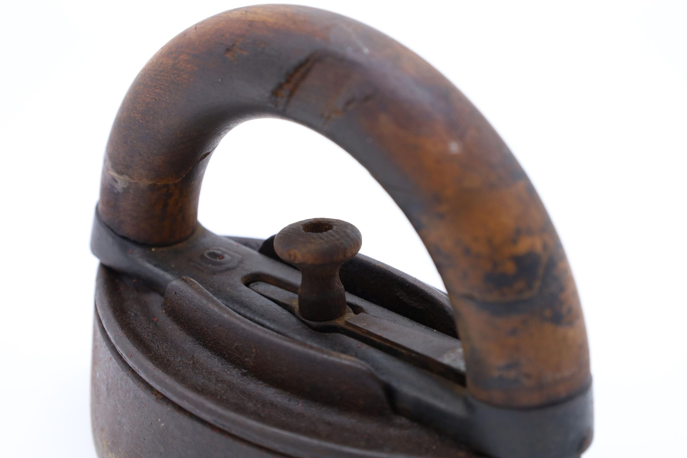 This cast-iron sad iron has a removeable wooden handle to allow the user to transfer the handle from an iron that has cooled to a hot iron. The sad iron needs to be the proper temperature for ironing. If it is too cold, the wrinkles will remain, and if the iron is too hot, it will burn the clothing.