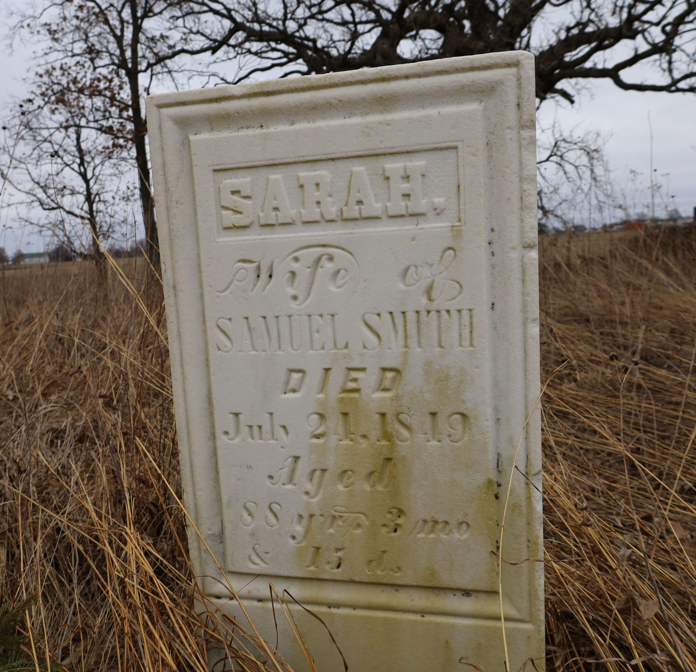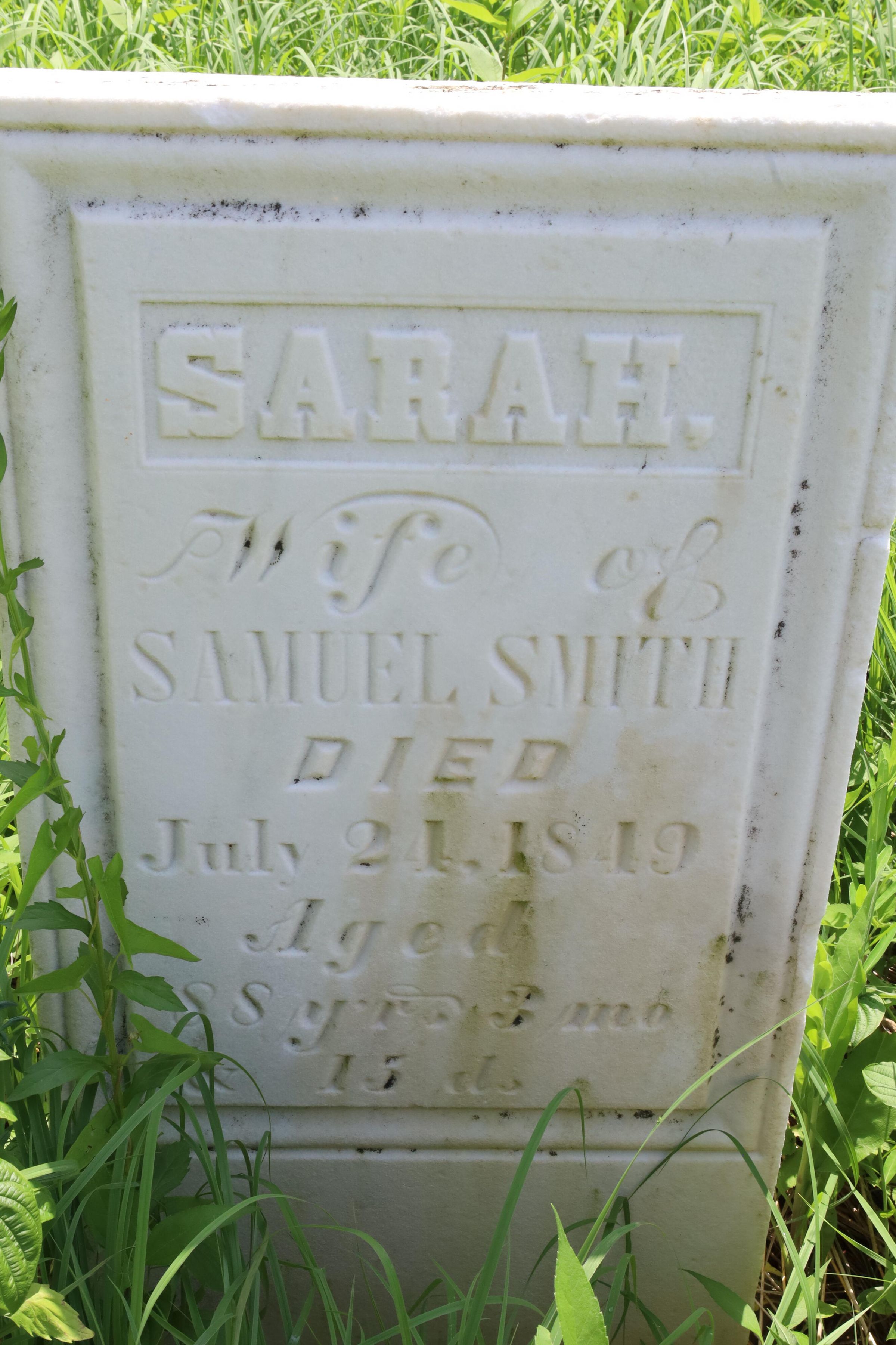 SARAH Wife of Samuel Smith Died July 24, 1849 Aged 88 yrs 3 ms & 15 ds.