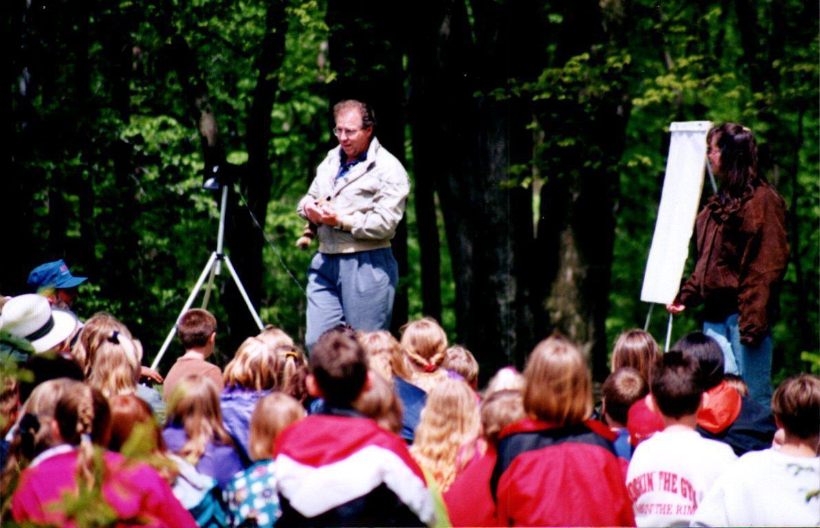 A presenter talks with local school children during Mt. Gilead State Park's School Days program in 1997.