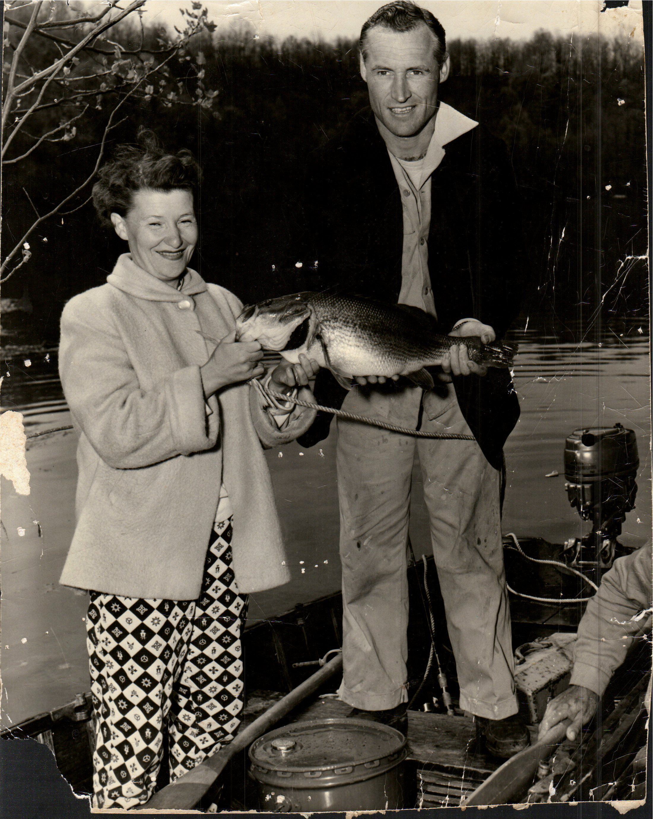 Burr Oak State Park - A Woman and Man Pose With Their Prize Fish, date unknown