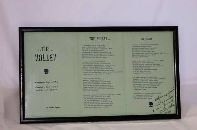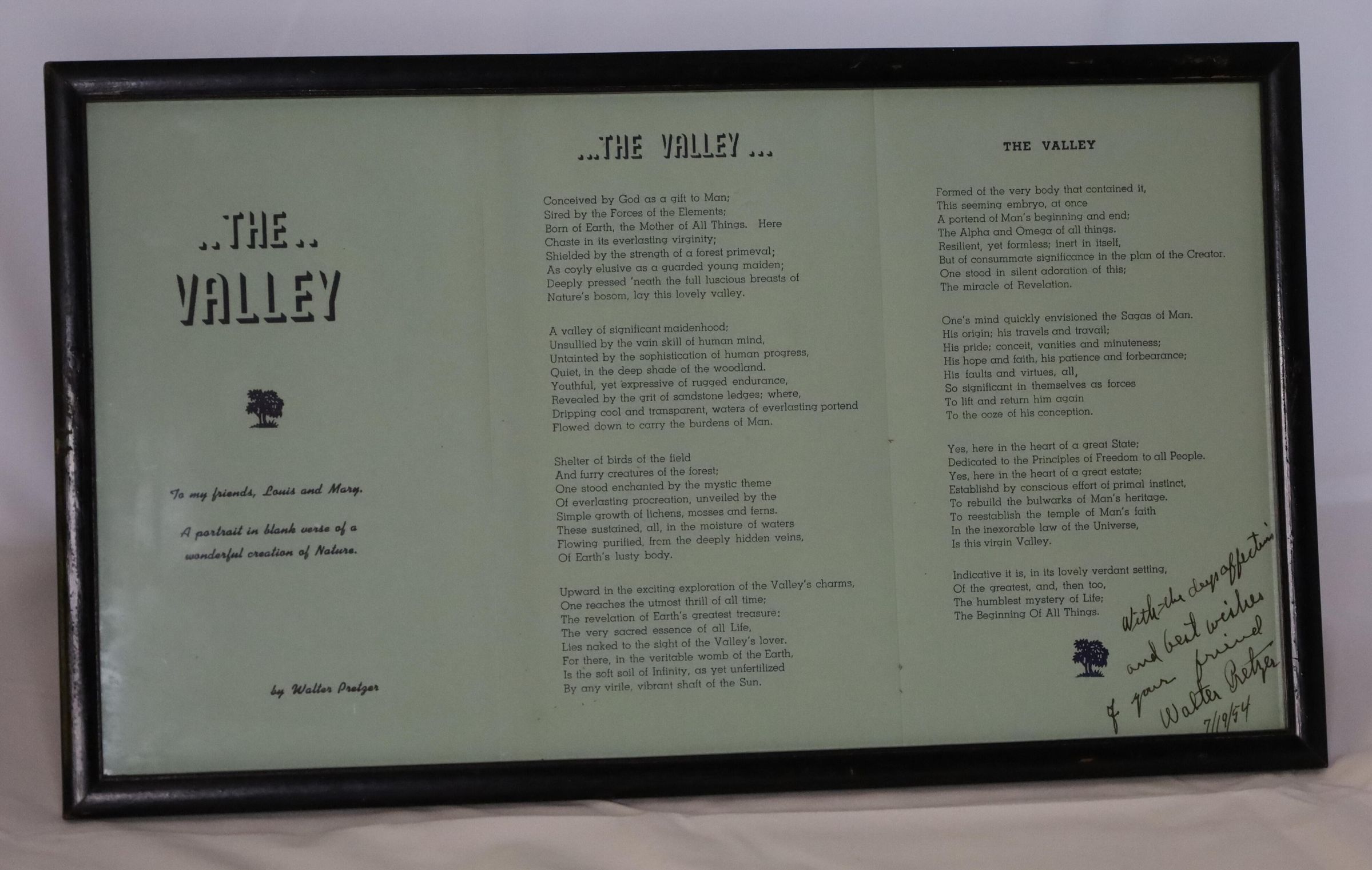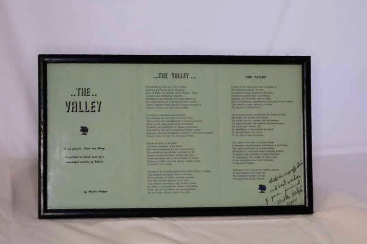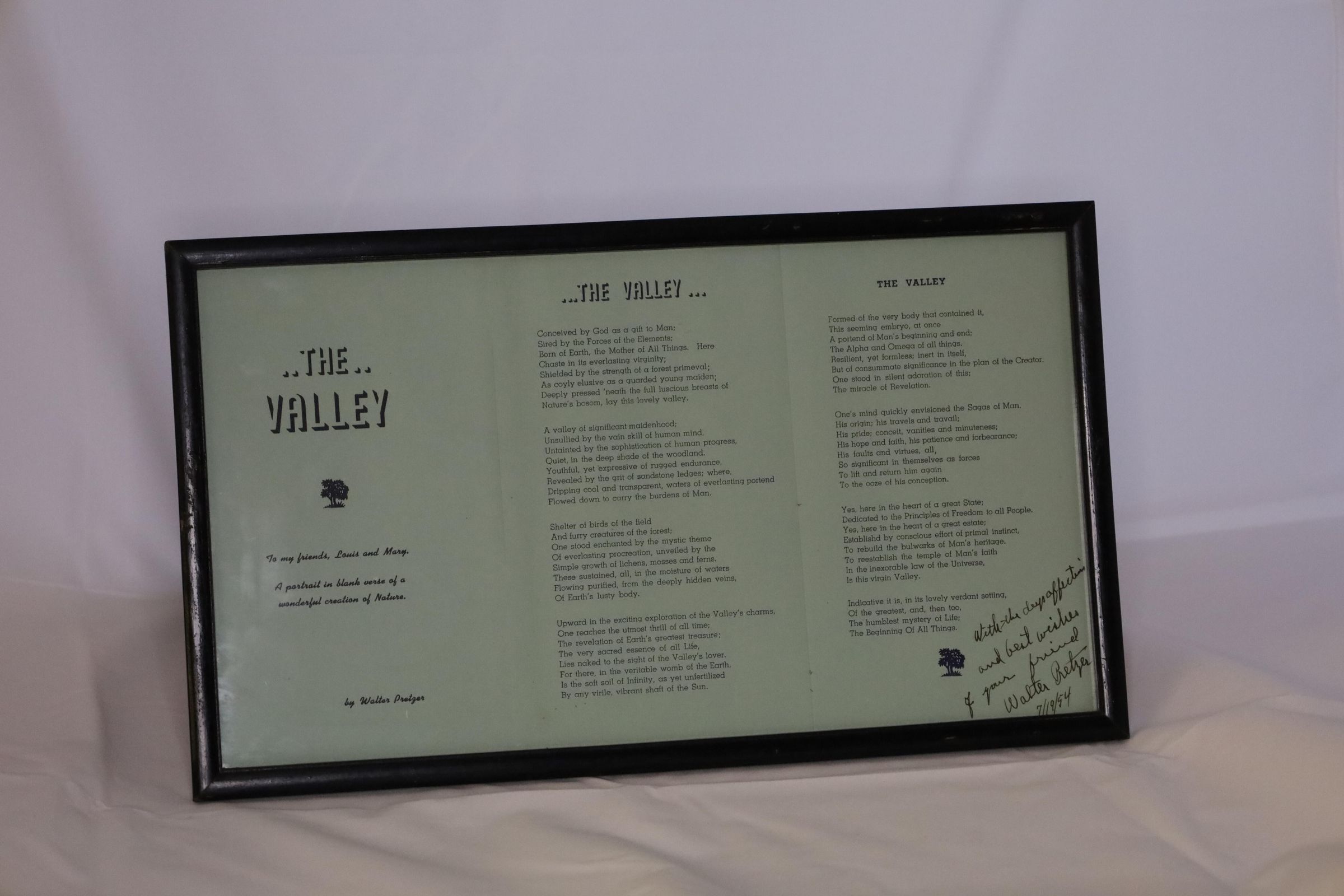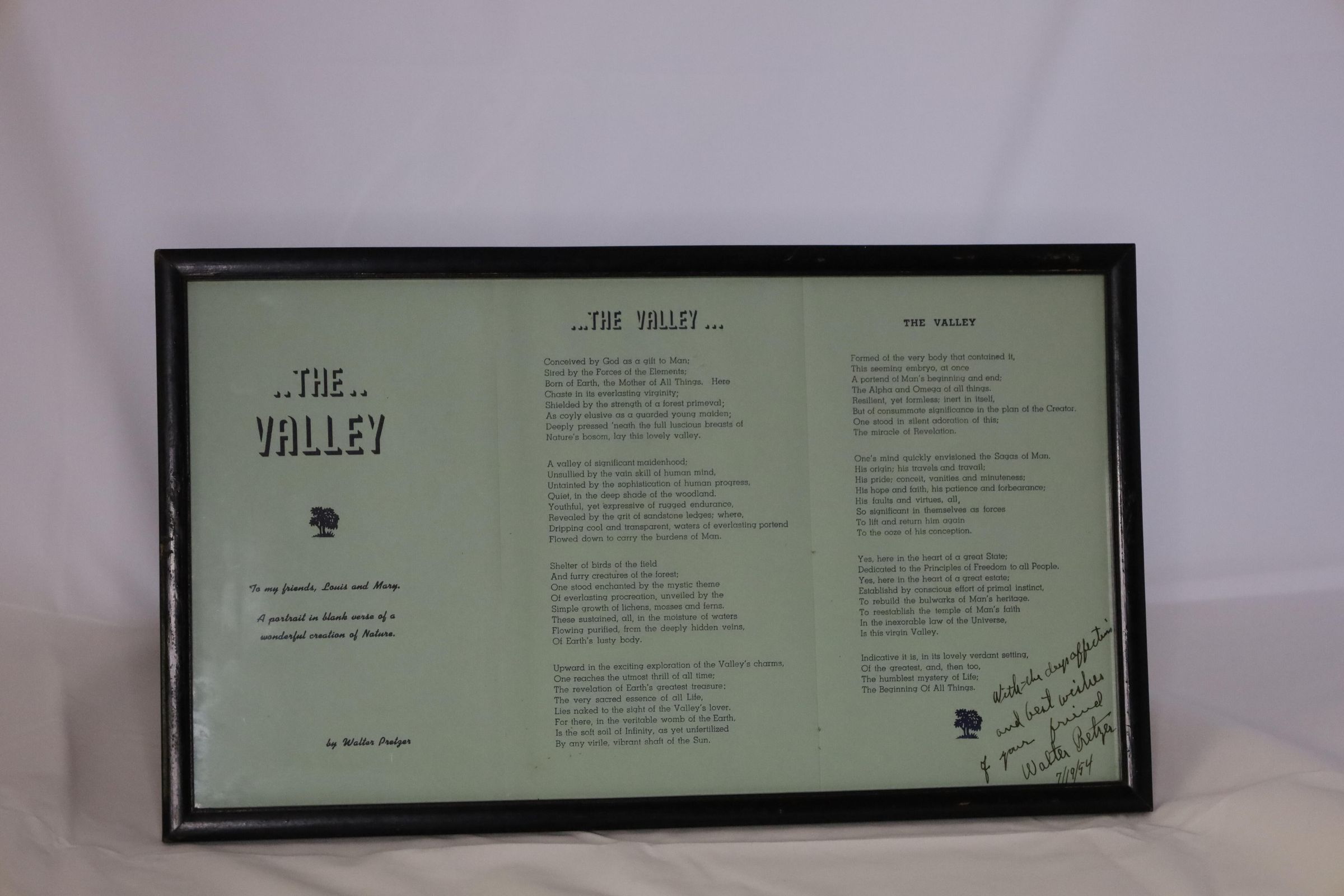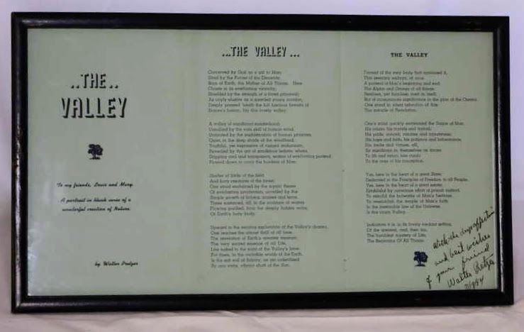 Signed copy of the poem The Valley by Walter Pretzer from 1954Entry/Object ID