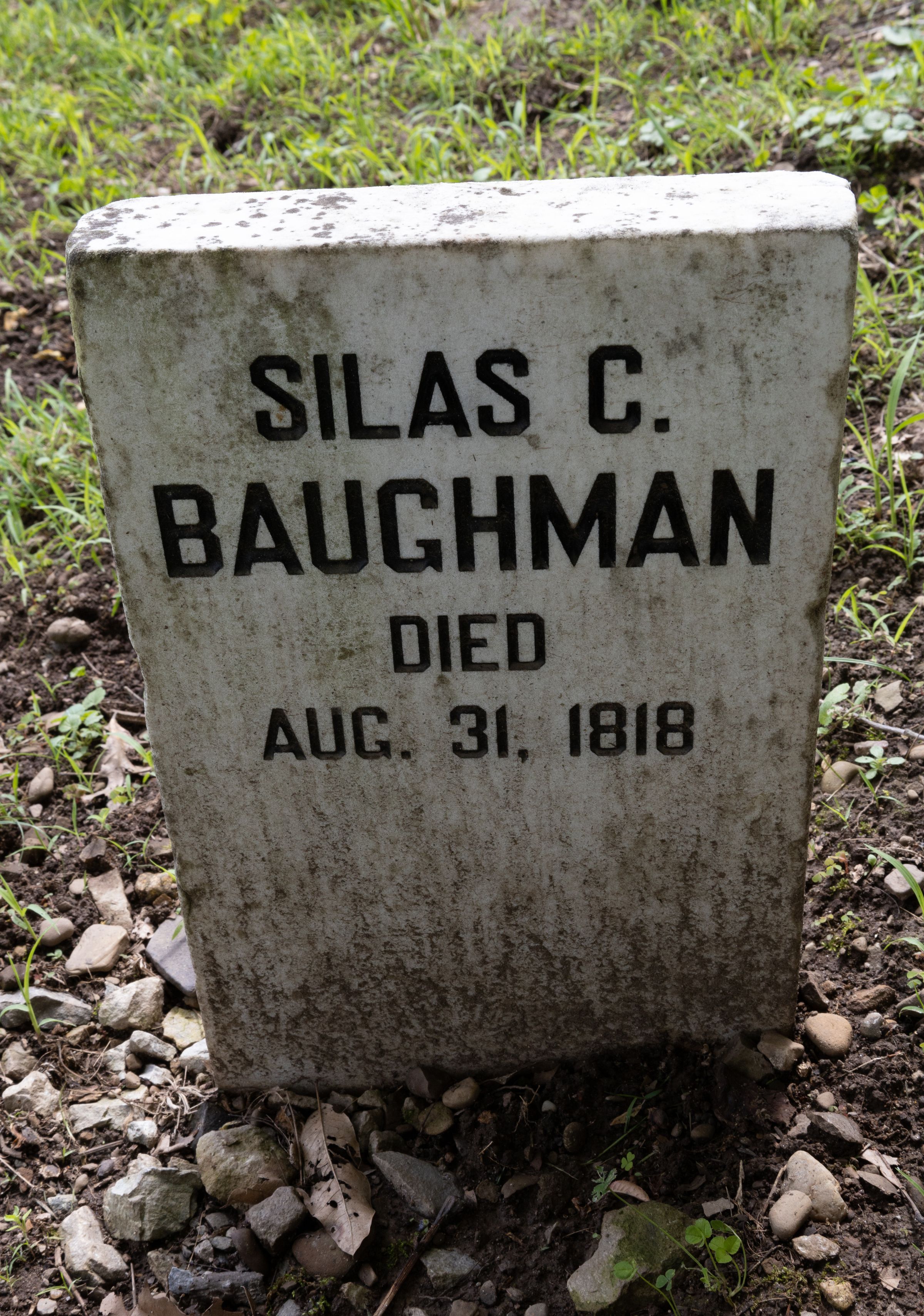 The "original" tombstone pictured on findagrave lists a Silas C. Baughman's date of death as 1848.