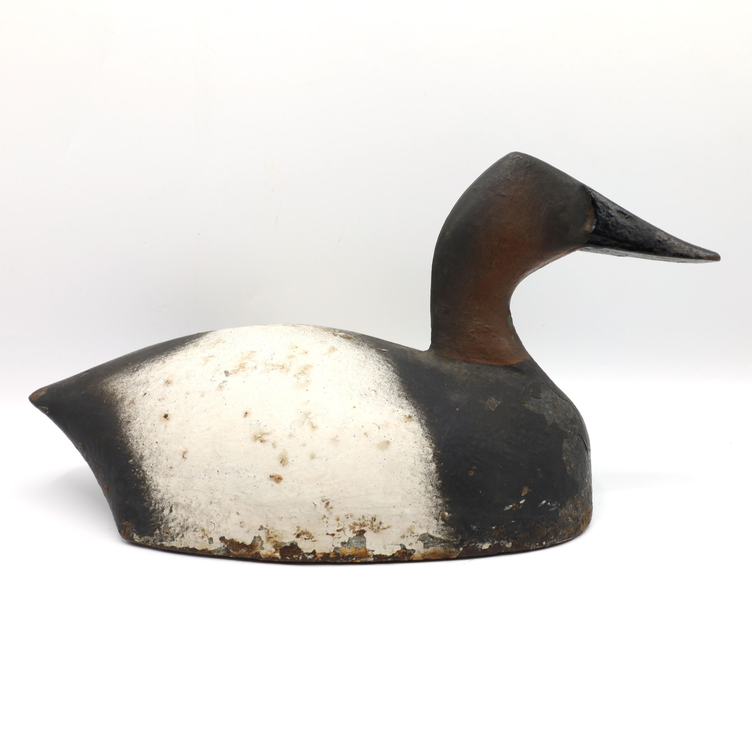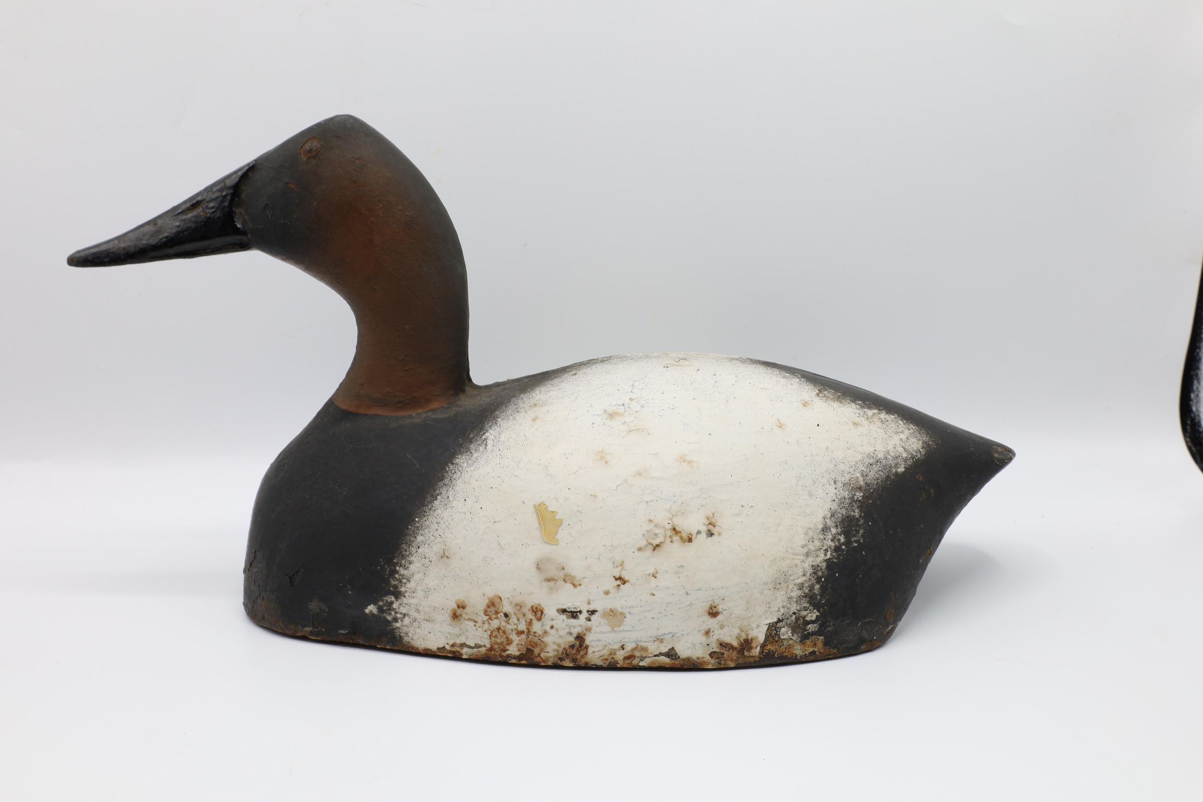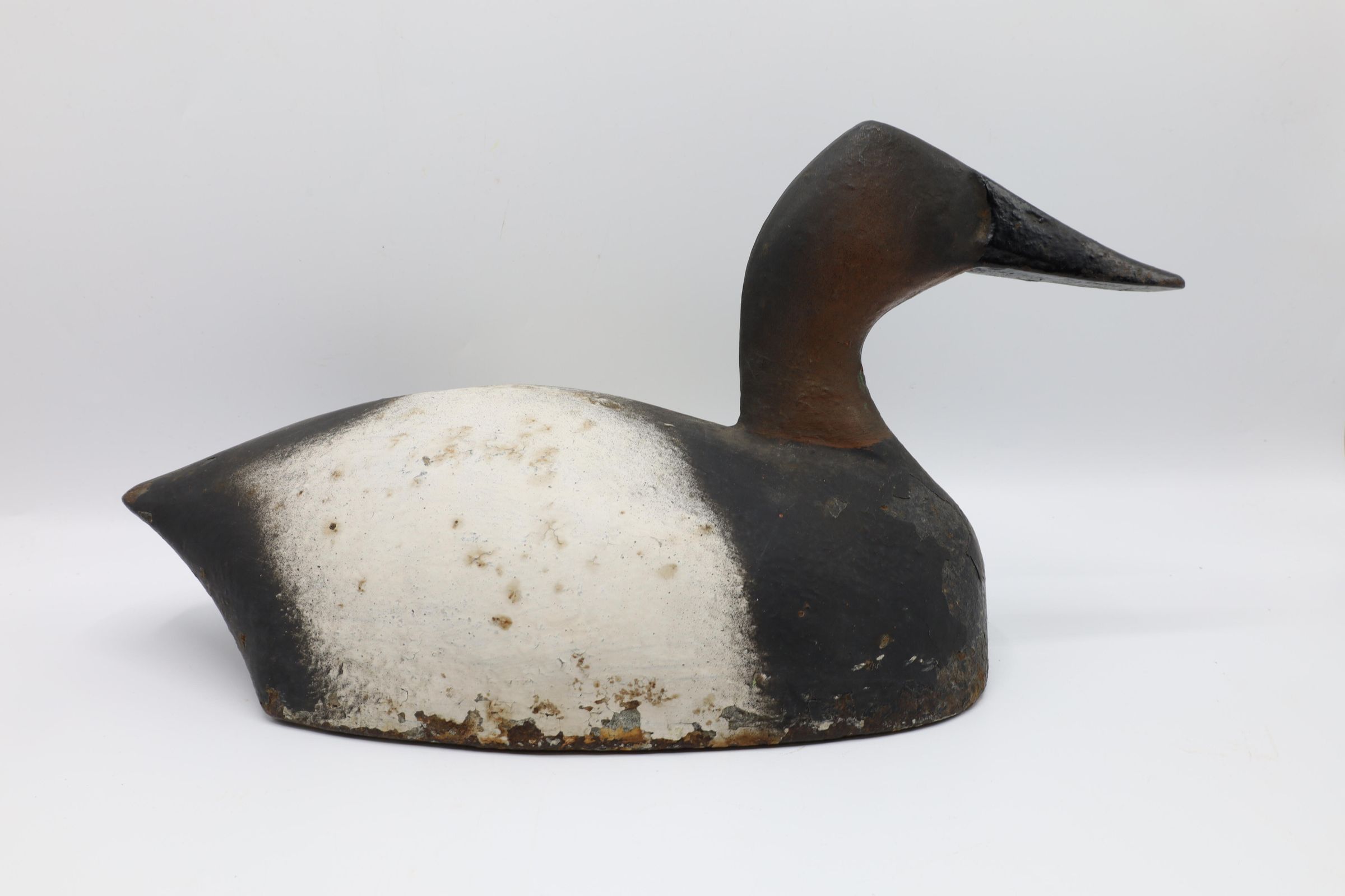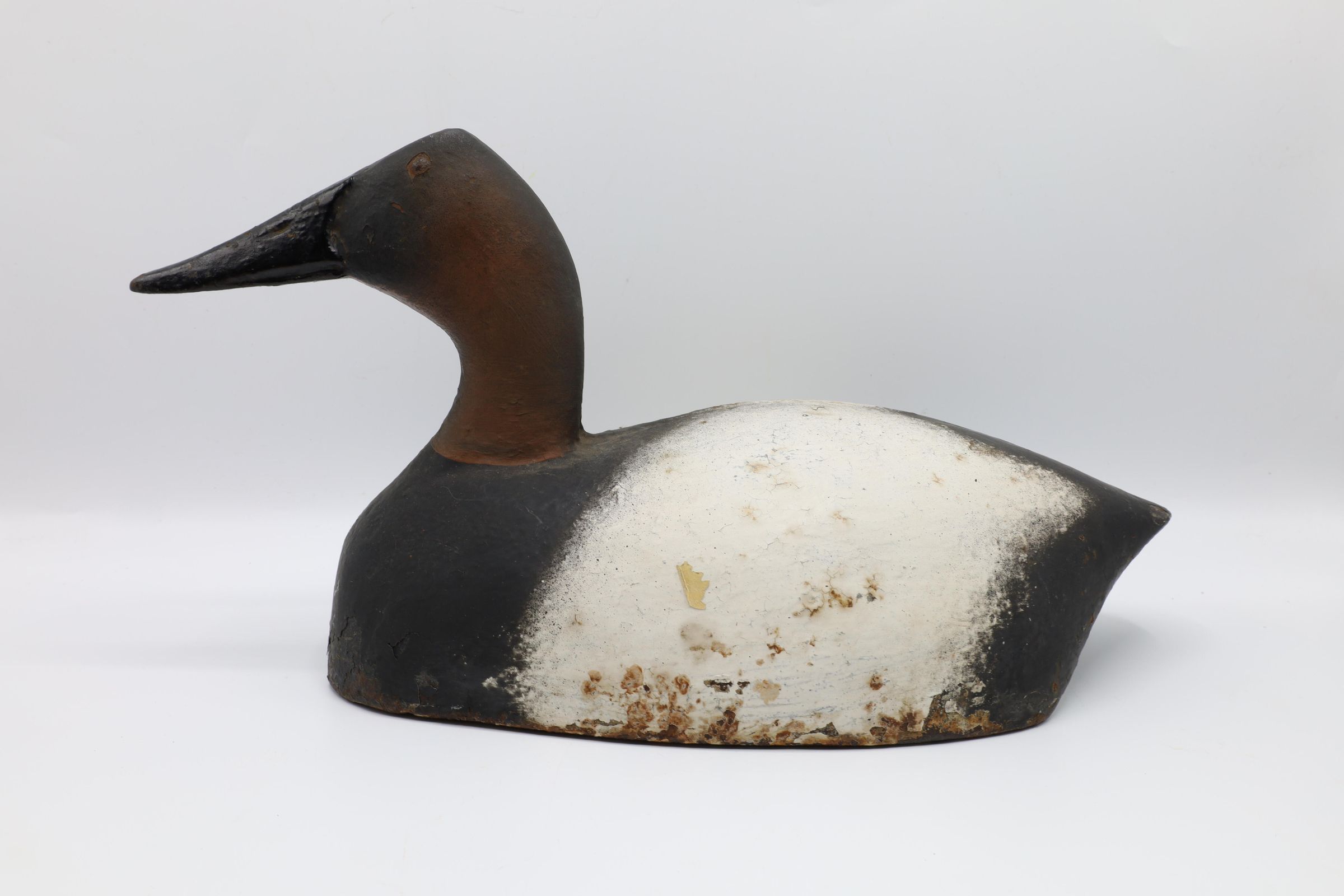 Cast iron decoys such as this Canvasback drake, manufactured in 1920, were used to help weigh down sink boxes. A sink box allowed a hunter to be even with or slightly above the water line, which helped obscure them from the birds they hunted. This type of hunting was especially effective for diving ducks such as the Canvasback. However, it was also incredibly dangerous for the hunter, and using the aptly nicknamed "water coffins" was outlawed in the United States in 1918. Fortunately, Ohio had already banned their use by that time.Use