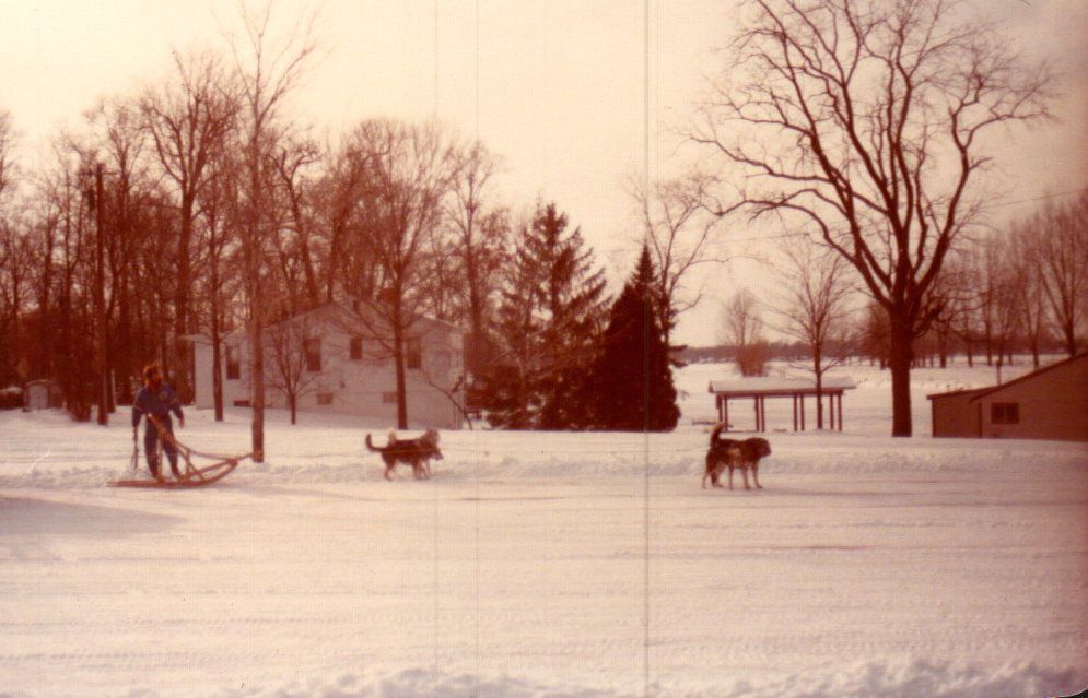 A parkgoer takes advantage of a heavy snow to mush a team of sled dogs at Indian Lake State Park in January of 1981.