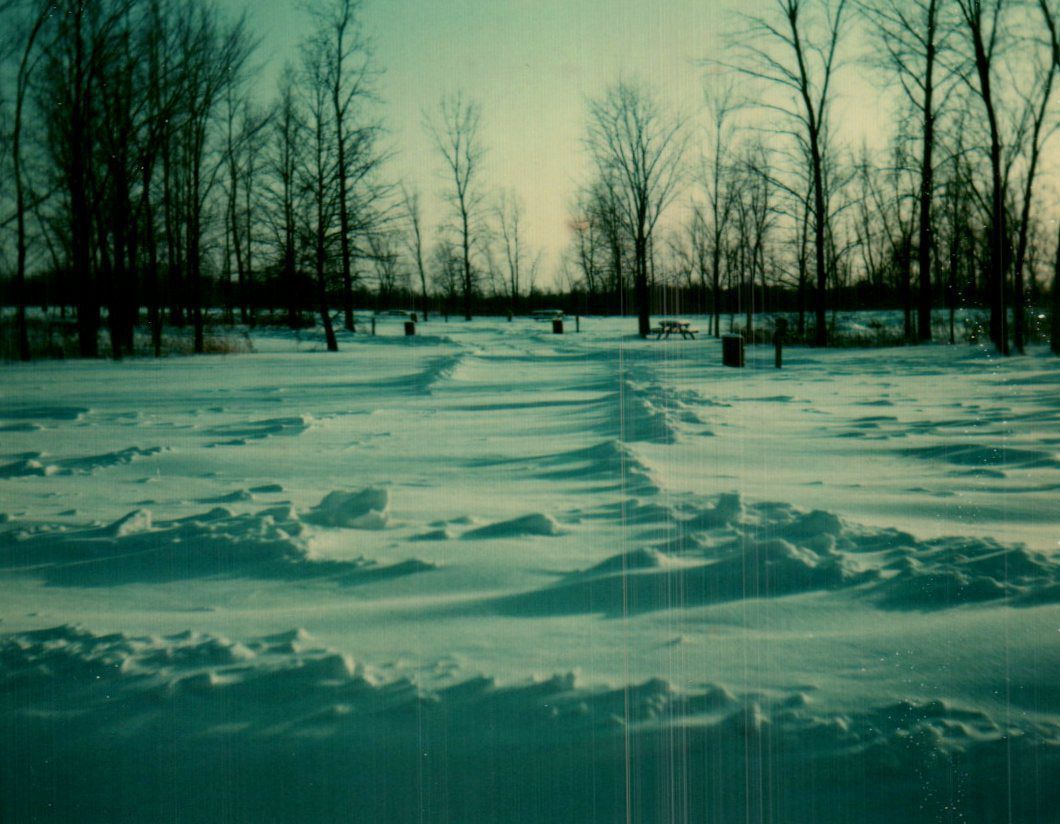 A road at Delaware State Park is covered with snow following a blizzard despite being cleaned off just two days prior. This photograph was taken on January 16, 1977. The winter of 1977 was particularly harsh in Ohio and featured heavy snowfalls and deep freezes-including a frozen Ohio River in Cincinnati.