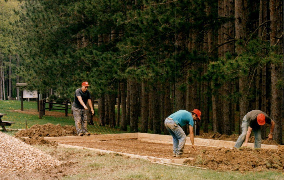Workers build the foundation for Mt. Gilead State Park's new camp store and storage shed in 1996.