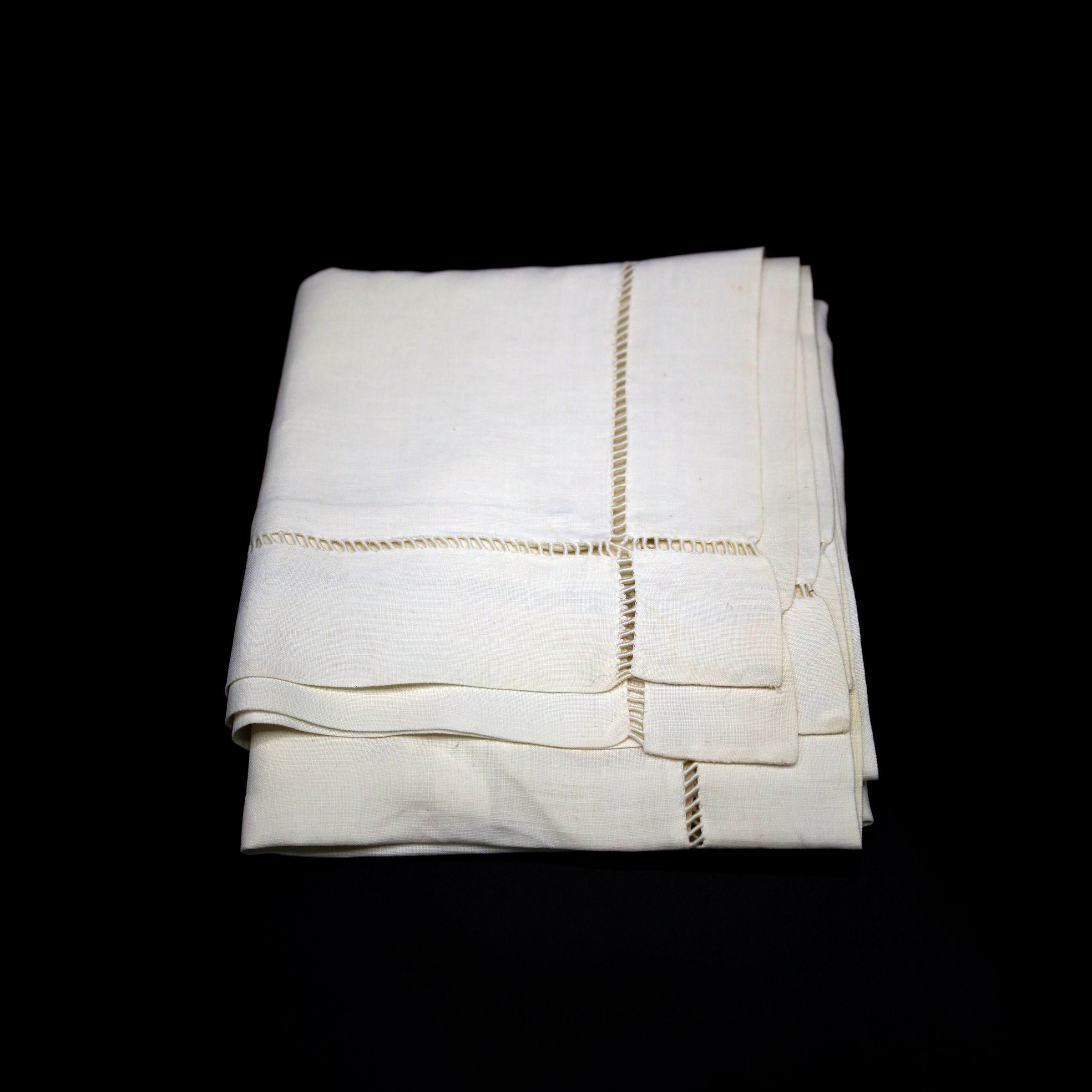 White tablecloth with drawn thread work design. While this tablecloth is likely from the 20th century, drawn thread work is one of the earliest forms of open work embroidery.Location