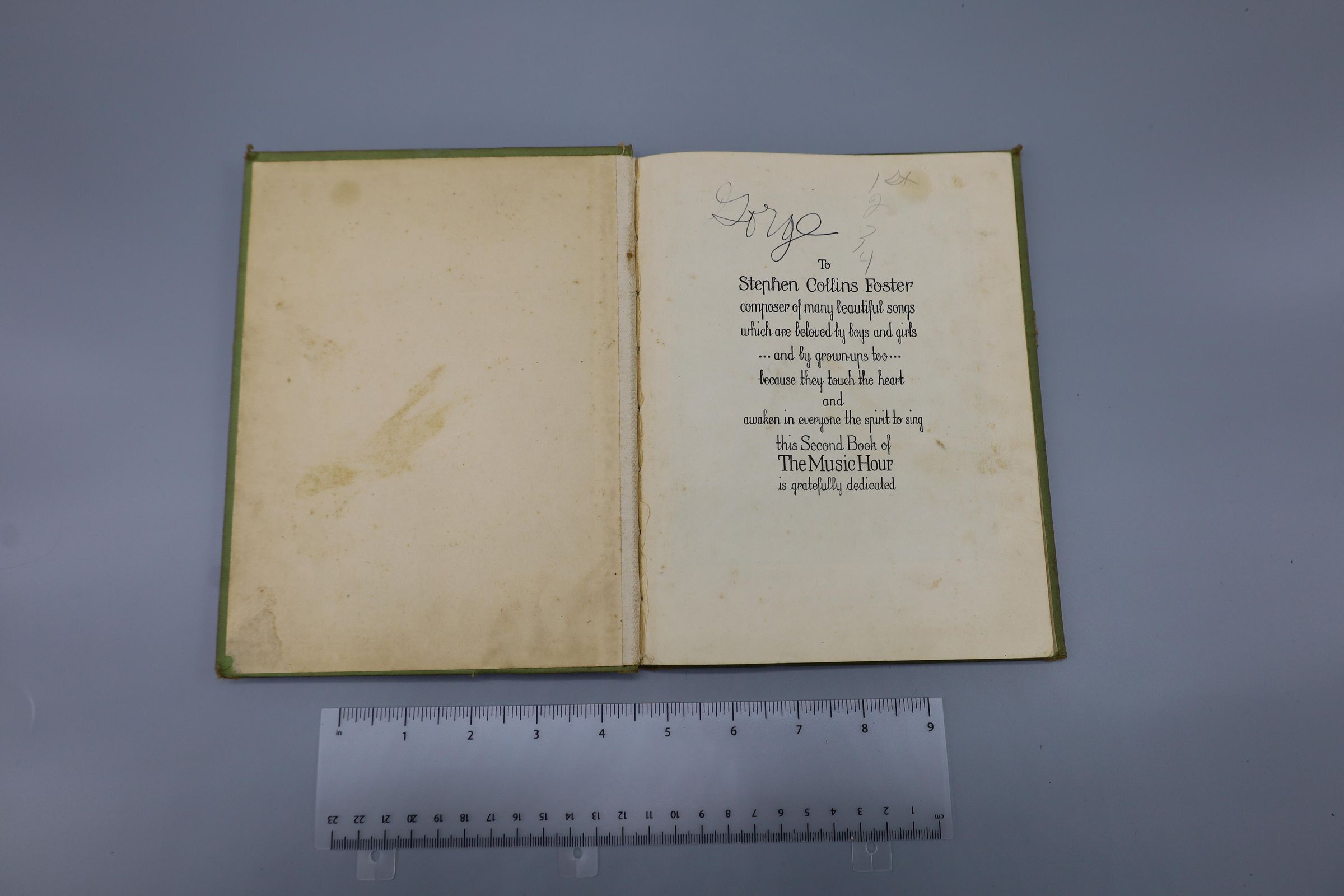 The Music Hour Second Book by Osbourne McConathy. Dedicated to Stephen Foster.