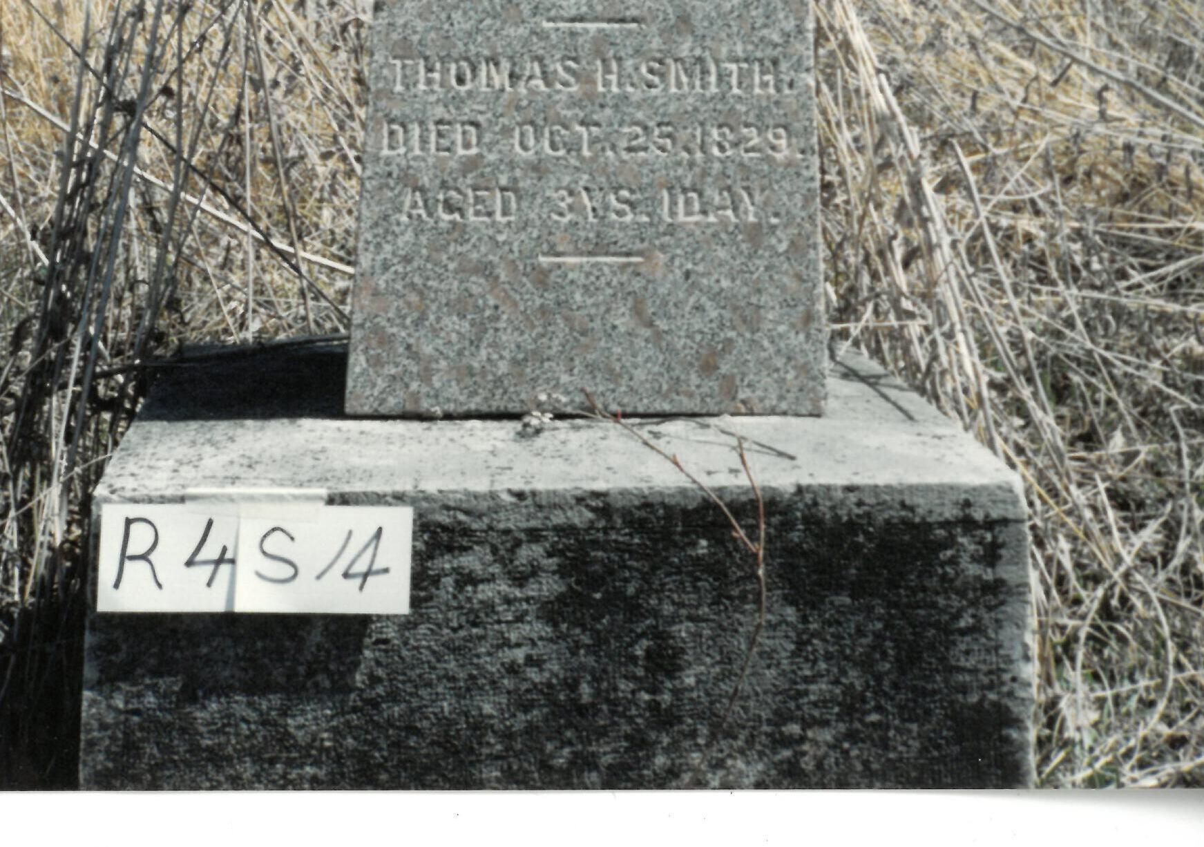 THOMAS H. SMITH Died Oct 25, 1829 Aged 3 ys 1 day (Bottom of Tombstone)