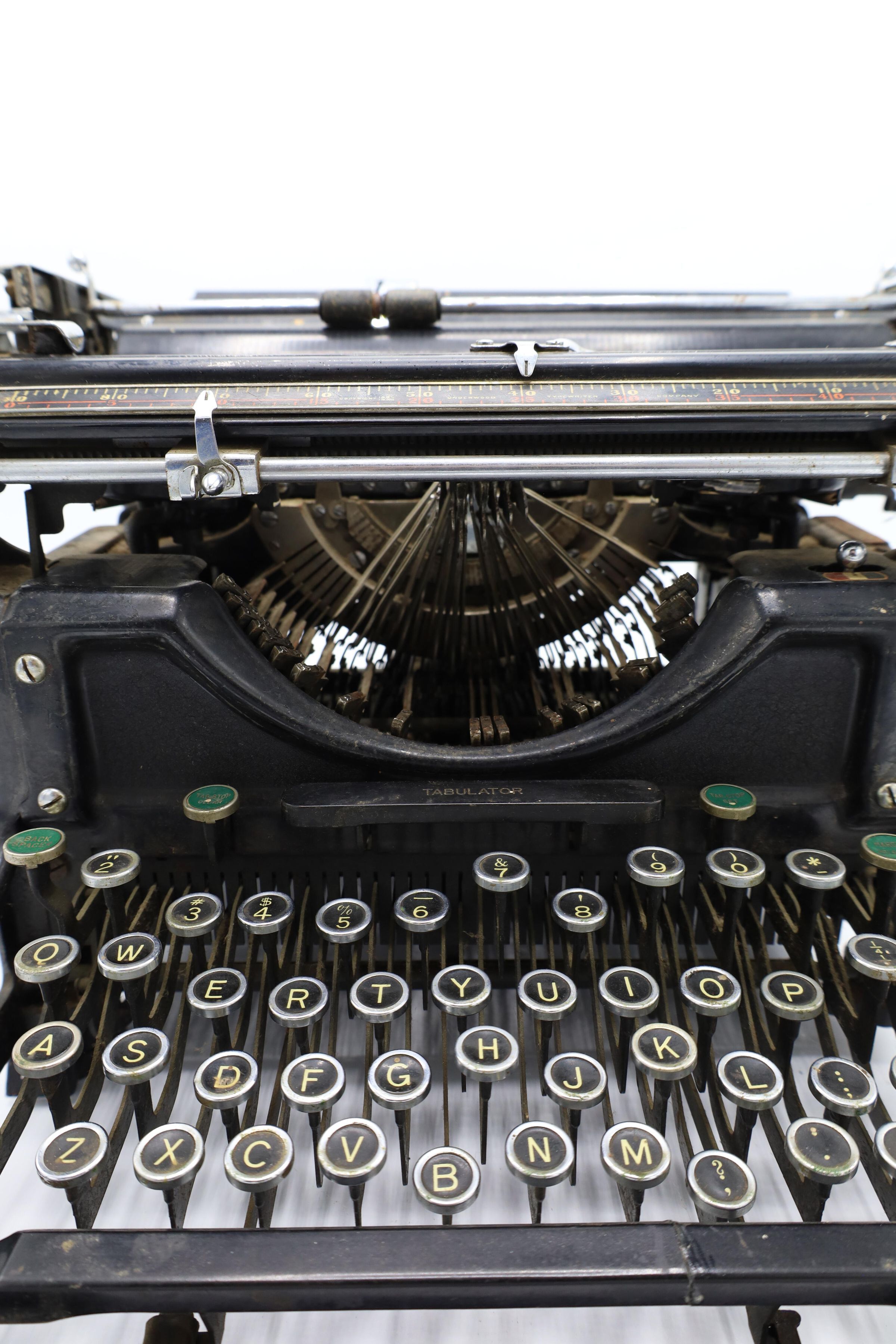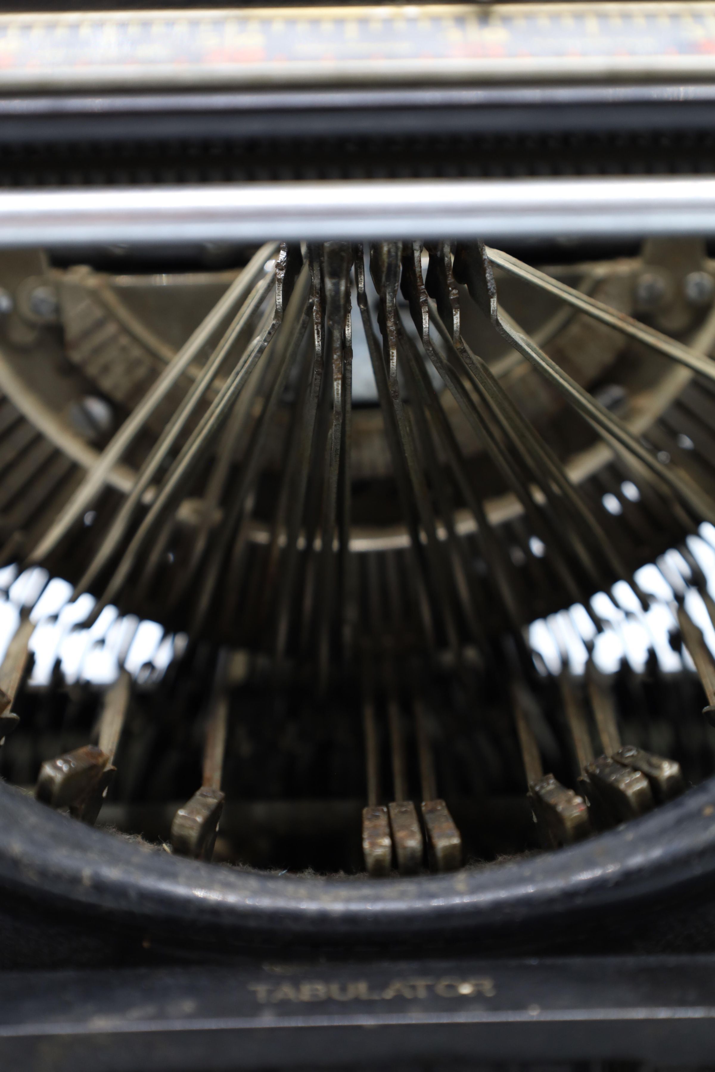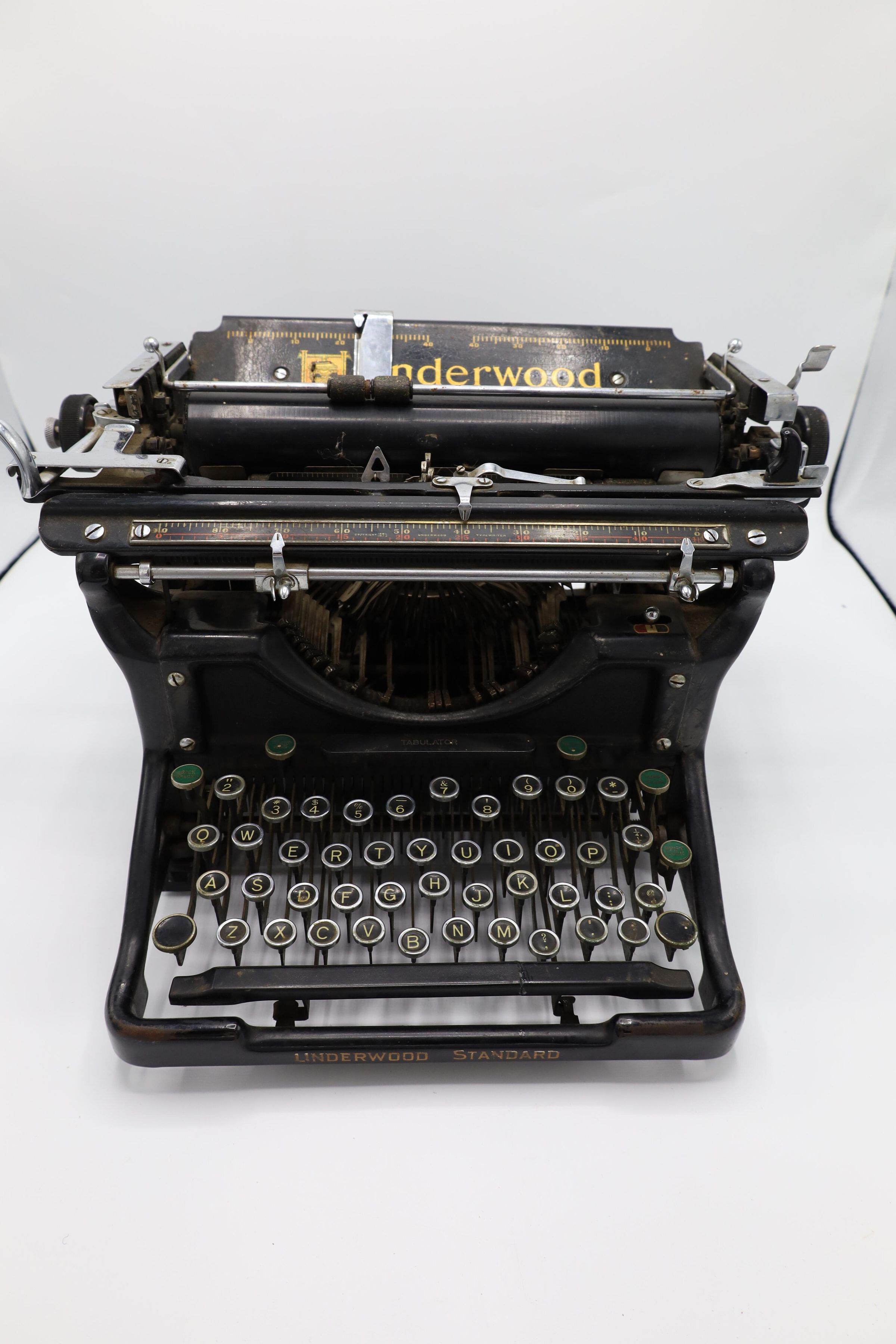 By the 1920s, the Underwood Typewriter upgraded their typewriter to be equipped with front striking bars, single shift keys, and a four row straight keyboard. The front striking bar allowed the writer to see any typed errors immediately, while before they needed to lift the carriage to see what had been typed.