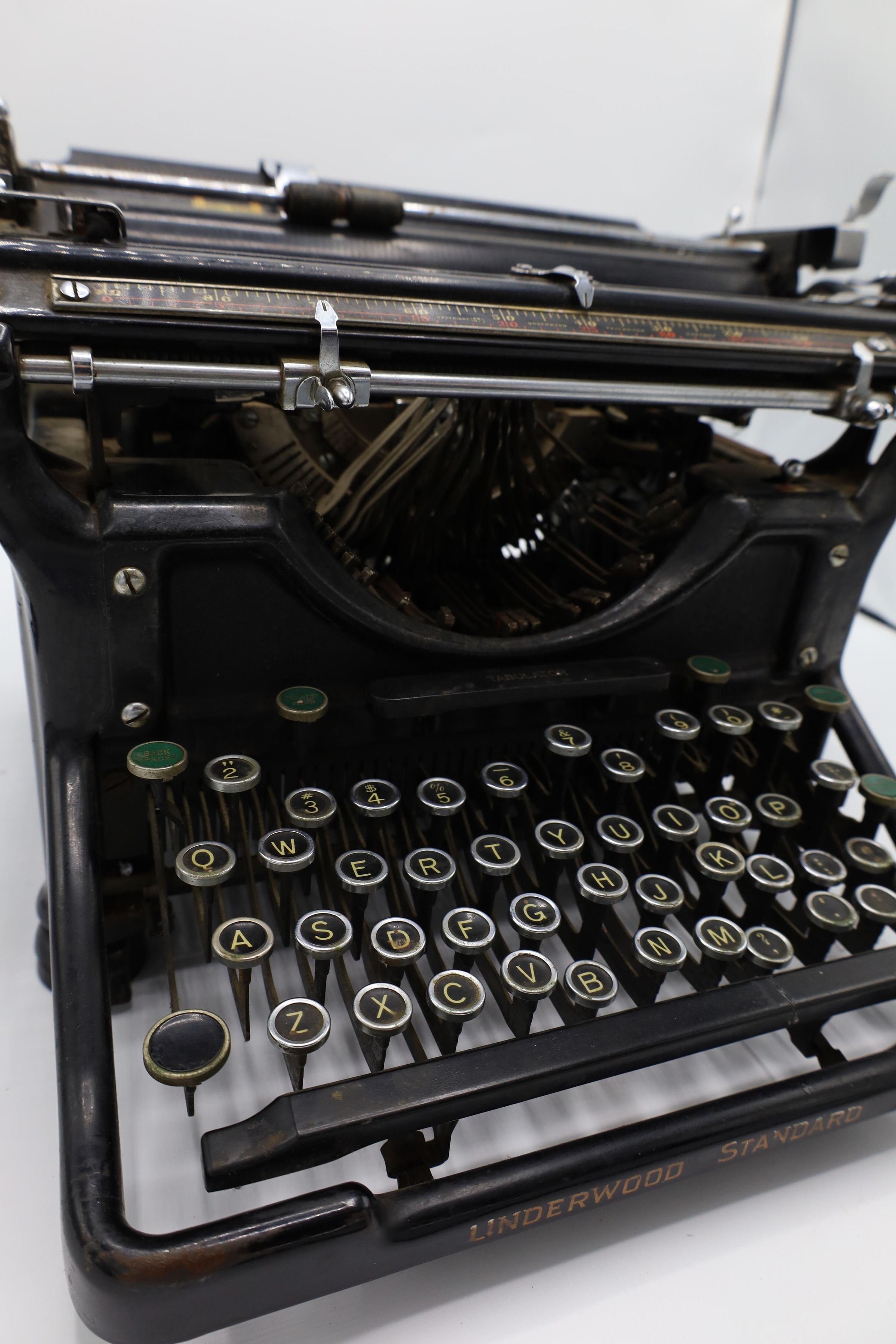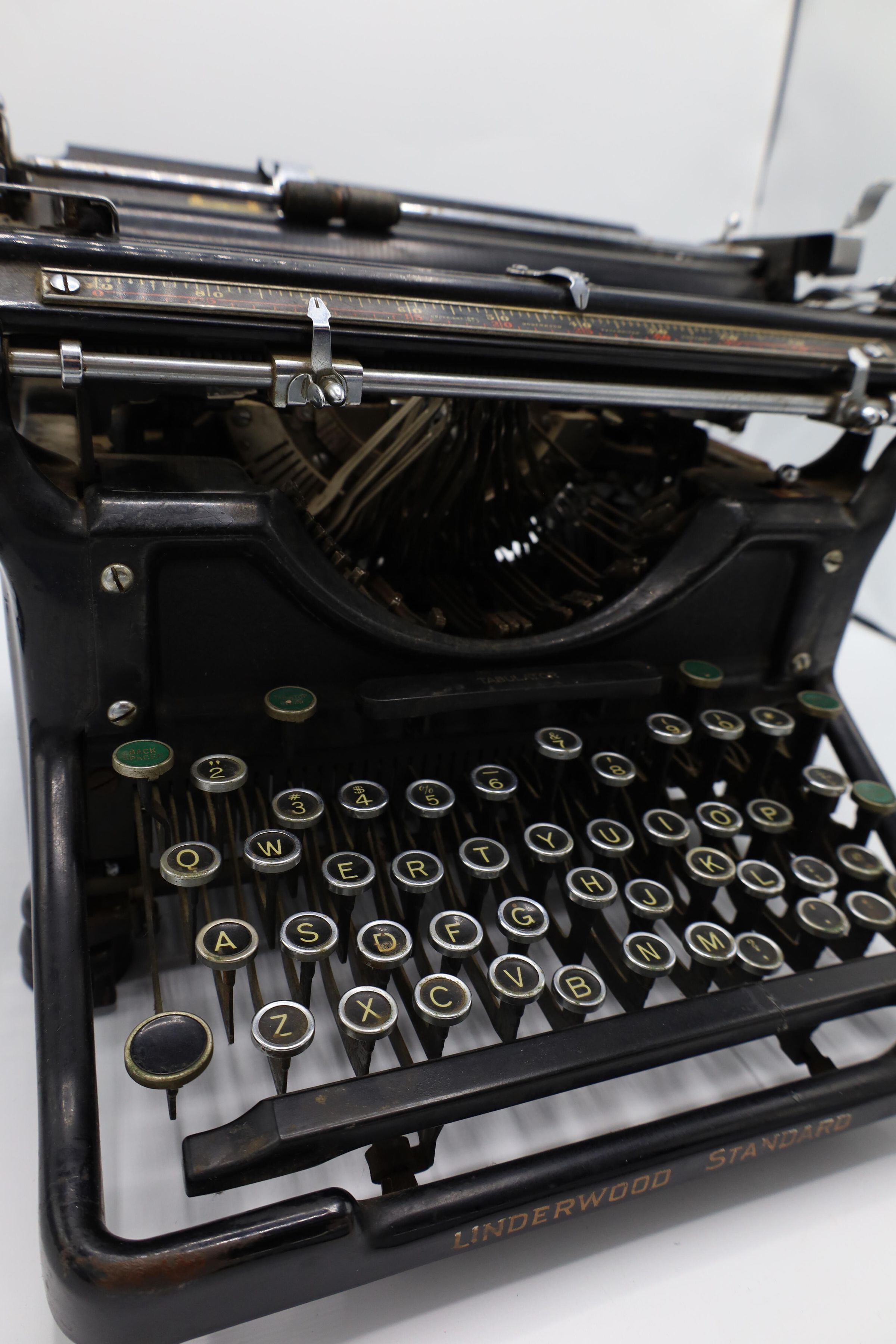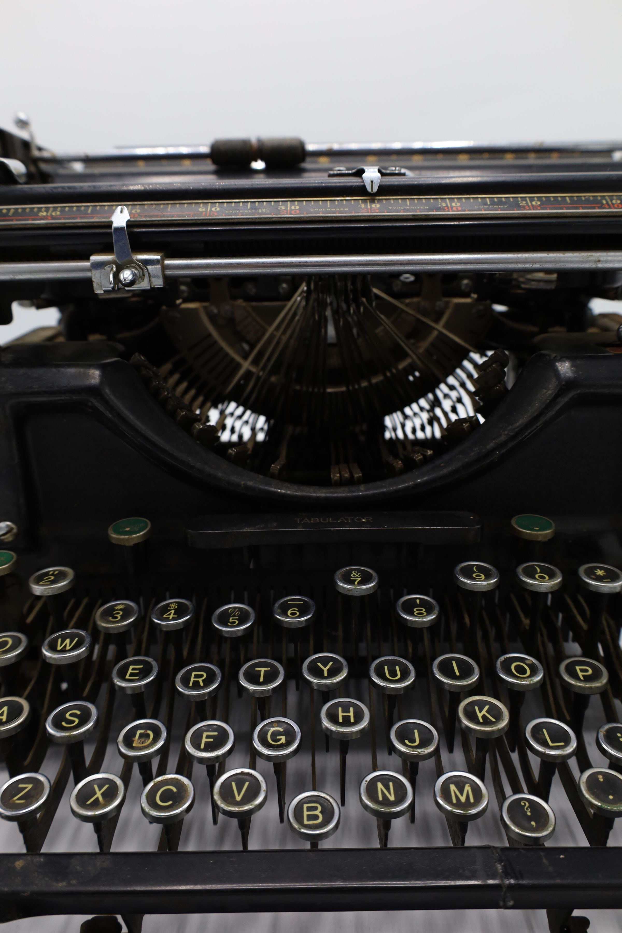 By the 1920s, the Underwood Typewriter upgraded their typewriter to be equipped with front striking bars, single shift keys, and a four row straight keyboard. The front striking bar allowed the writer to see any typed errors immediately, while before they needed to lift the carriage to see what had been typed.
