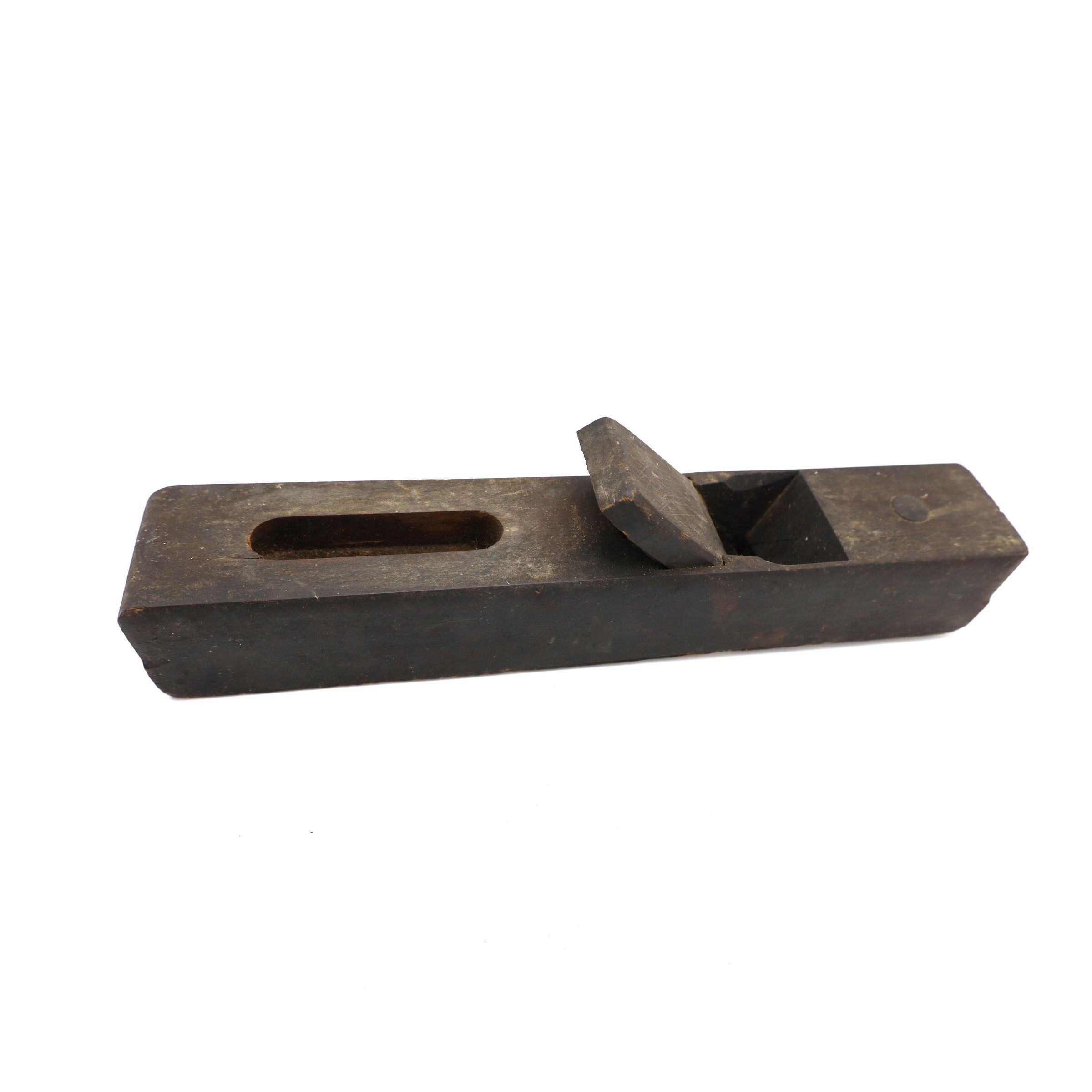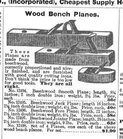 Planes like this were essential for carpenters. A plane uses a metal blade projecting from the bottom of this tool to shave off thin layers of wood from the surface. This smooths the wood prior to use. Planes are designed to run along the wood grain, not perpendicular to it. Wood Bench Planes offered in the 1897 Sears and Roebuck catalog ranged in size from 2 1/2 to 9 pounds.