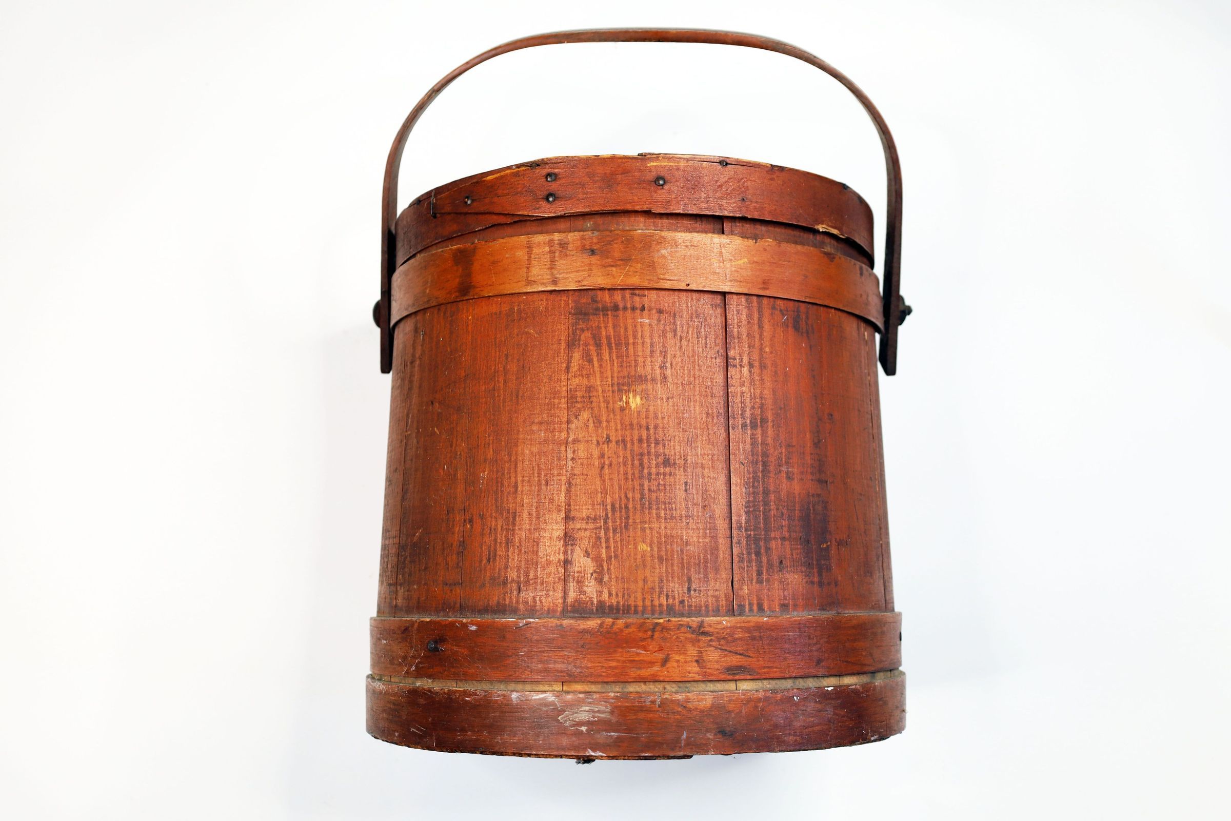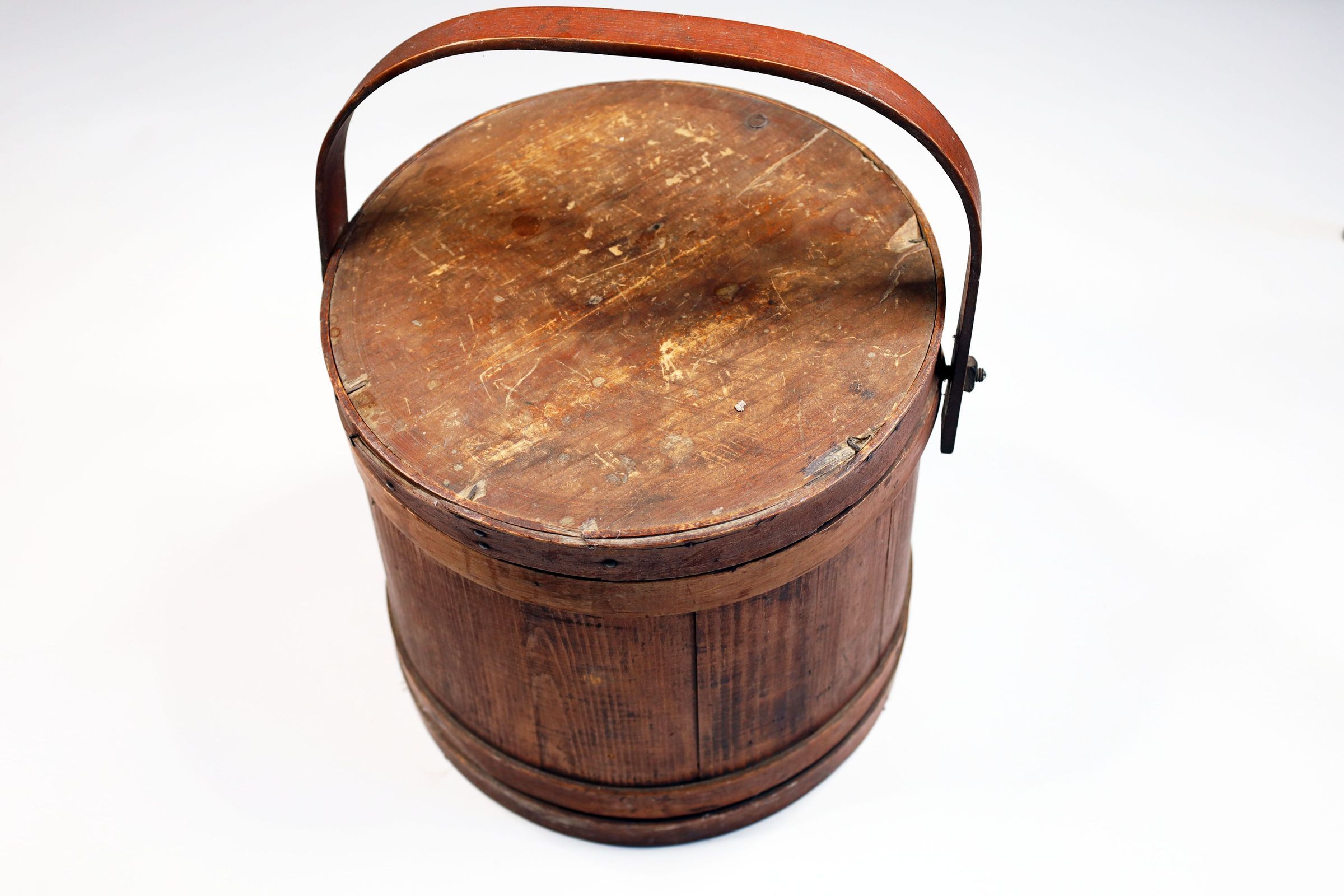 Wooden bucket with lid. Age and maker unknown.