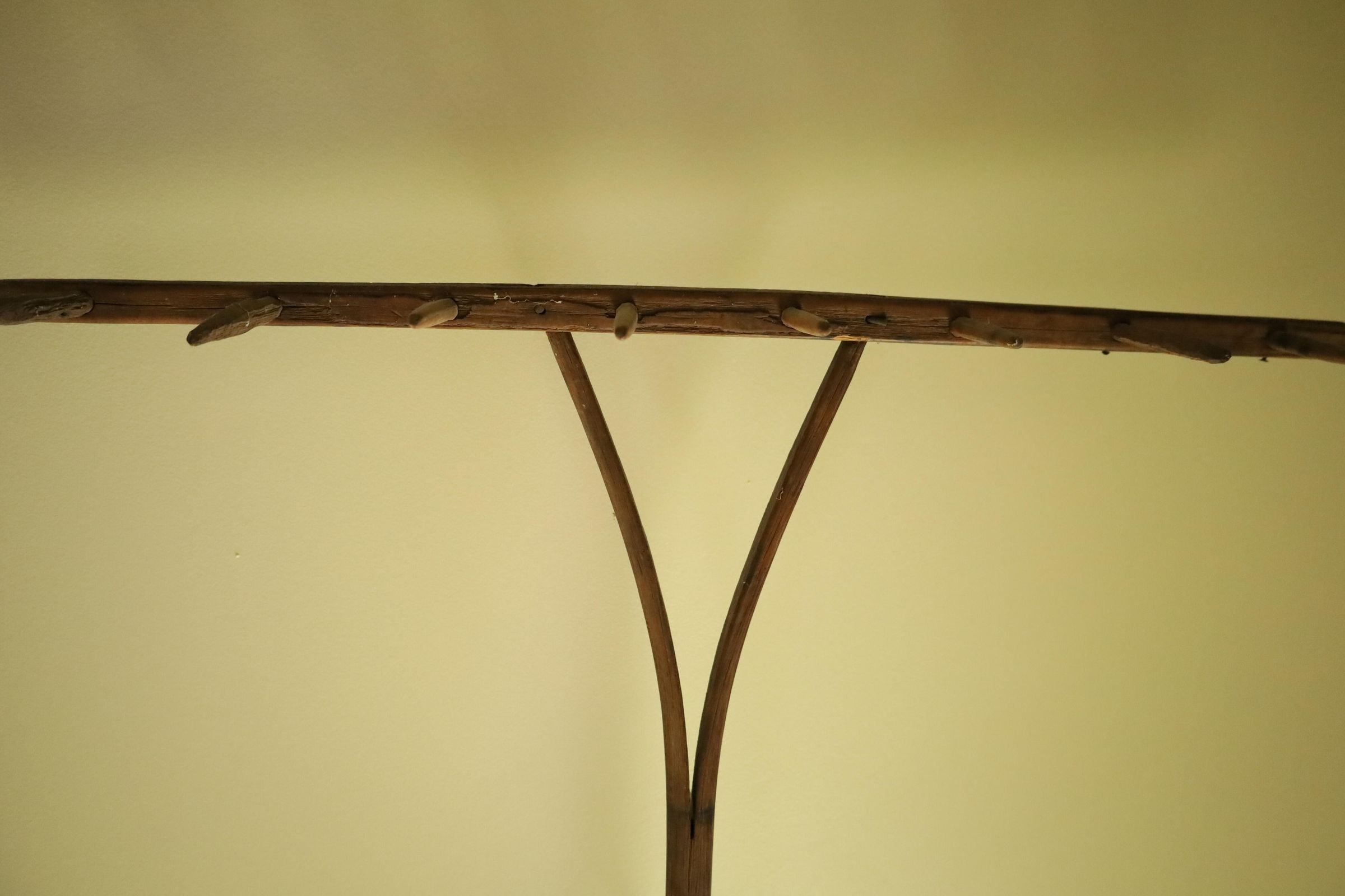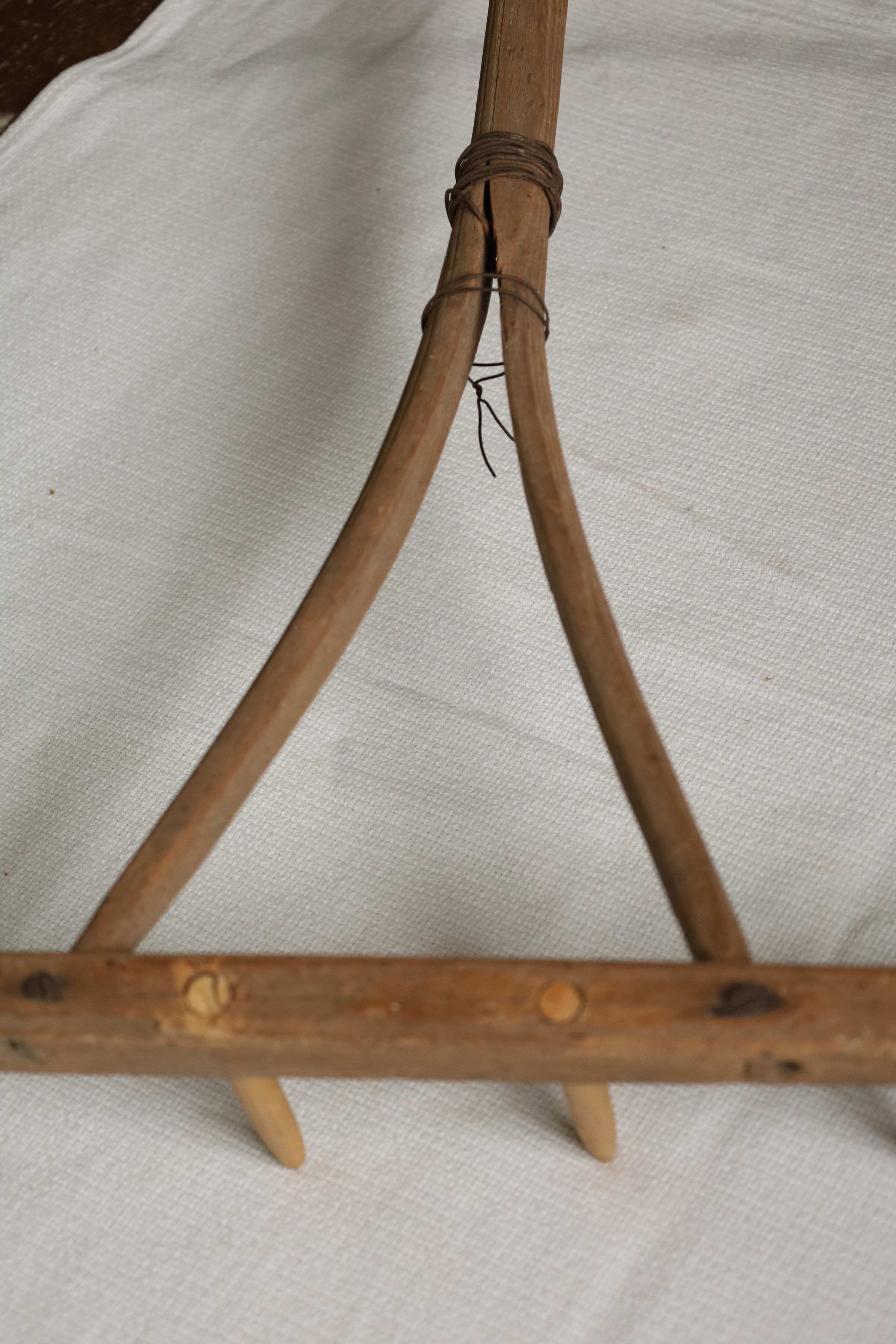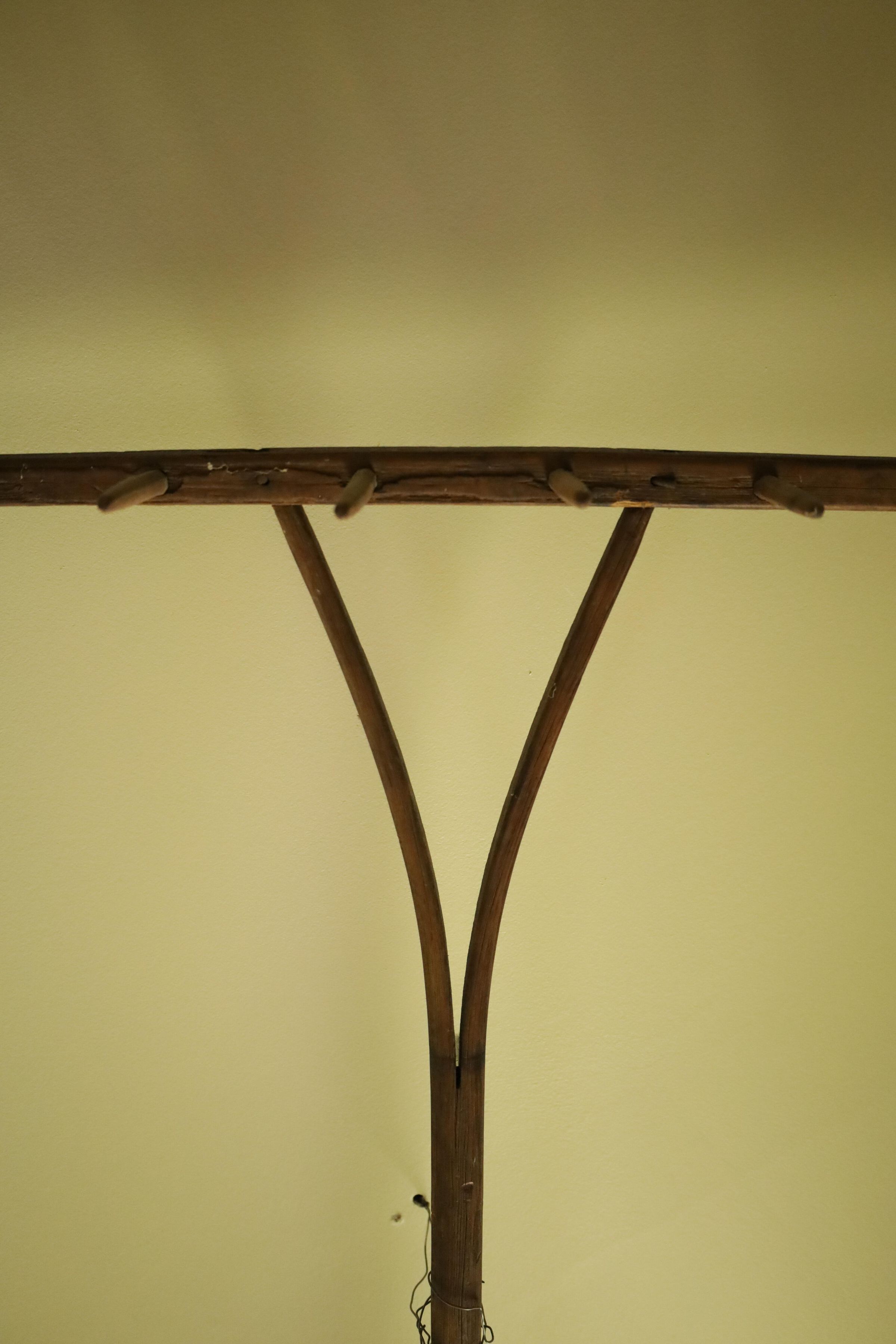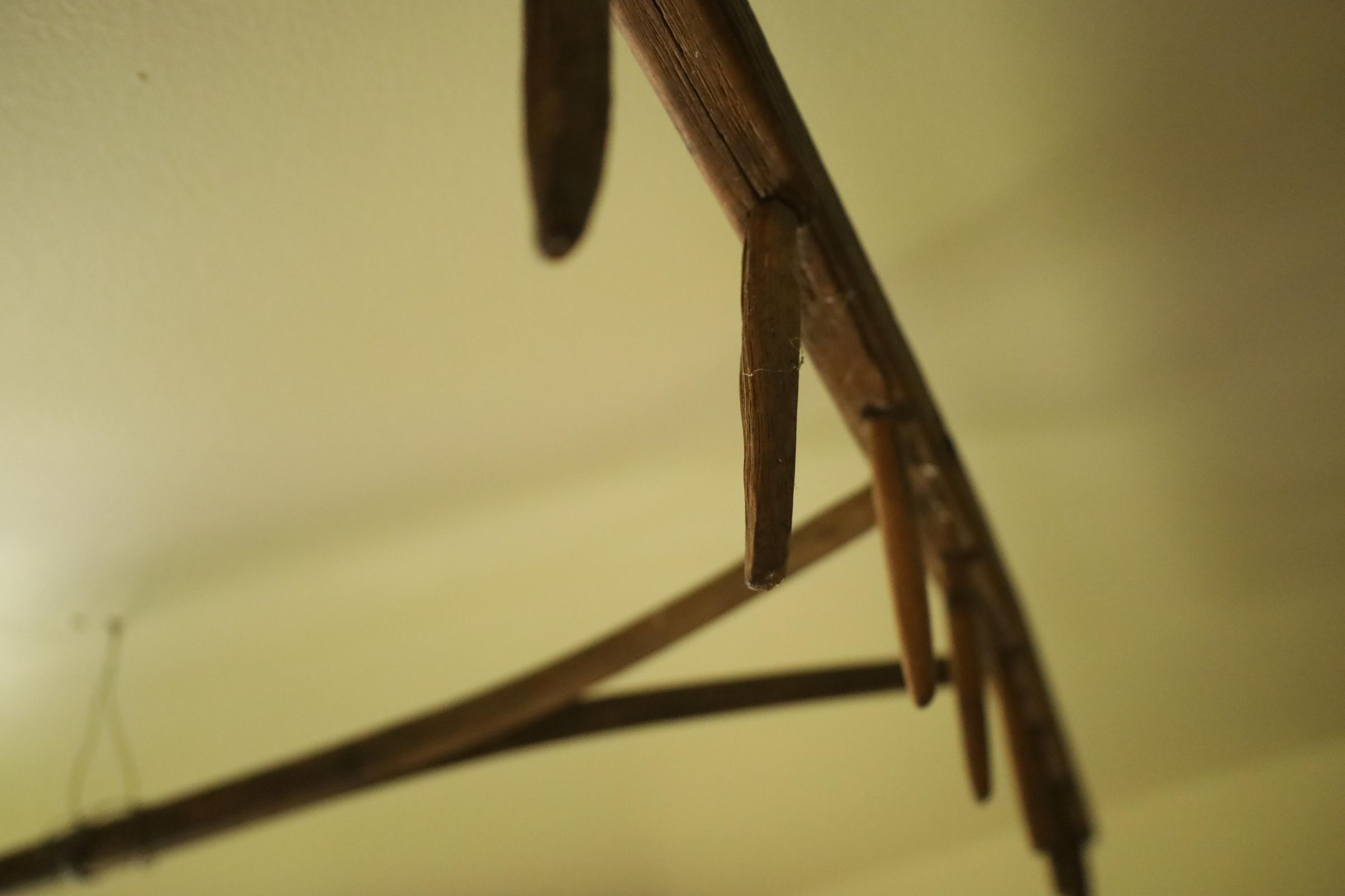 This wooden hay rake was used in the early 19th century. Farmers would cut the hay with a scythe, rake it into piles with the wooden hay rake and then pitch it onto a wagon. Little could be accomplished if you did not own a hay rake.Location