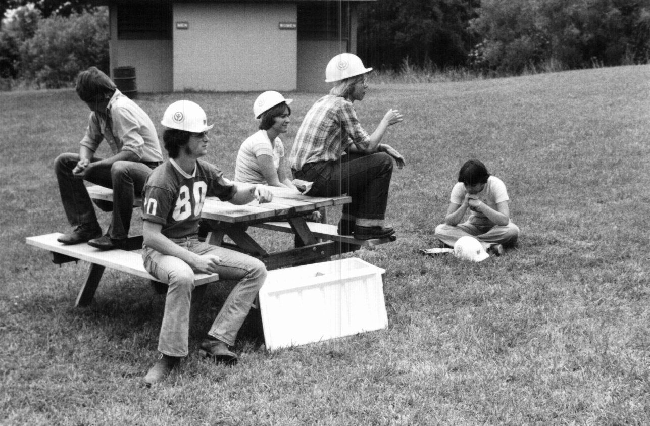 Henry Jackson, a Senator from Washington, proposed creating a Youth Civilian Conservation Corps (CCC) program to provide the baby boom generation with the marketable skills and impactful experiences. He introduced Senate Bill 1076 in 1969 for this purpose, which President Richard Nixon signed into law in August of 1970. This program provided summer employment for youths between 15 and 18 developing and maintaining outdoor infrastructure in U.S. parklands. The logo for this federal program is found on the young man in the football jersey's helmet.