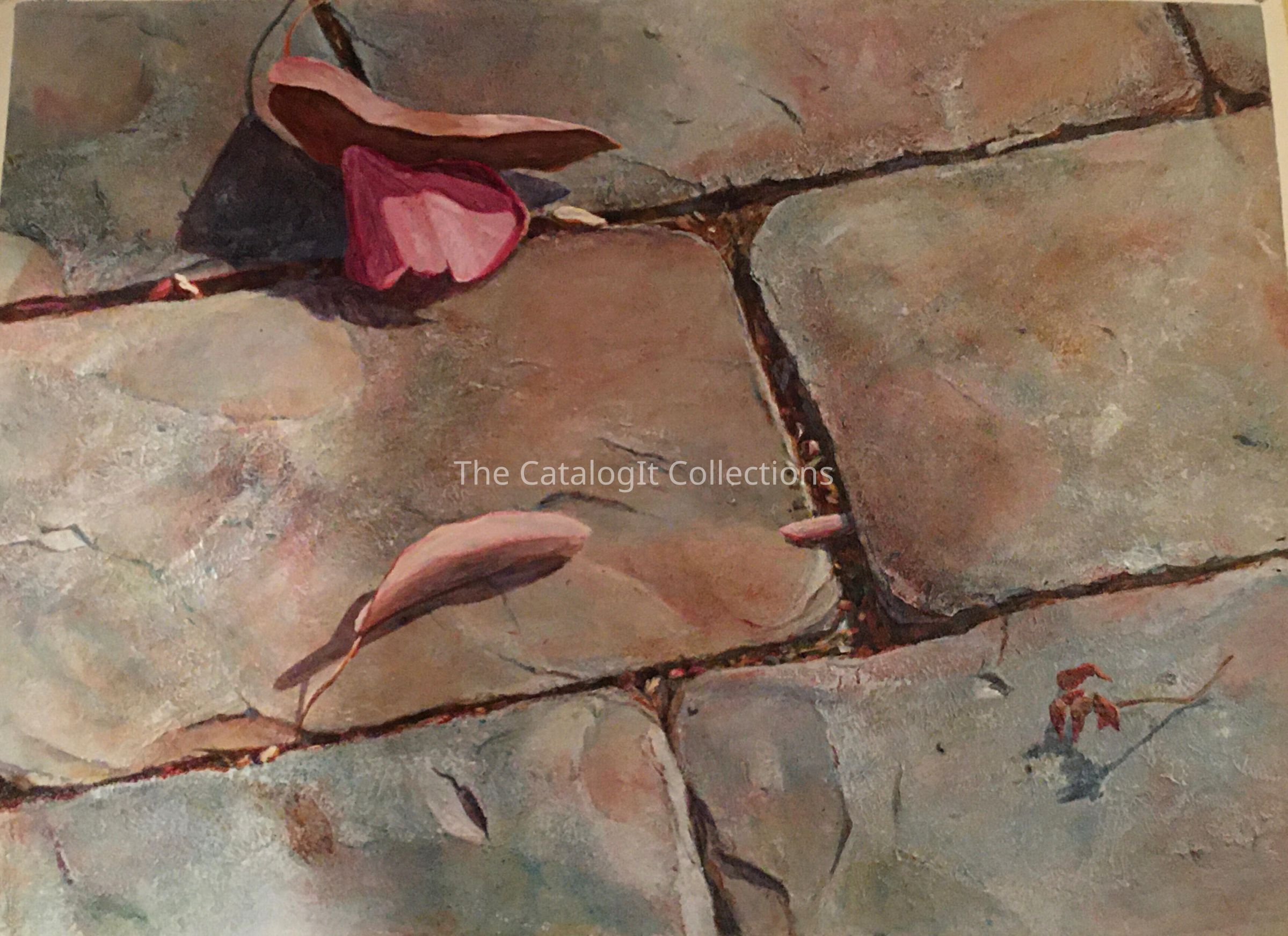 leaves; stone; sidewalk; urban landscapeInscription/Signature/Marks