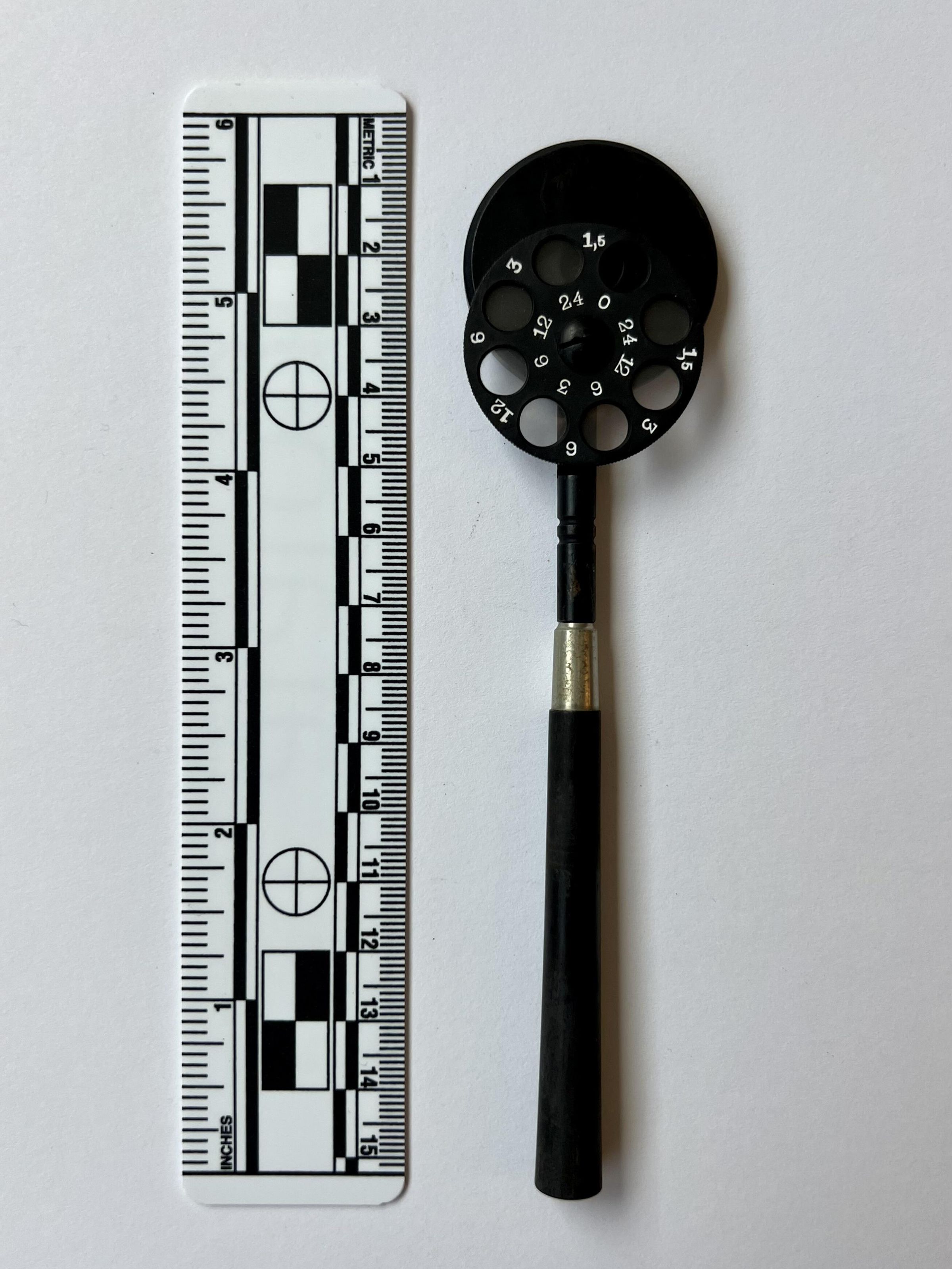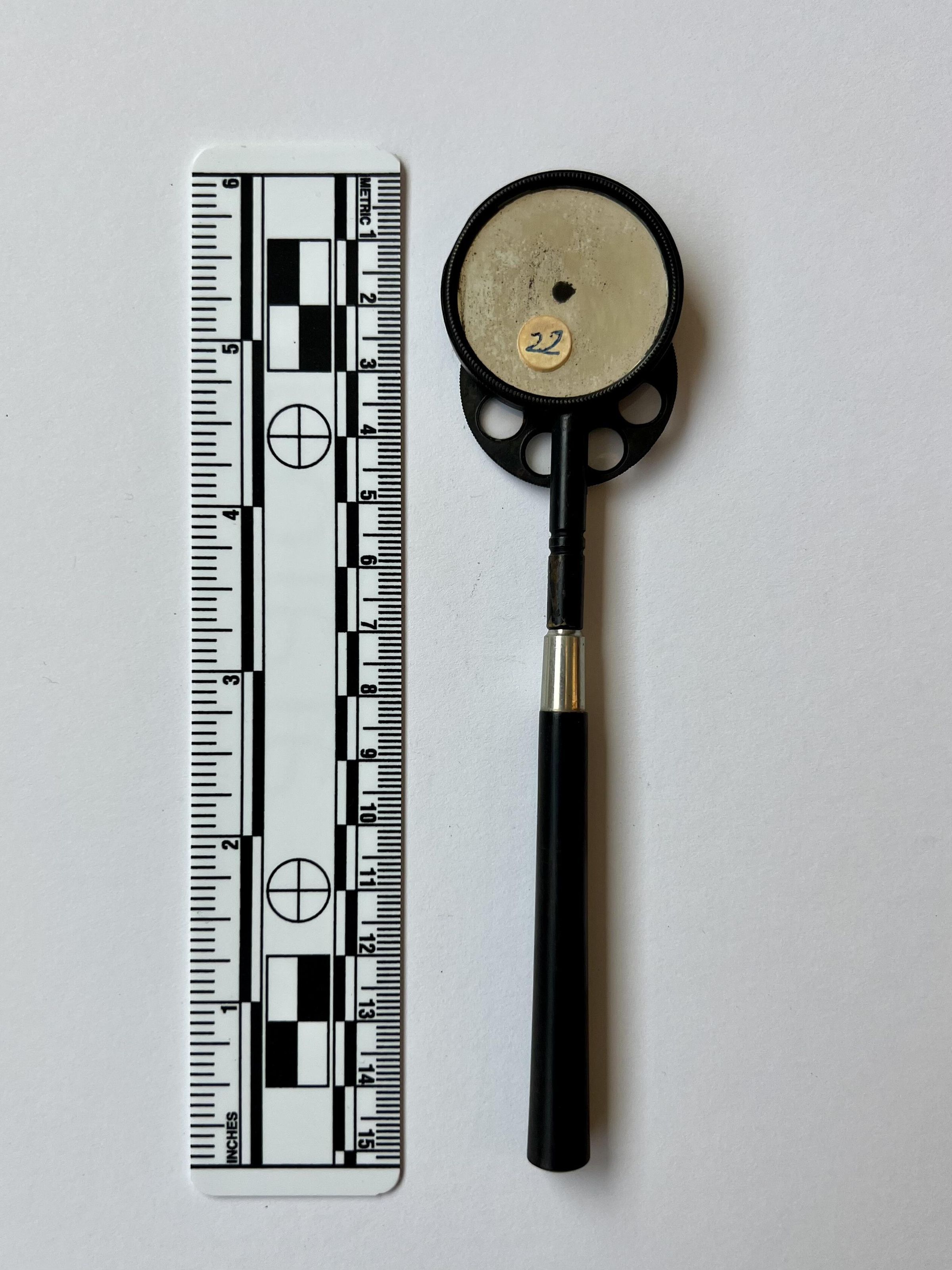 This simple ophthalmoscope was used by students. Although fully trained doctors might have used this ophthalmoscope, they often required additional features.Dimensions