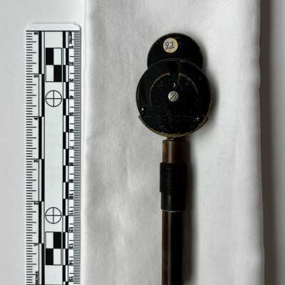 This early DeZeng ophthalmoscope once had a cord handle.Dimensions