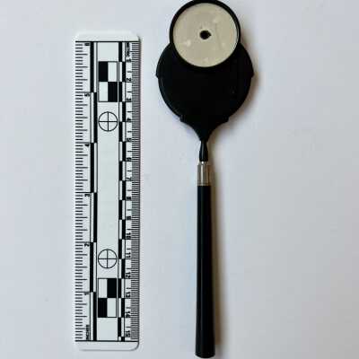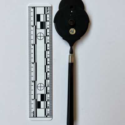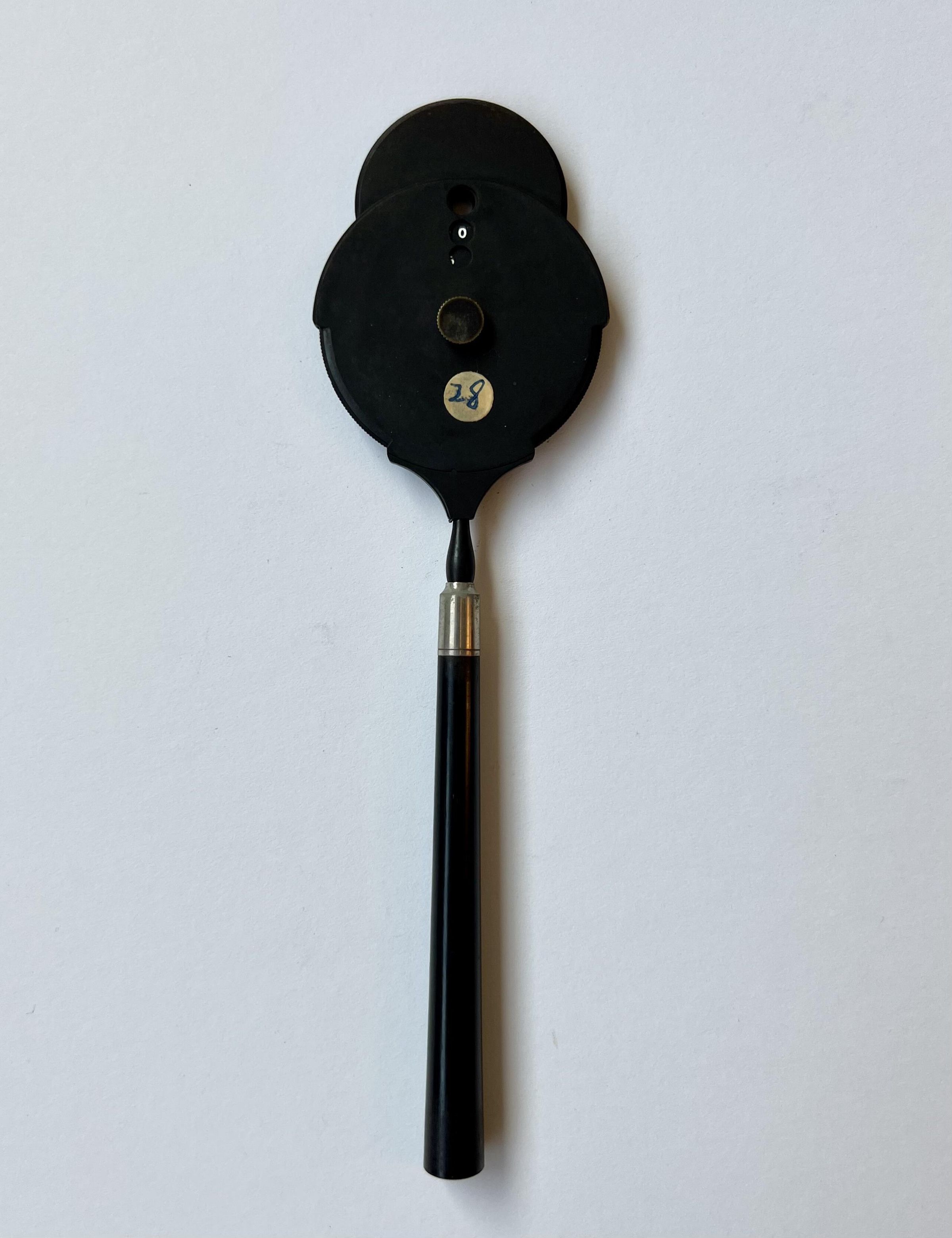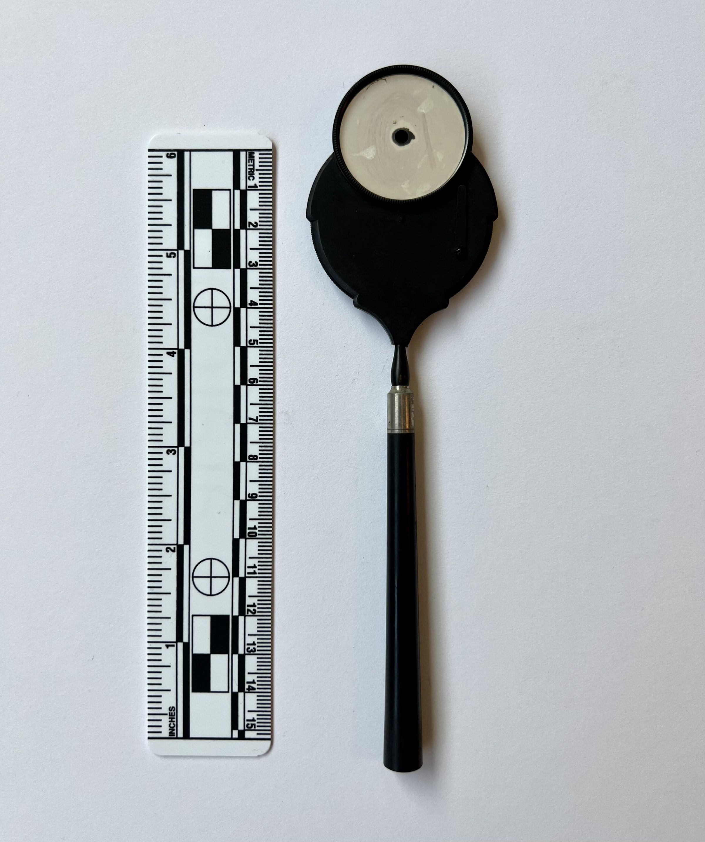 Before Loring invented the tilting mirror in 1877, all mirrors were round, like this example.Dimensions