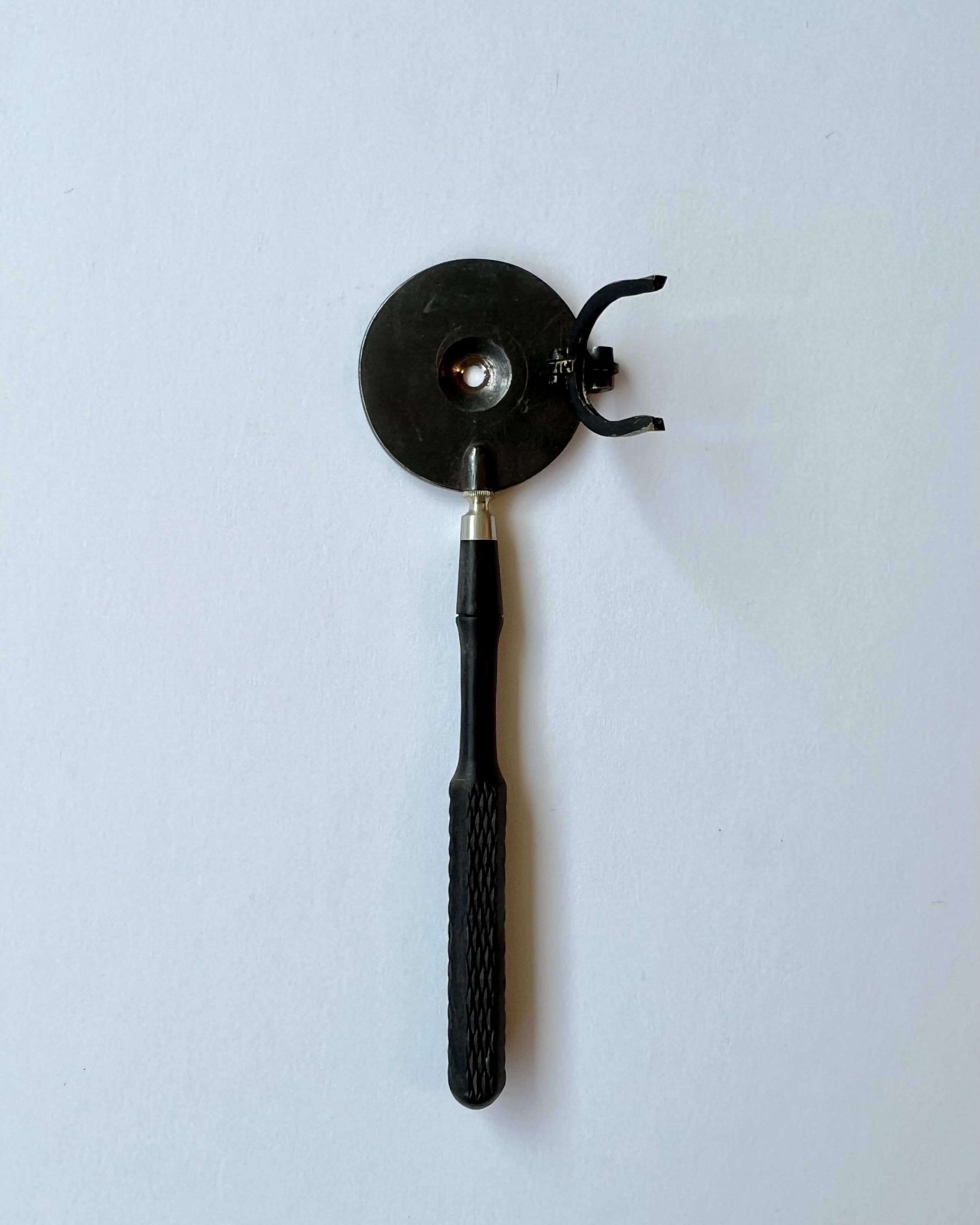 From the 1870s onwards Liebreich ophthalmoscopes were made with glass mirrors, free of coating in the center.Material