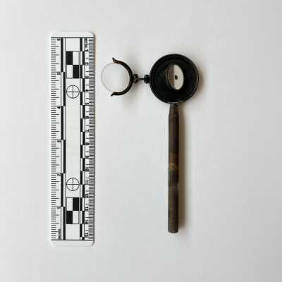 This is an early model of a Hirschberg ophthalmoscope, although the handle is not original.Dimensions
