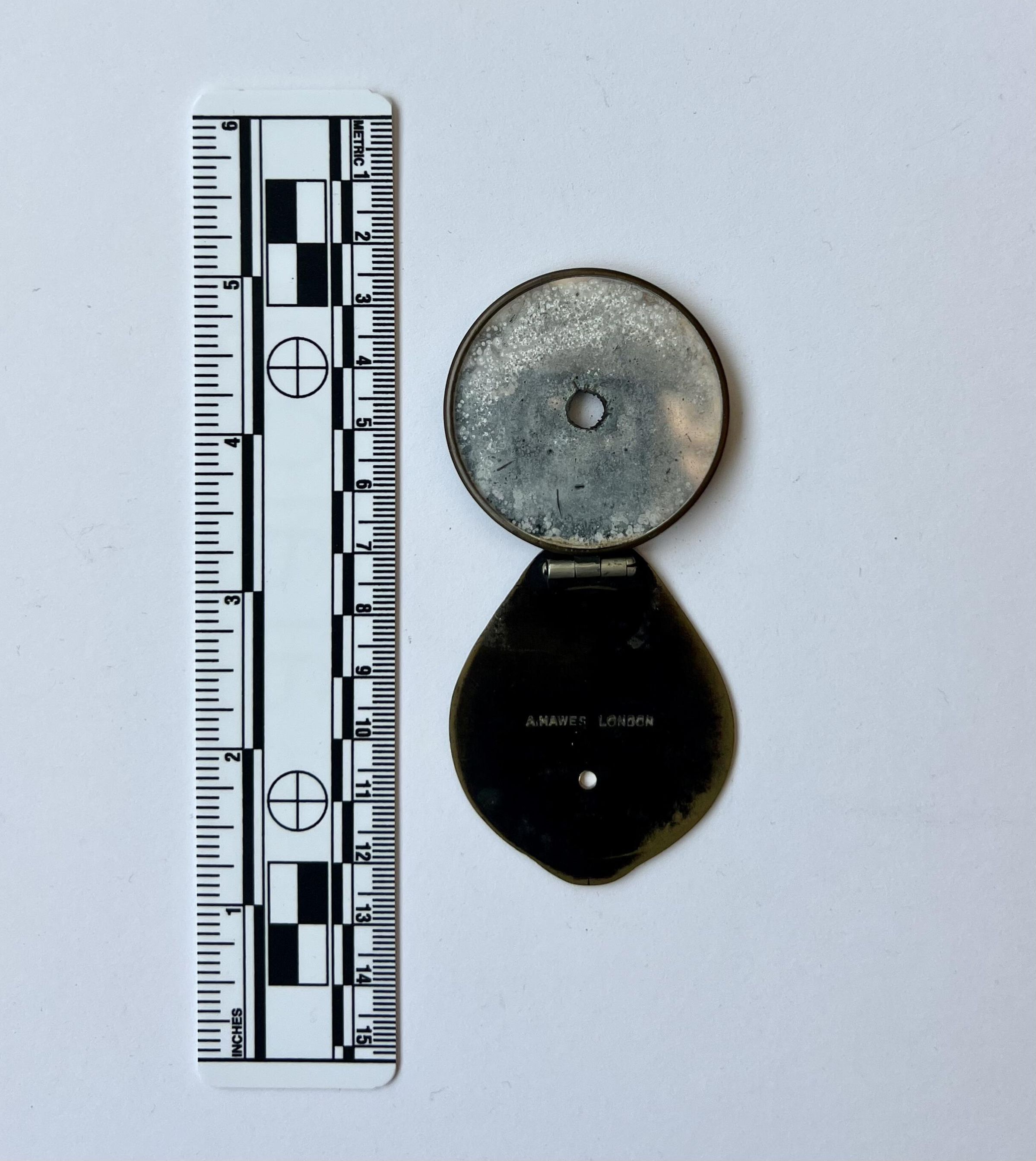 This Folding Retinoscope was used with a convex lens for indirect ophthalmoscopy.