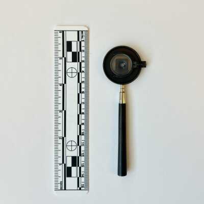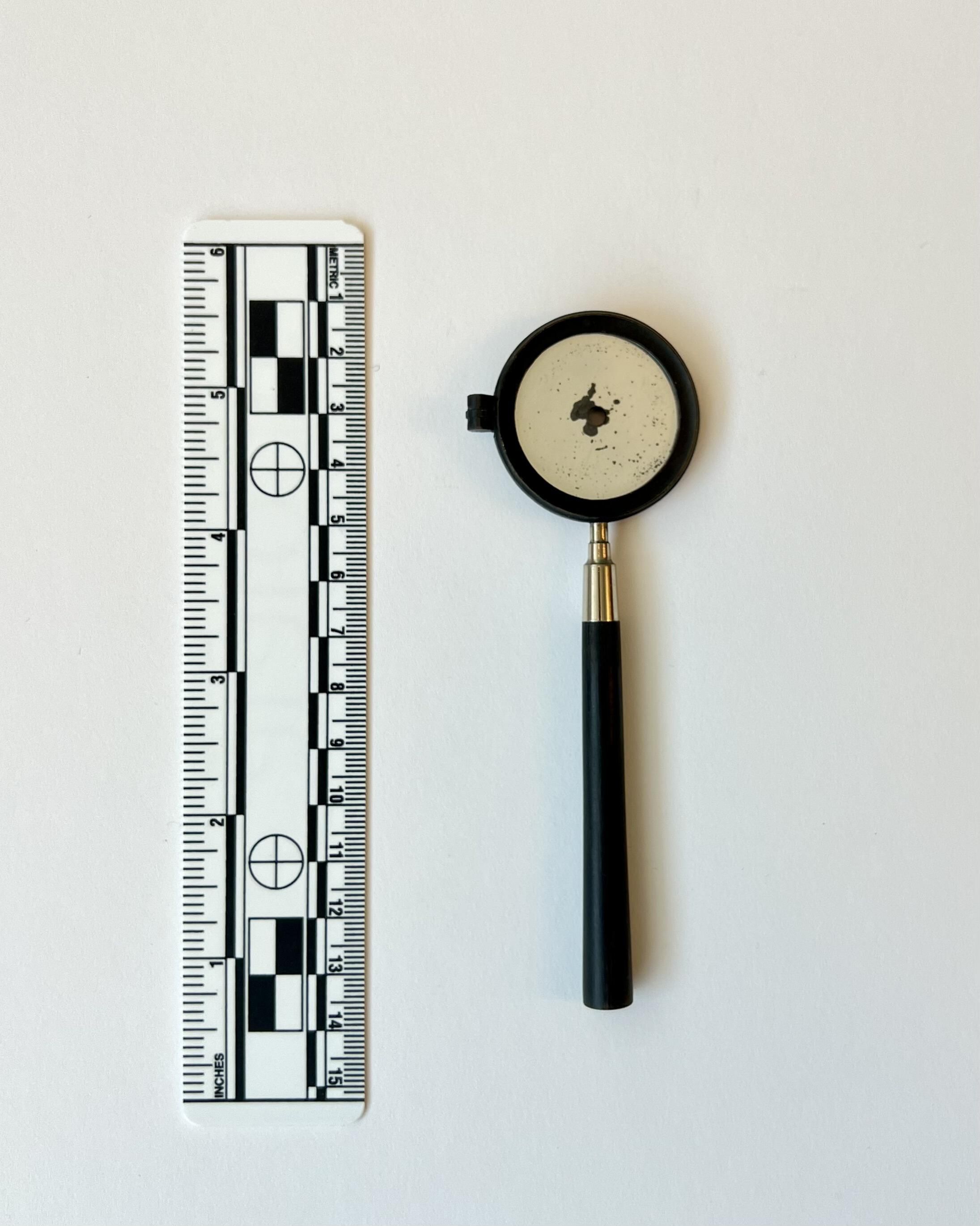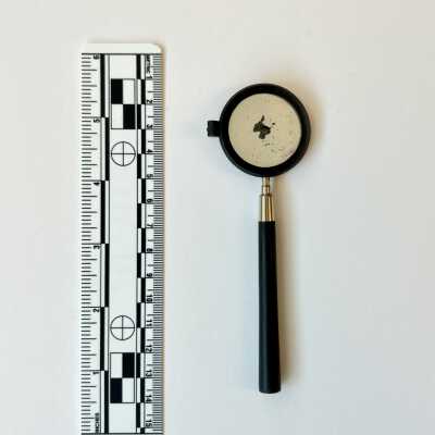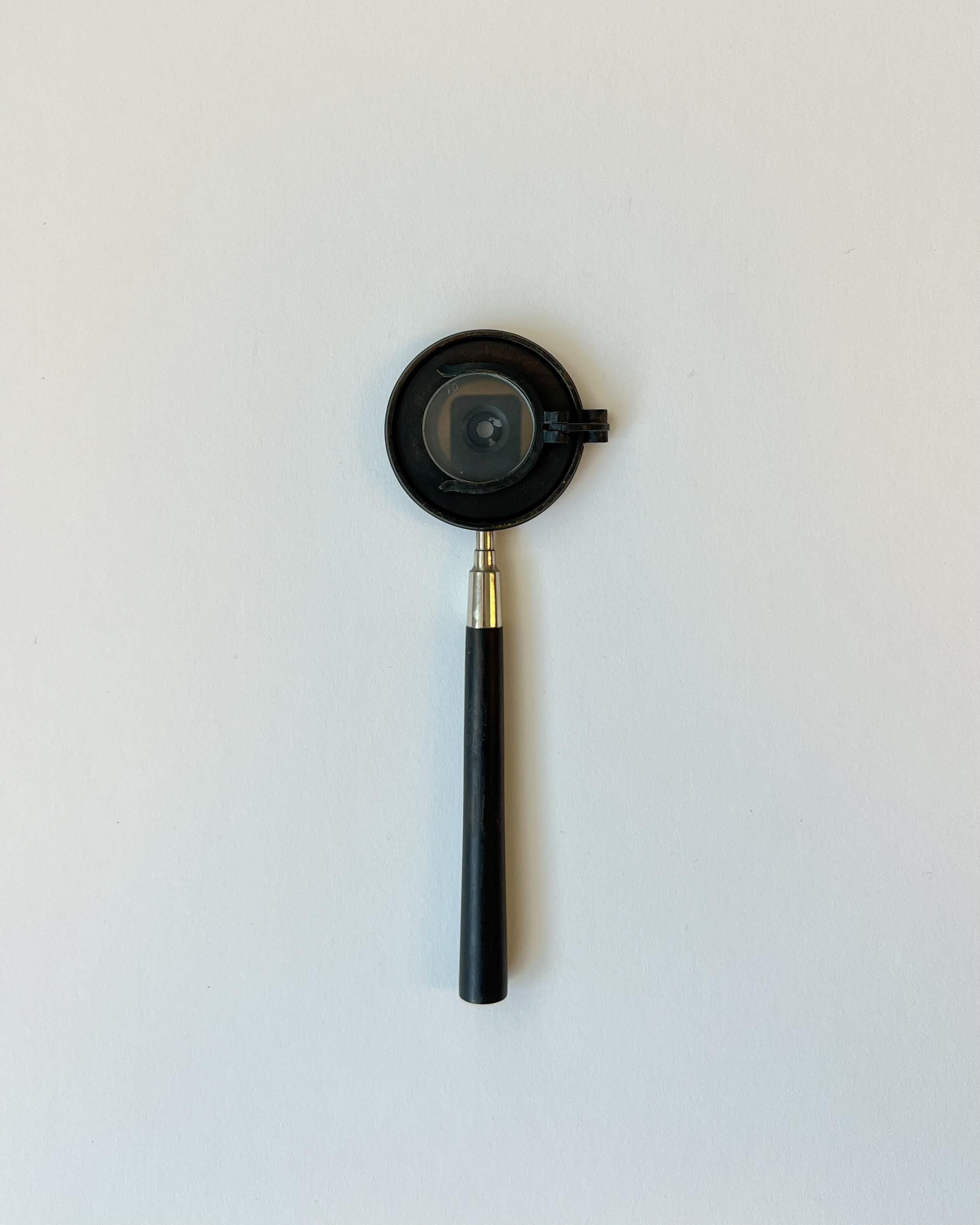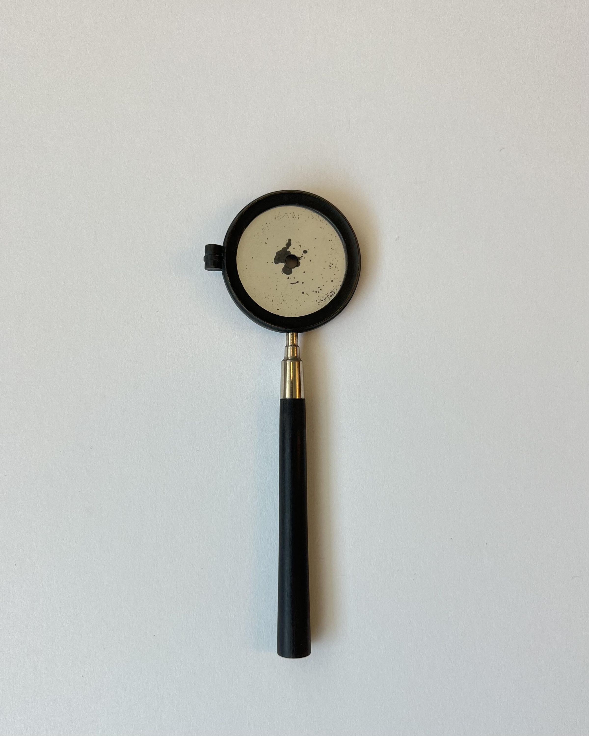This is an early Liebreich Ophthalmoscope, with two large and five small lenses. The small lenses would have been fitted into a clip in front of the sight-hole.Dimensions