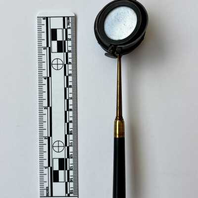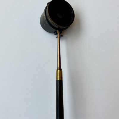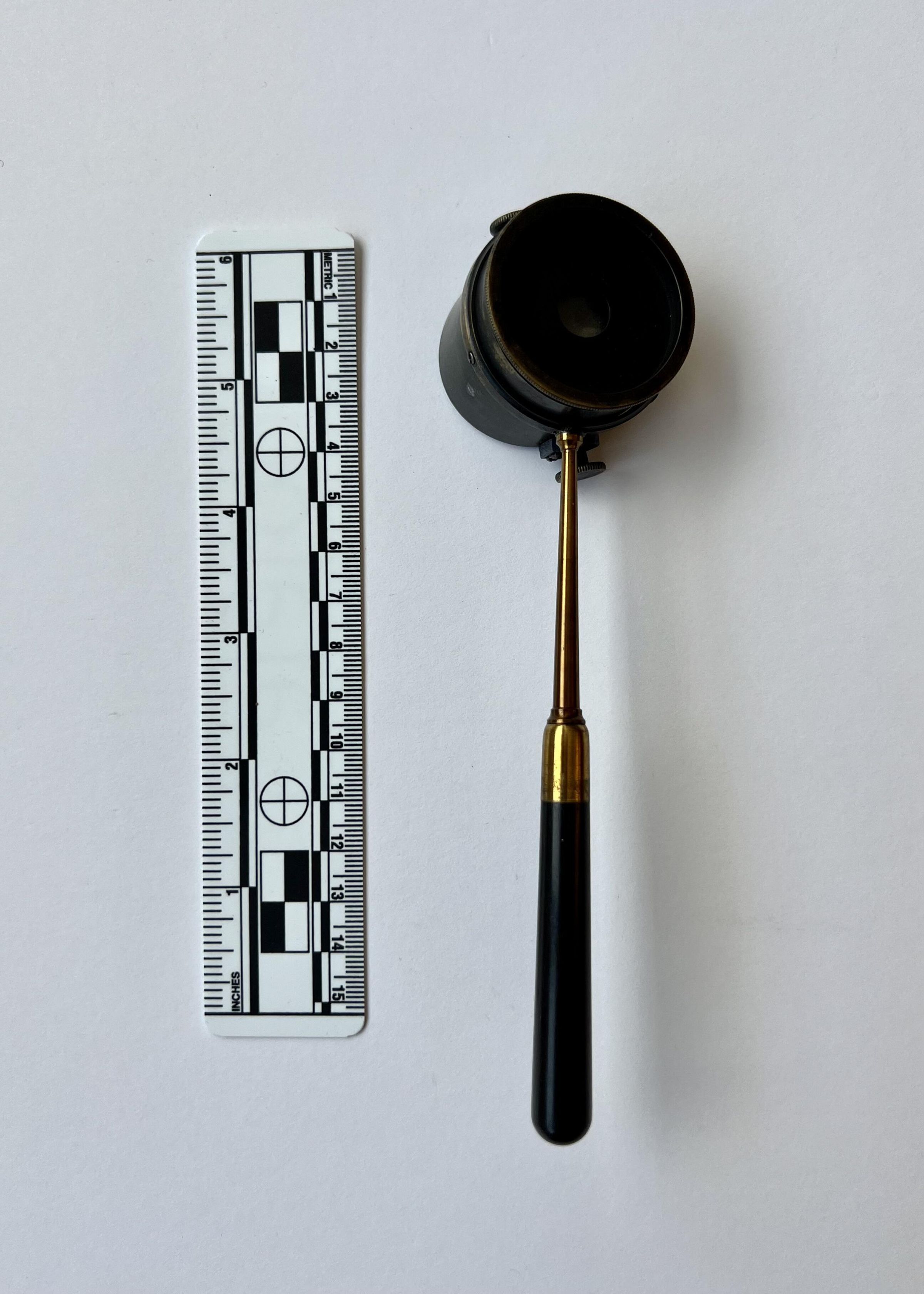 This ophthalmoscope is very similar to Jaeger’s 1854 ophthalmoscope but with one small difference. Mauthner "halved the length of the tube holding the mirrors to 2.6 cm. This allowed the operator’s eye to be closer to the sight hole enabling a wider field of view of the patient’s fundus."