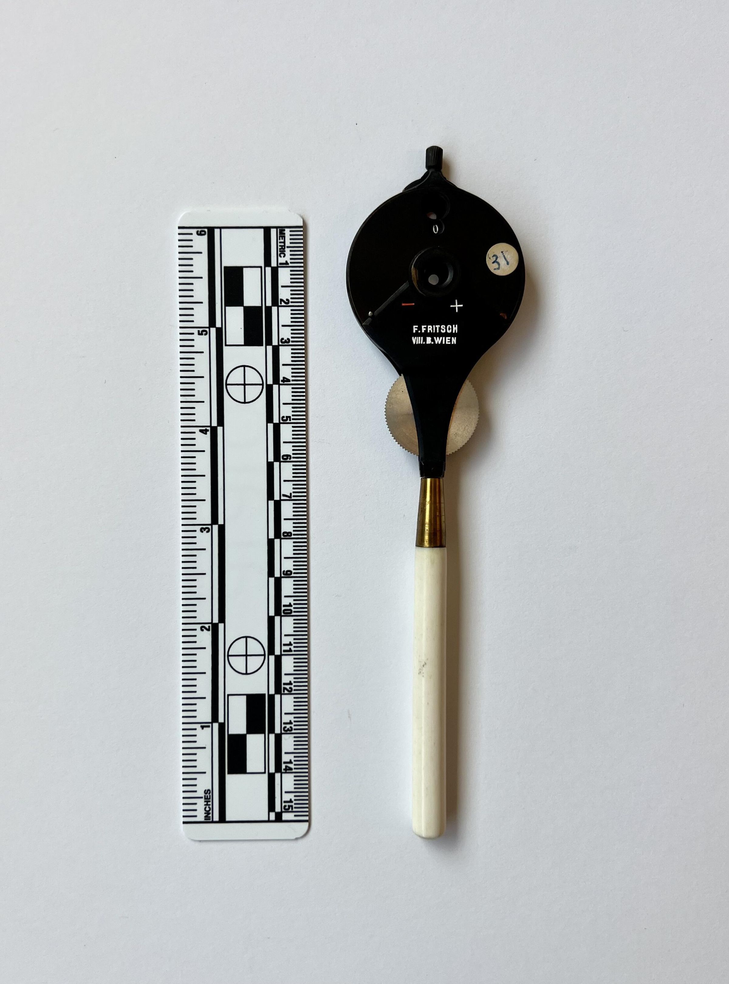 The instrument has two types of mirrors, each with a separate sight-hole. It was made by F. Fritsch in Vienna and was Borthen’s second model.Dimensions