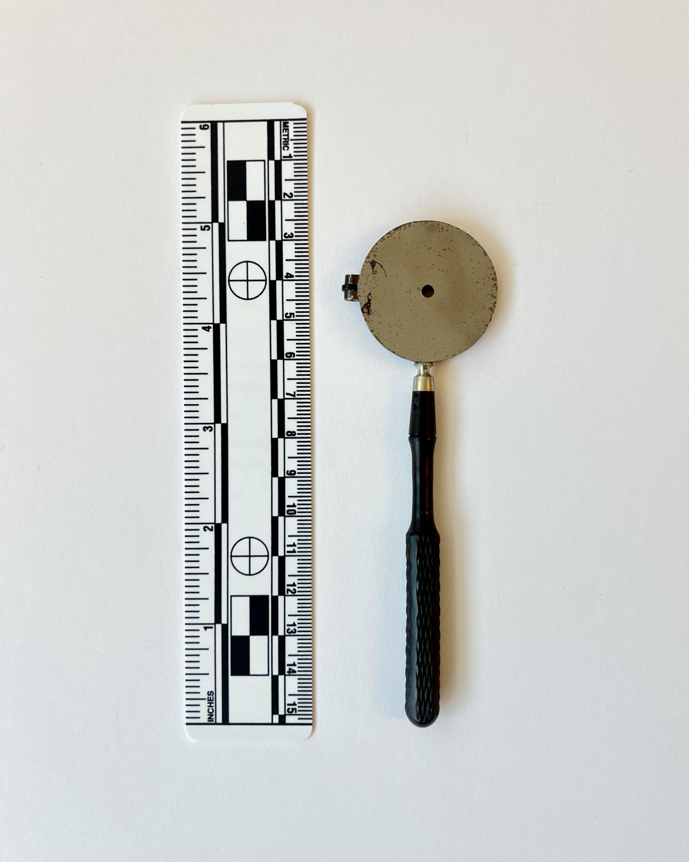 From the 1870s onwards Liebreich ophthalmoscopes were made with glass mirrors, free of coating in the center.Material