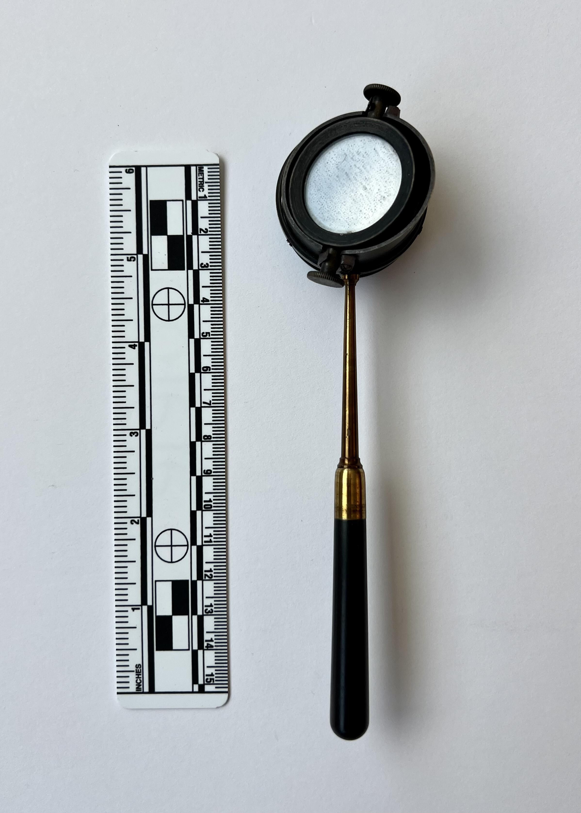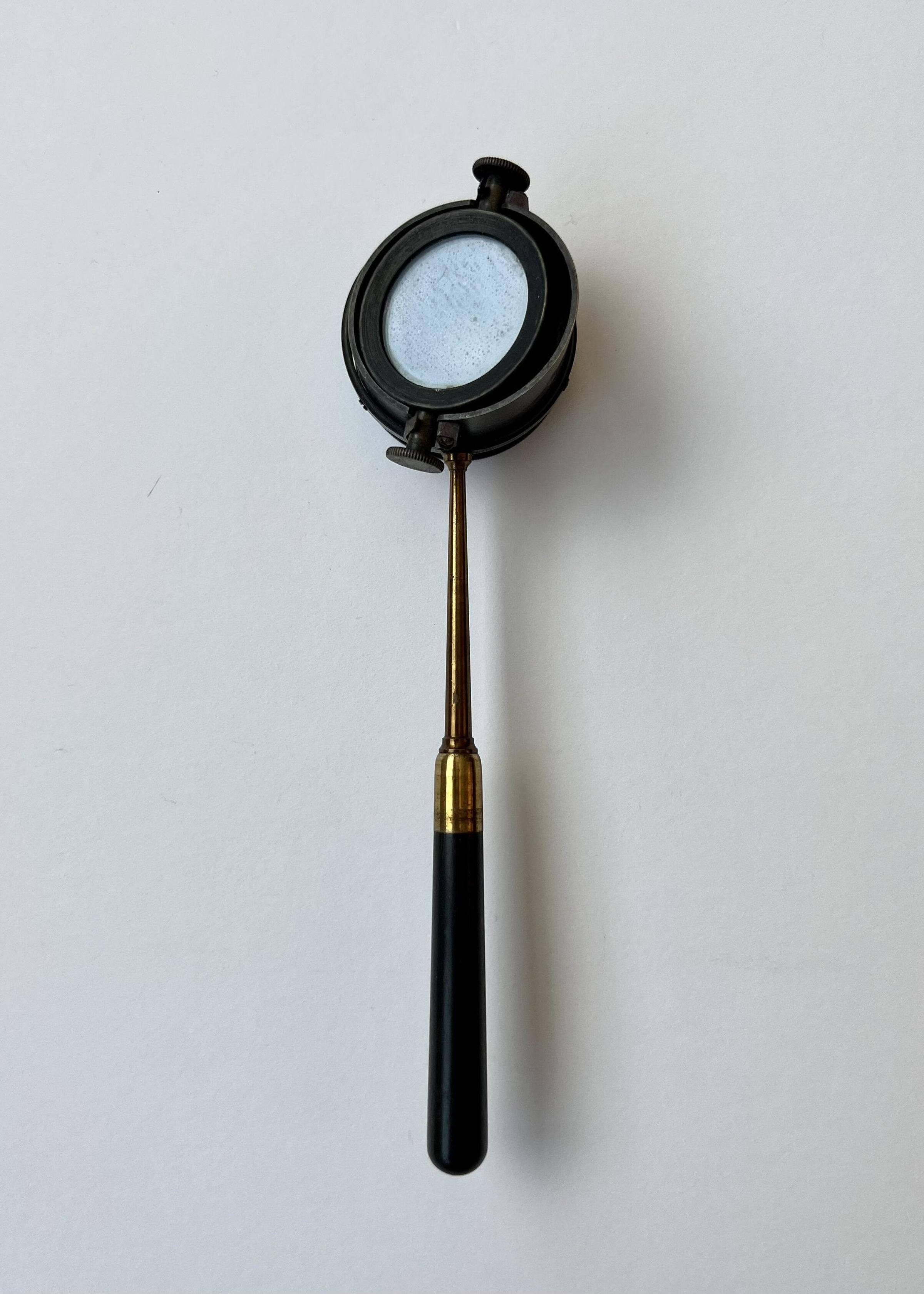 This ophthalmoscope is very similar to Jaeger’s 1854 ophthalmoscope but with one small difference. Mauthner "halved the length of the tube holding the mirrors to 2.6 cm. This allowed the operator’s eye to be closer to the sight hole enabling a wider field of view of the patient’s fundus."