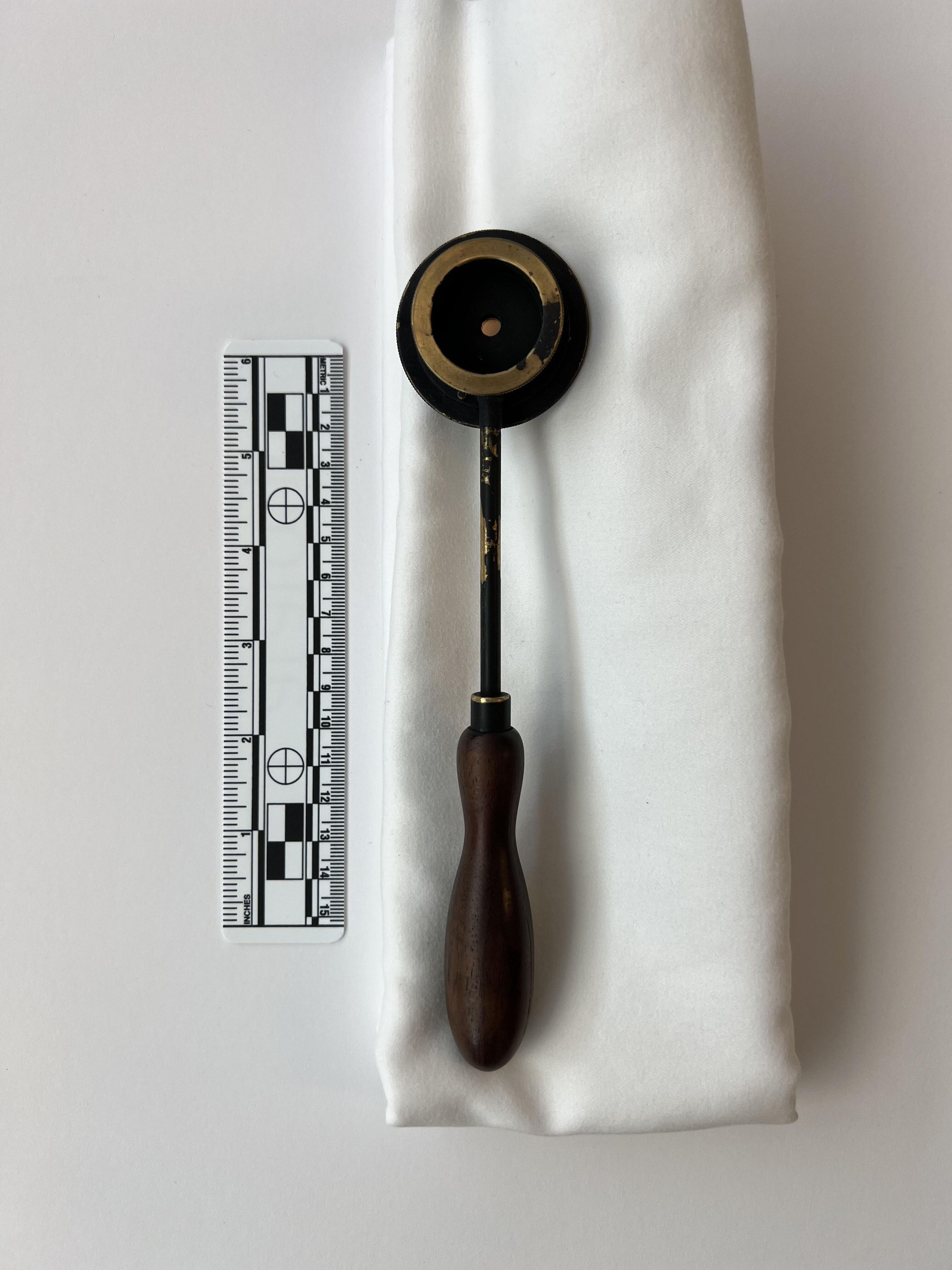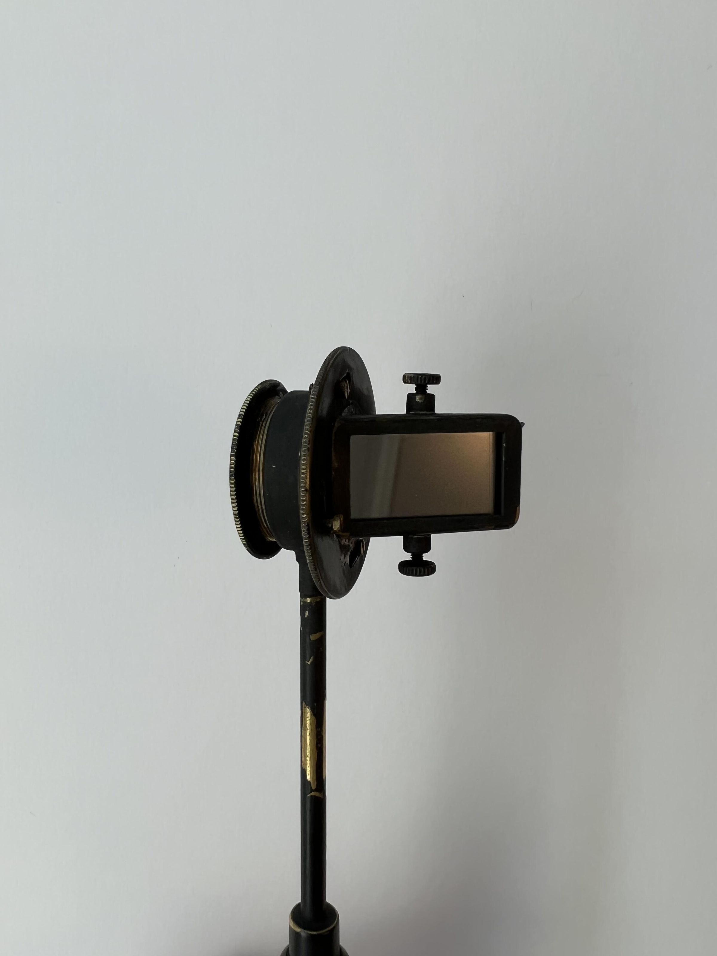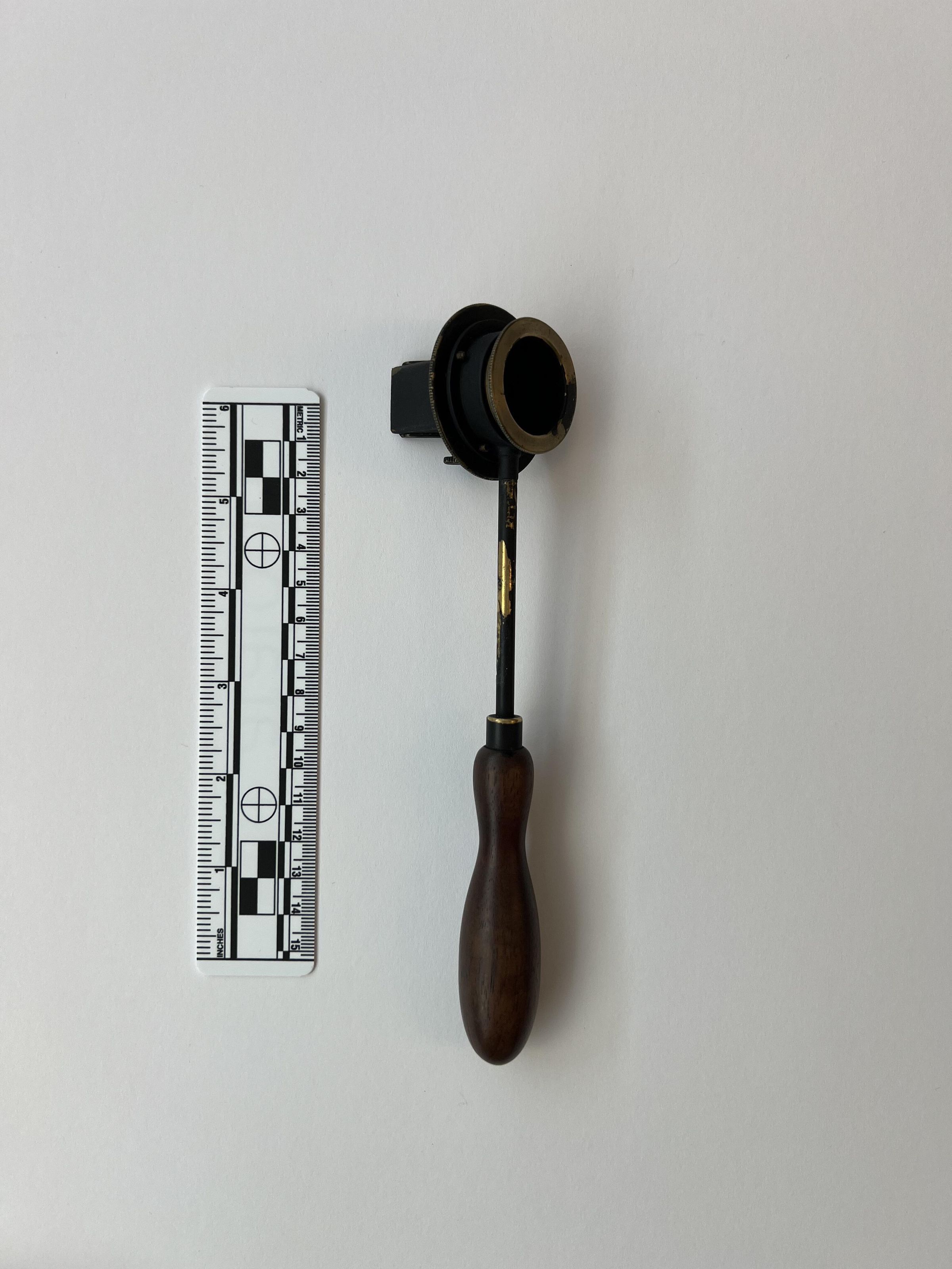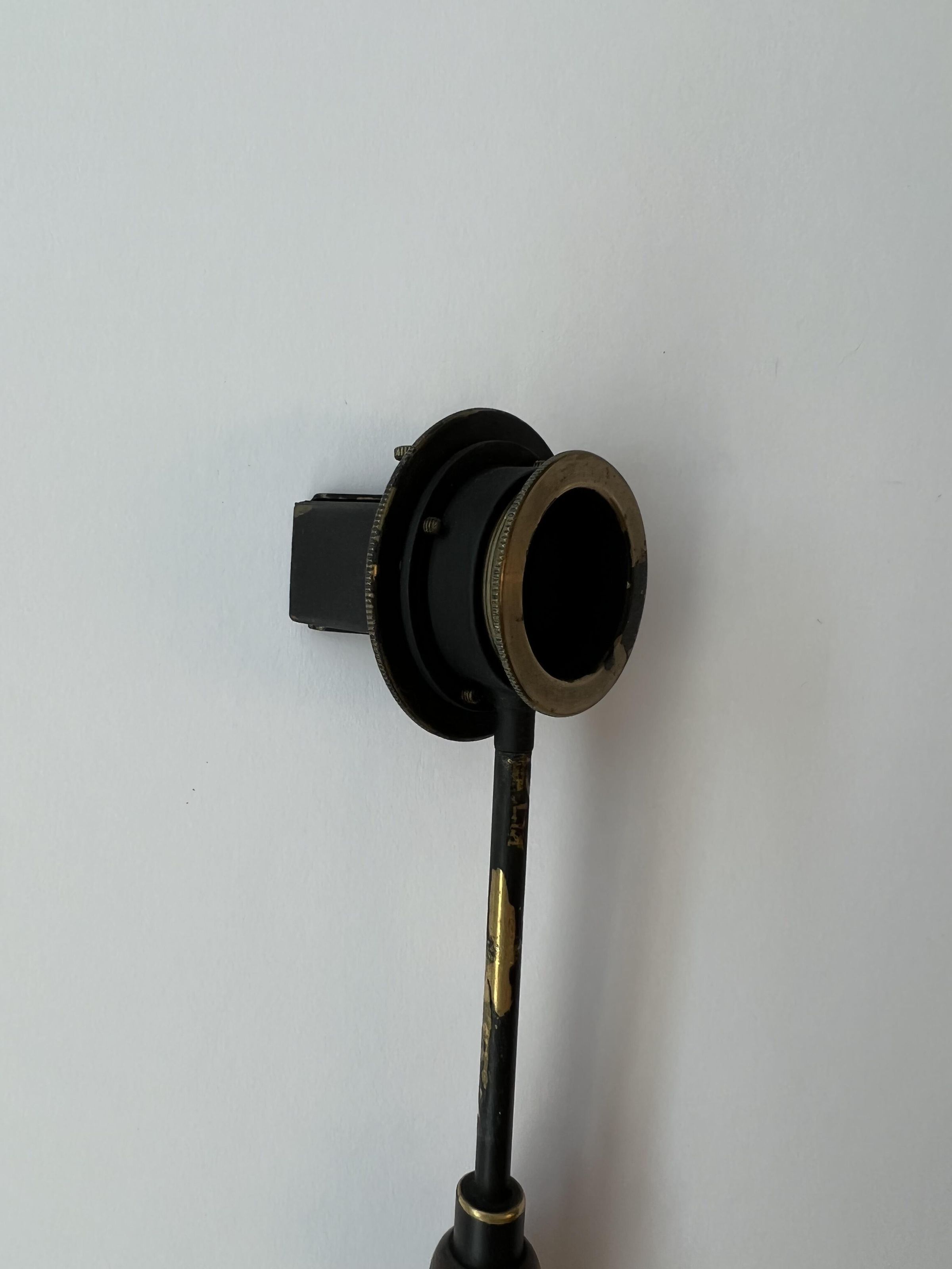 The Helmholtz ophthalmoscope was produced by several manufacturers, and its design evolved over time. This model, with its long thin handle, is from the second phase of the instrument’s production. Of all its variations, there are approximately 100 Helmholtz ophthalmoscopes left.