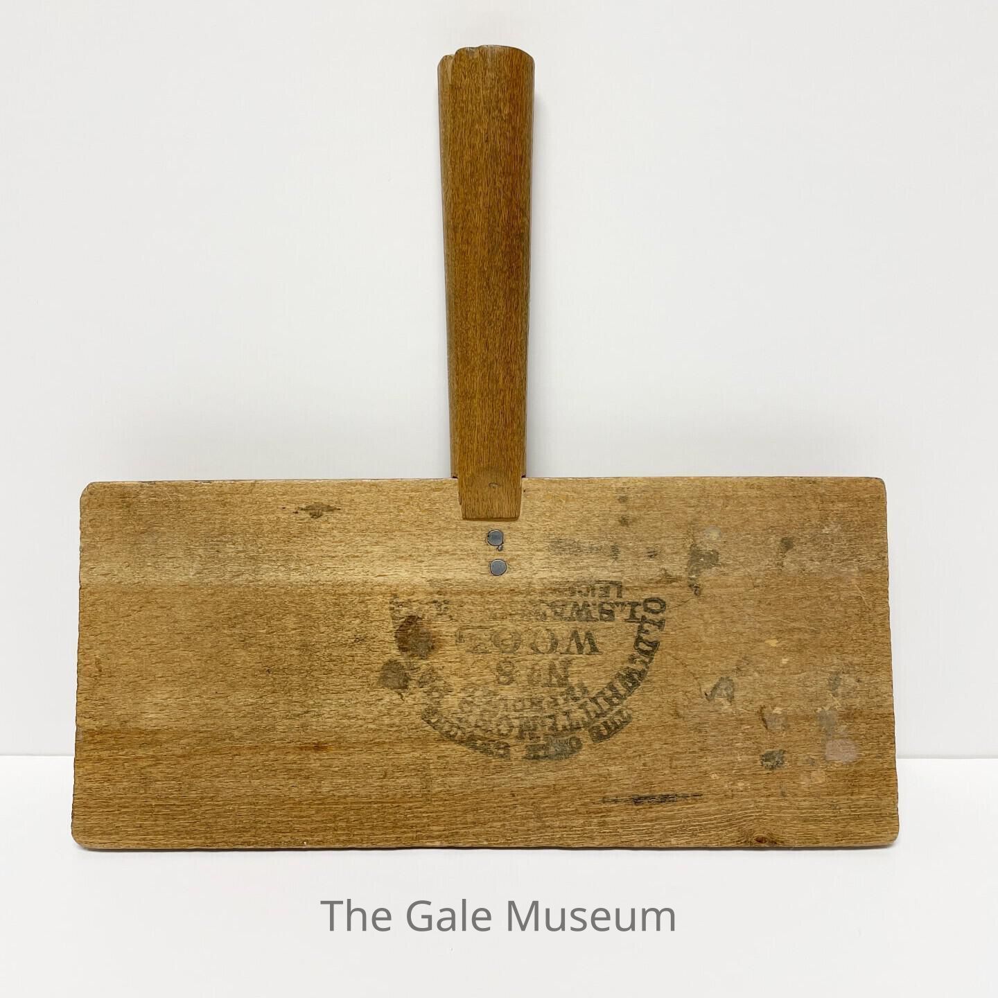 A pair of carding paddles with fading maker's mark.