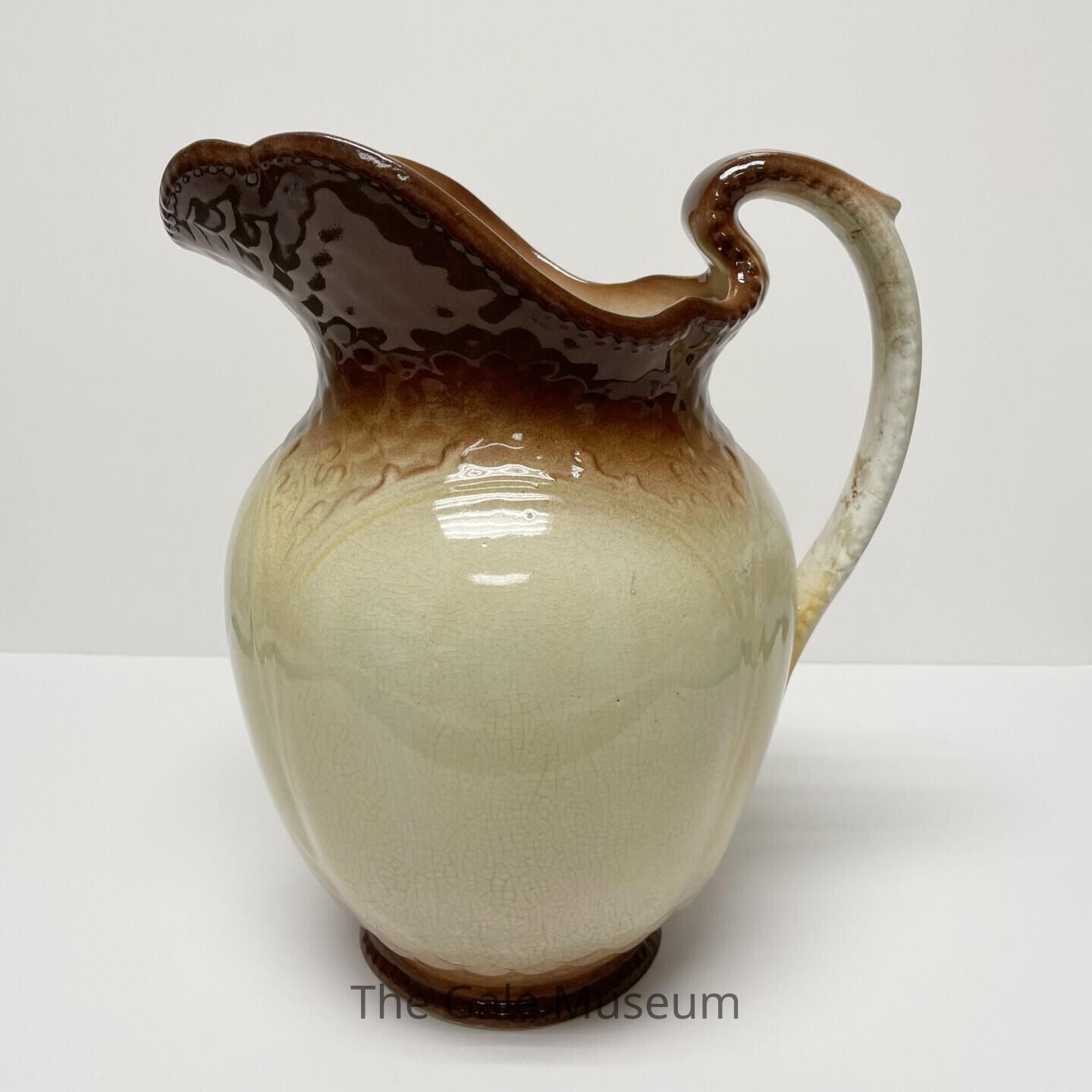 Large ceramic cream and brown wash pitcher, part of washing set. The matching basin has a stamp on the bottom for "T.G. Green & Co. Ltd. Church Gresley, Made in England."Acquisition